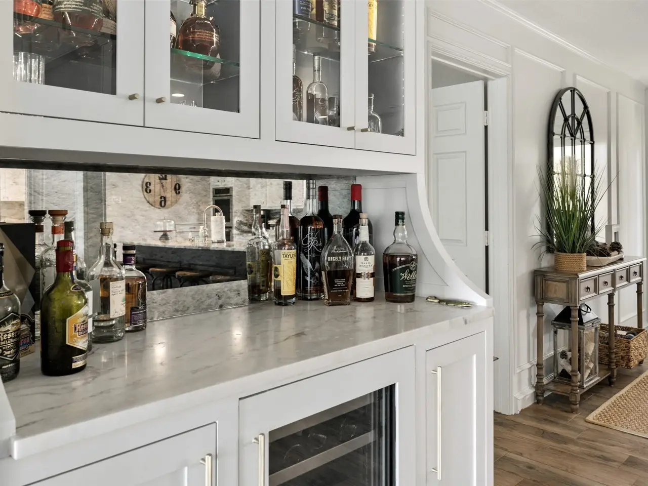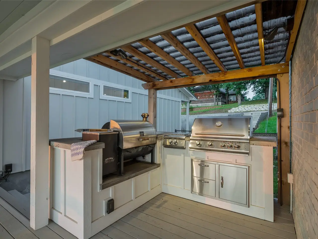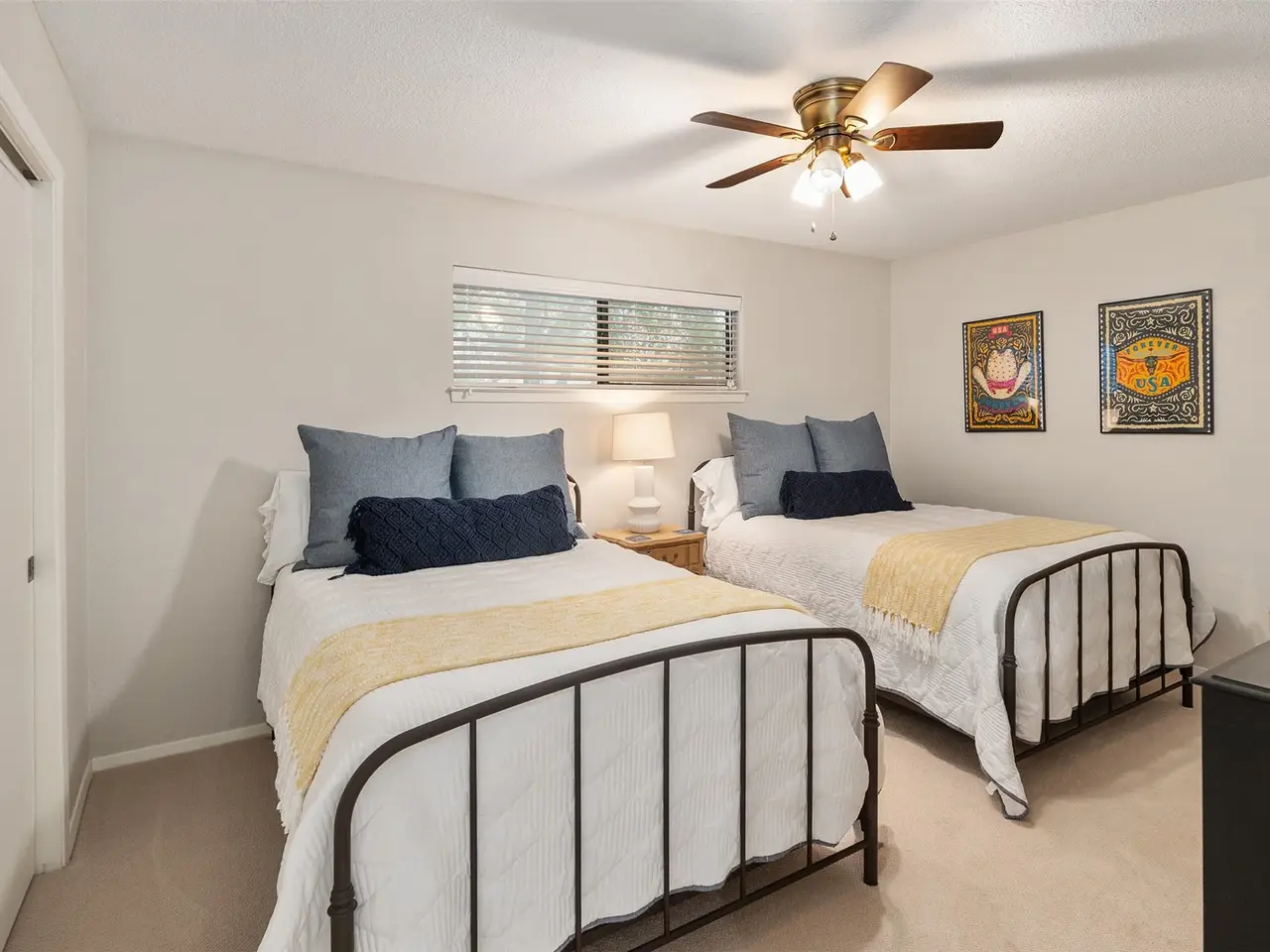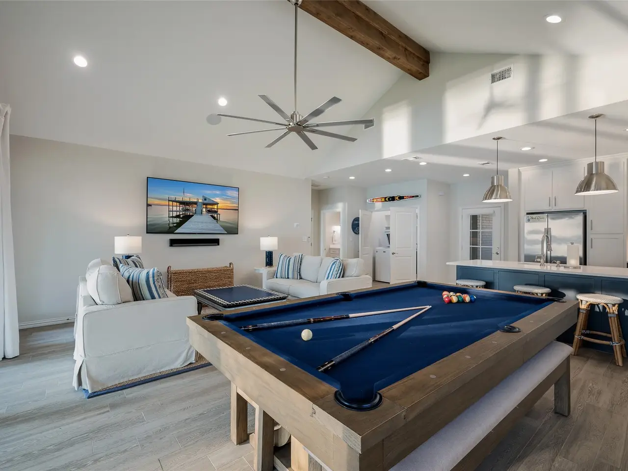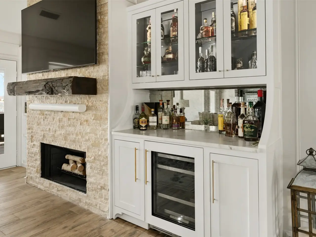 Stunning double lot estate with main home and guest house totaling 3,165 sf on one-half acre with wide open water views and some of the deepest water you'll find on Cedar Creek Lake. This tastefully updated home gives modern, coastal vibes and has room to sleep and entertain a crowd. The main home has 4 bedrooms, 3 and 1 half baths, soaring vaulted ceilings, wood-burning fireplace, built-in bar with wine cooler, a sunroom that can double as a guest bedroom, full utility room, and walls of glass to the lake. The guest house, built in 2019, shares a deck with outdoor kitchen and includes a bunkroom and full bathroom, kitchen, and laundry. The large, updated boathouse has two boat slips - one is equipped with heavy duty, double cable, double motor lift system for your wake boat - double Sea-Doo lift, and plenty of storage for all your water toys. Extras include a touchless boat cover, spider misting system, sprinkler system from lake pump, golf cart garage, under deck storage with work bench and professional landscaping with outdoor lighting, and a beautiful firepit area at the water's edge to enjoy amazing sunsets.