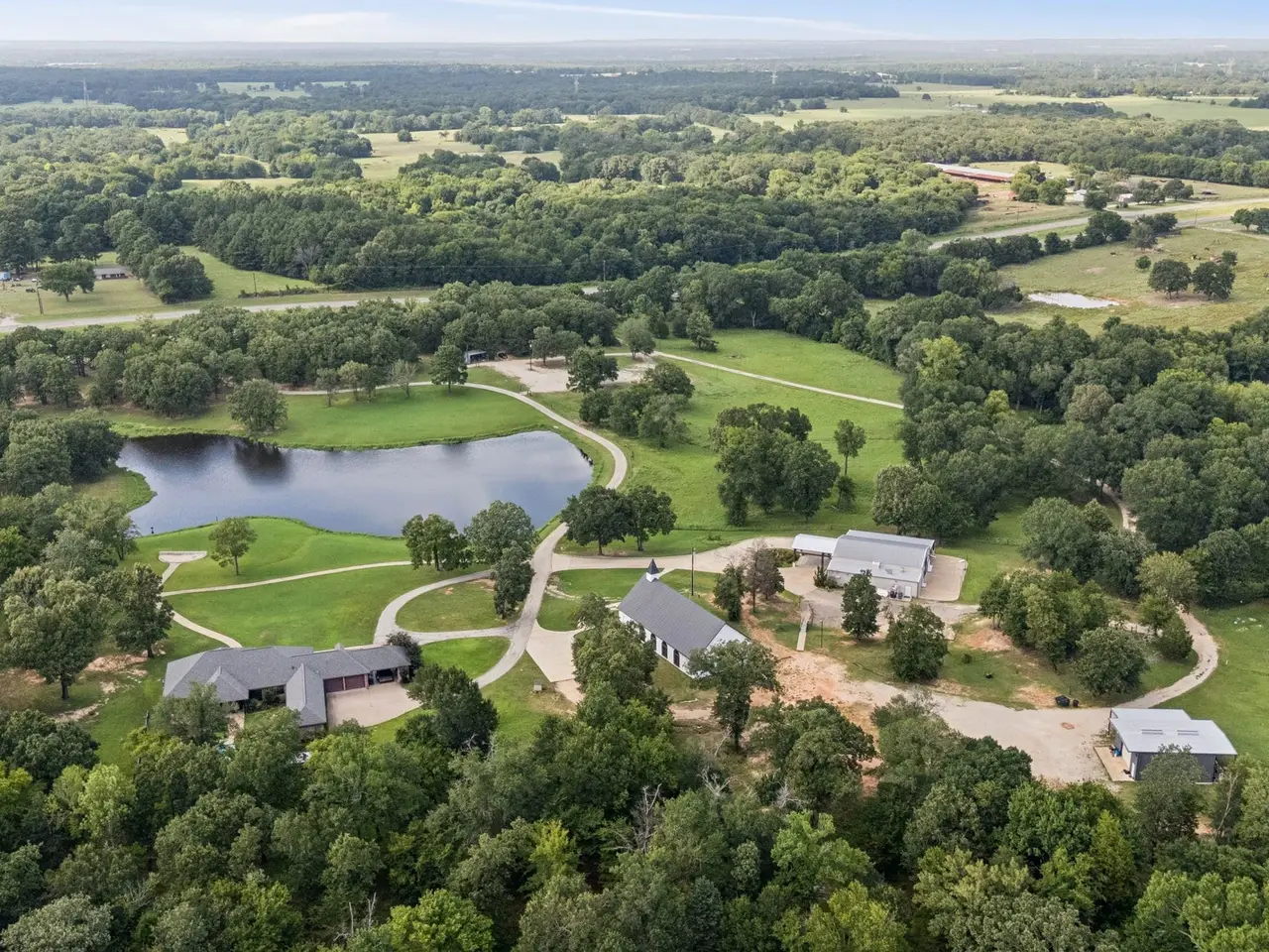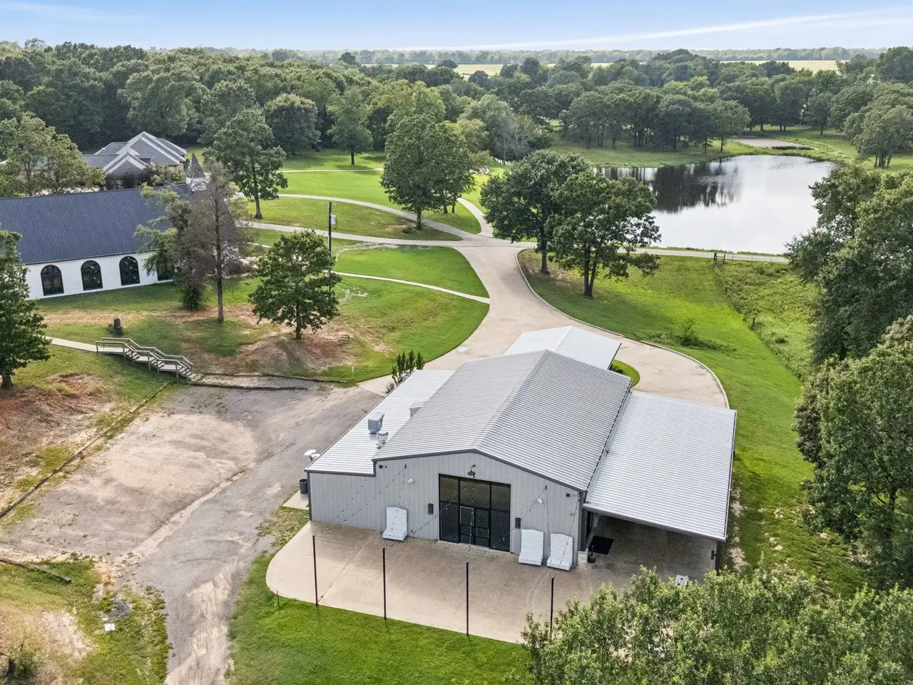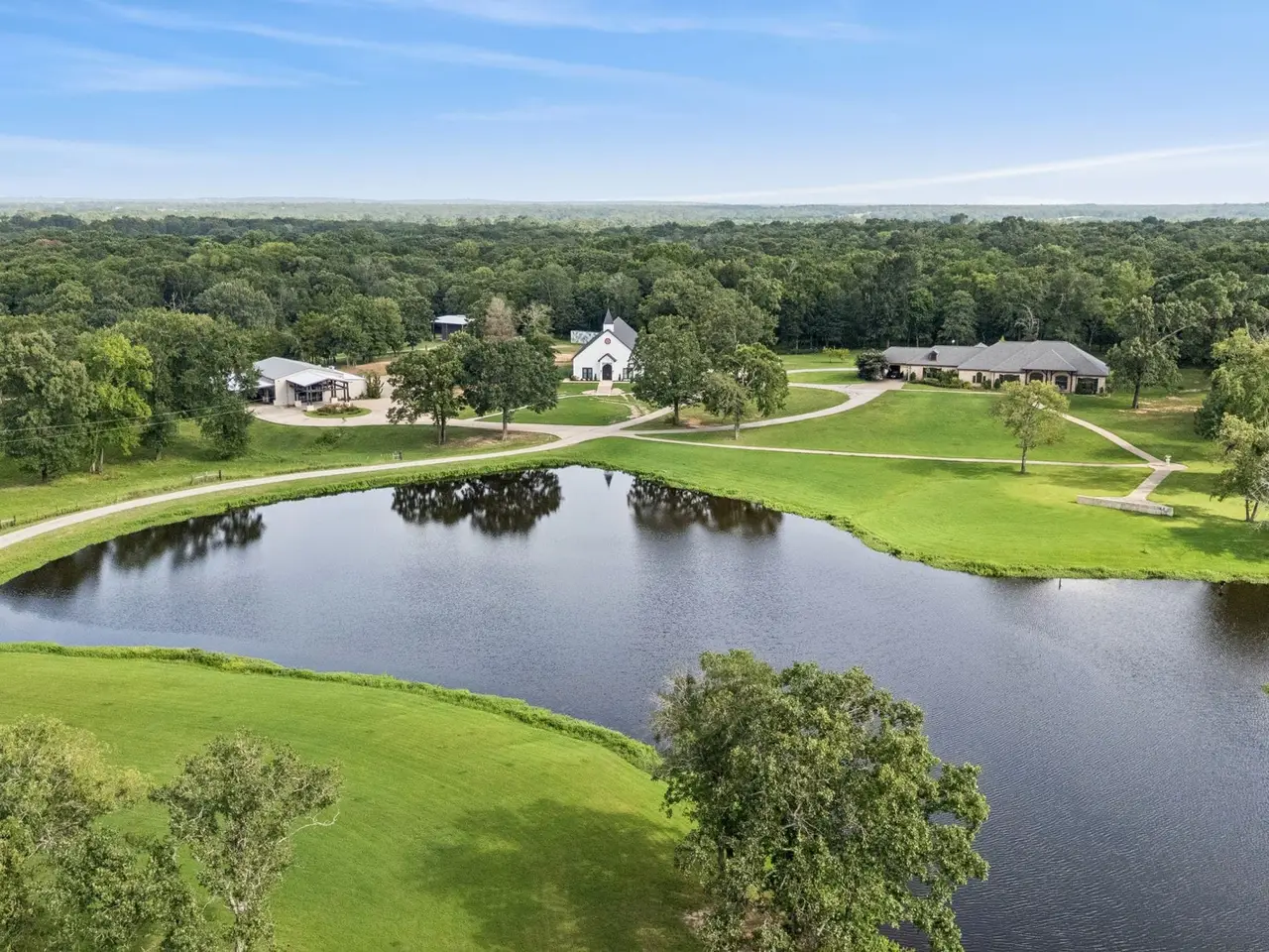 Profitable East Texas Estate Near Cedar Creek Lake This 39+ acre property in Malakoff, Texas, is located minutes from Cedar Creek Lake. The estate includes multiple residences suitable for extended families, private retreats, or multi-generational living arrangements. The land features open fields and wooded areas, suitable for outdoor recreation, gardening, or enjoying the natural environment with a scenic 2-acre pond perfect for fishing or observing wildlife. The main residence measures 3,524 square feet and includes 3 bedrooms, 3.5 baths, a private guest suite, formal dining room, office space, and a swimming pool with sun terrace for relaxing or entertaining. There are two additional buildings on the property. Once of approximately 3,284 square feet with a grand main room with vinyl wood laminate flooring and a cathedral design ceiling with LED lighting. The building includes a partitioned kitchen, two restrooms and a mechanical room. Two sets of sliding doors lead to an outdoor covered area measuring approximately 1,456 square feet. At the back of the building is an open concrete area measuring approximately 1,967 square feet. The main room has a projector and screen. Speakers are installed inside the main room and outside in the covered entertainment area. The third largest building measures approximately 3,220 square feet. It has a main room with arched windows, canned lighting, chandeliers, and a polished concrete floor. There are two rooms that could serve as potential bedrooms, each with a restroom. There is also a powder room located in the vestibule. This building is currently used as a sanctuary. Additionally, there are two agricultural shop measuring 1080 square feet and a barn of 476 square feet. This property offers adequate space for developing a private family estate or multiple residences for country living. It is currently used as a profitable wedding and events venue. Please contact the listing agents for further information.