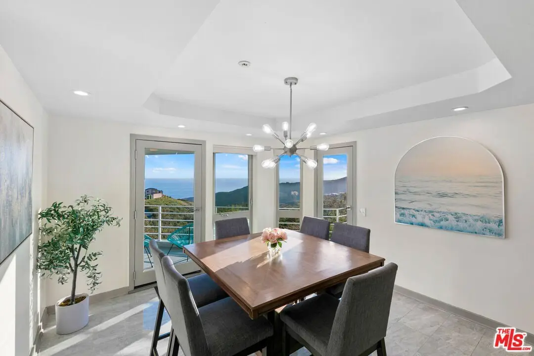 Welcome to Falcon Blade, a stunning architectural masterpiece which boasts breathtaking ocean views from nearly every room and features soaring ceilings that create an open and airy atmosphere. The floor-to-ceiling windows capture panoramic vistas of both the ocean and mountains, while multiple balconies and patios provide ideal spots to unwind and appreciate the surrounding natural beauty. Perfectly suited as a family residence or an income-generating property, this home includes several bedrooms, expansive living areas, and plenty of gathering spaces, all tucked away in a peaceful and private setting. The elegant great room serves as a focal point for entertaining, featuring lofty ceilings, a large dining area, and a cozy fireplace. The stylish kitchen is both practical and exquisite, equipped with a 36" Haier range and a spacious breakfast nook that can comfortably accommodate eight. Outdoor enthusiasts will enjoy the easy access to hiking trails, with Deer Creek, Leo Carillo, and County Line beaches just minutes away. Whether you're entertaining friends or enjoying quiet family moments, this home perfectly blends luxury, comfort, and the beauty of nature in a community coveted by celebrities.
