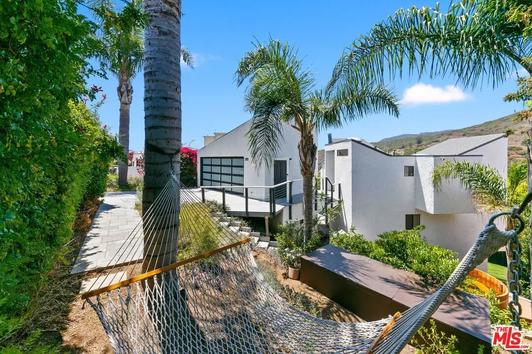 Incredible private Malibu retreat nestled in the hills of El Nido, just minutes from the beach.. This stylish home blends modern architecture with warmth and natural light. Vaulted ceilings, exposed beams, and expansive windows frame breathtaking ocean and mountain views. The open living area flows effortlessly from the cozy fireplace to a sunlit patio, perfect for lounging and entertaining. The chef's kitchen features new appliances, a center island and skylights that bring the outdoors in. The serene primary suite offers dual closets and a beautifully renovated en-suite bath. Two additional bedrooms provide flexibility for guests, a home office, or a nursery. A separate bonus room makes the perfect private office or creative space, and a detached studio serves as a perfect guest suite. Outside, enjoy peaceful garden spaces, a hammock strung between palms, and a private spa with hillside views. Located just minutes to Malibu's best beaches, hiking and dining. Offered for purchase or lease.