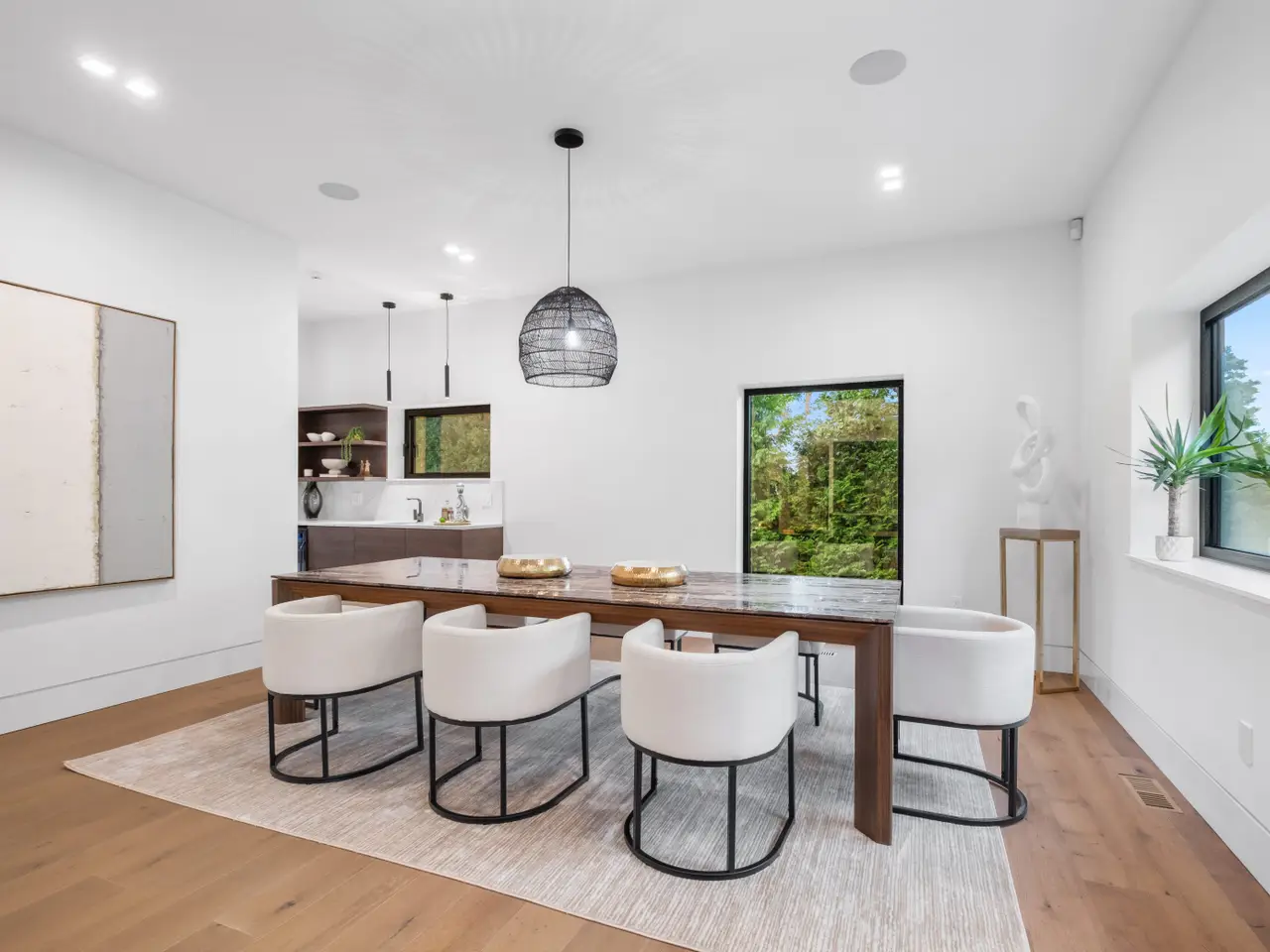 This is a new 2023 architectural beauty and one of the most extraordinary contemporary homes in the prestigious Orienta Point coastal community. This spectacular modernist retreat offers peace and privacy on a gated 0.7-acre oasis, just steps from the waterfront and Harbor Island Park, beach clubs, and only minutes to Village shops, restaurants, and Metro-North to NYC. Inside is pure elegance and simplicity with natural stone and wood accents with honey-hued floors, crisp clean lines, sky-high ceilings, and dramatic walls of glass that celebrate nature at every turn. Every space is breathtaking from the two-story entry foyer, the sleek gallery-like living room and the custom-designed kitchen with a 19 foot waterfall island and top-tier appliances including an Italian Bertazzoni cooktop. From here, this great room extends into seamless indoor-outdoor living, opening to a fabulous deck, level backyard and an outdoor kitchen with a Medallion grill set beneath a pergola. This home offers everything you could desire; three fireplaces, a chic dining room, wet-bar, stylish powder room, large walk-in coat closet, striking family room with soaring ceiling and endless light. Theres an outfitted mudroom with access to the three car garage and side door, an oversized pantry and three serene bedrooms, all with ensuite baths. Upstairs, a wonderful central lounge room opens to a glorious sun terrace, plus two ensuite bedrooms, a large laundry, a seventh bedroom or flexible office and a full hall bath. The primary is simply exquisite with a wall of glass sliders to a private balcony, a sitting room, a luxurious ensuite, and a boutique walk-in closet for two. The lower level is an additional 1300 square feet of bonus space that offers incredible versatility with access to the private backyard and outdoor kitchen with glass sliders to the rear. Unmatched!