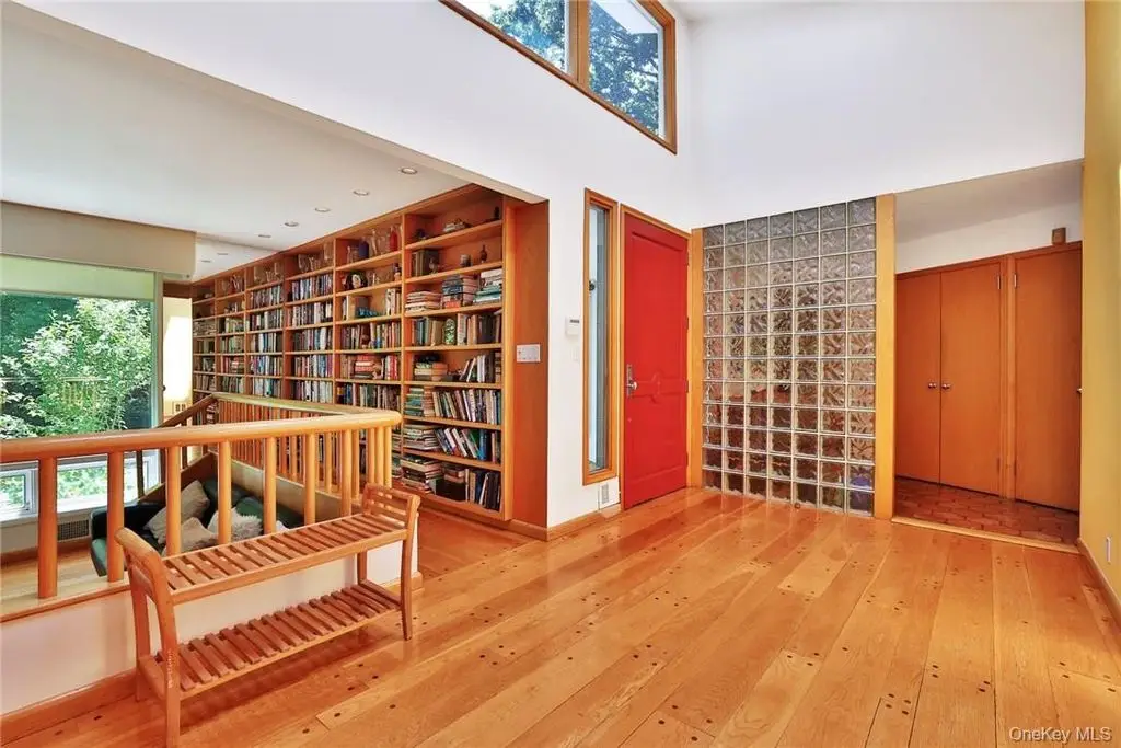 Discover the perfect blend of modern elegance and serene seclusion in this stunning contemporary ranch-style home. Nestled on 3.6 private acres, this architectural gem offers a peaceful retreat surrounded by nature. Oversized windows flood the interior with an abundance of natural light, highlighting the seamless indoor-outdoor flow. Every detail of this home has been thoughtfully designed to provide both comfort and sophistication. Whether you're entertaining or unwinding, this property promises an unparalleled lifestyle of privacy and tranquility. Step into the sunken living room, a captivating space anchored by a dramatic floor-to-ceiling stone fireplace, setting the stage for cozy gatherings and tranquil moments. The family room, complete with a library, offers a perfect retreat for literary enthusiasts. For more formal affairs, the dining room provides an elegant backdrop for entertaining guests, and the eat-in kitchen with gleaming granite countertops and stainless steel appliances. Venture to the game room, a recreational haven overlooking a sprawling two-tier deck that affords breathtaking views of your private pond, ideal for al fresco dining and relaxation. The primary bedroom offers a serene escape, featuring an en suite bathroom for your comfort and convenience. Additionally, there is a private home office, perfect for work or creative pursuits. Lower level offers a bonus room with a full bathroom, a luxurious sauna, and ample space to unwind or host guests. This multi-purpose space is further enhanced by an adjoining laundry room, utilities, and a fully equipped gym, allowing for an active and indulgent lifestyle under one roof. Not only is this property a peaceful haven, but it also offers a practical advantage. Located just a 30-minute commute from the bustling heart of New York City, this residence provides an exceptional blend of tranquility and urban accessibility. Moreover, the land abuts the sprawling 700-acre Saxon Woods Park, inviting you to explore and enjoy the beauty of the outdoors right at your doorstep. A rare opportunity to own a truly unique gem!