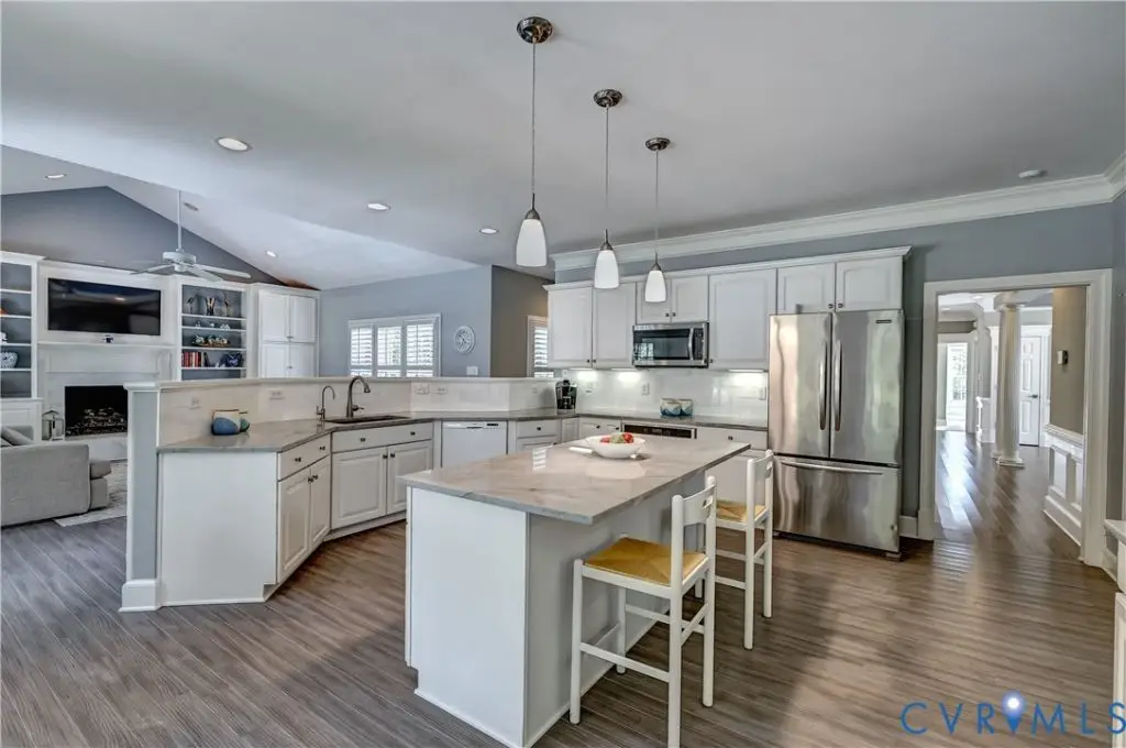 Nestled on a beautifully landscaped 2 acres in the heart of Manakin Sabot this elegant Cape Cod features 3 finished levels with multiple flex, family, office and recreation spaces throughout. As you enter the home the dining room features beautiful molding, wainscoting & column features with 9 ft ceilings and Canadian maple hardwood floors thru out. A chef's kitchen featuring quartzite countertops, induction cooktop, double ovens, premium refrigerator, reverse osmosis water filtration system, and sunny breakfast nook flow seamlessly into the vaulted-ceiling living room - featuring marble-hearth FP, custom built-in's and side deck access adding to the indoor/outdoor living space. The 1st floor primary suite w/ spa-like bath offers convenience & luxury, w/ adjacent designer closet/dressing room further showcasing the high-end design throughout. Upstairs, an enormous rec/game/fitness/flex space, w/ full bath and cozy window seat. The spacious-sun-filled office/studio w/ private stairway access from attached garage, offers endless possibilities & flexibility. The expansive basement features a cinema-style home theater with high-end AV system, Lutron lighting and an optional blackout curtain that separates an additional living area with wood-burning fireplace and access to the screened patio-perfect for seamless indoor/outdoor living. Two bright bedrooms with pocket-door closets share a Jack-and-Jill bath, while multiple utility, work, and storage areas provide exceptional flexibility. Outdoors, rolling topography and manicured grounds create a picturesque setting, best enjoyed from the stamped-concrete front porch with swing, the side porch, or the screened patio.'This home features High Seer Trane Heat pumps, Heat Pump Hot Water Heater, 14 KW Kohler Generator, whole house surge protection and much more.Blending timeless style with modern convenience, this energy-efficient home offers privacy, comfort, and exceptionally ample flex spaces suited for every occasion and possibility. Extremely convenient location.