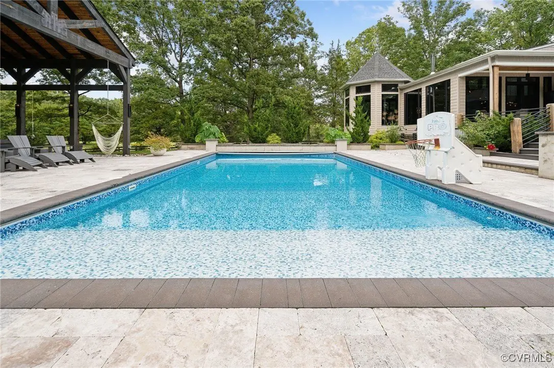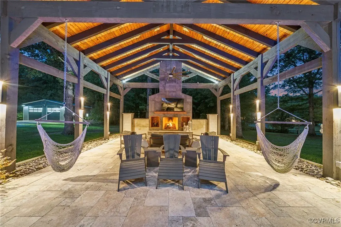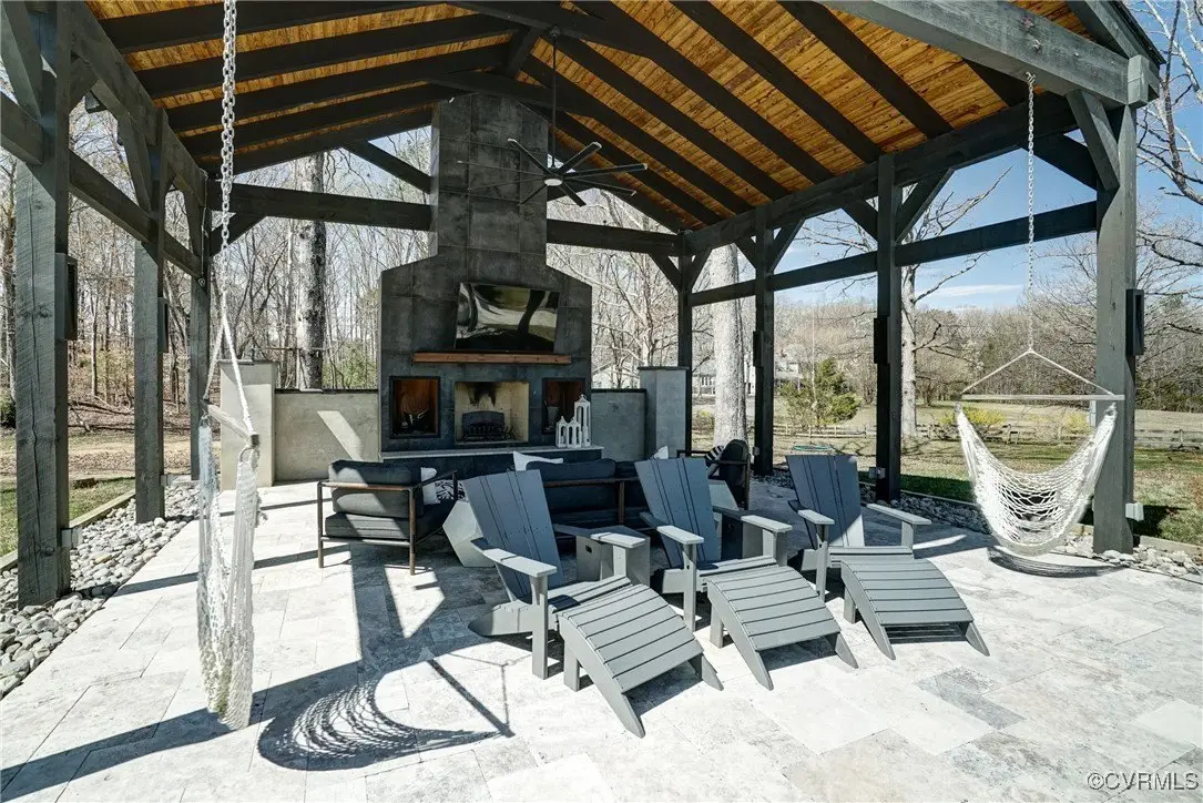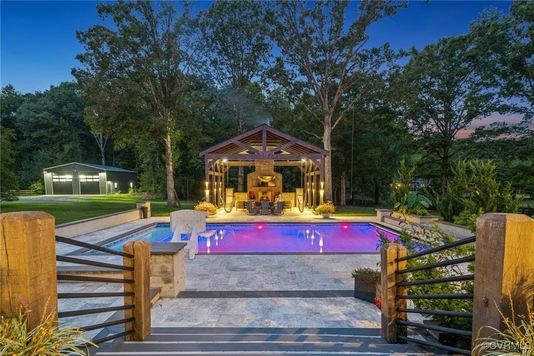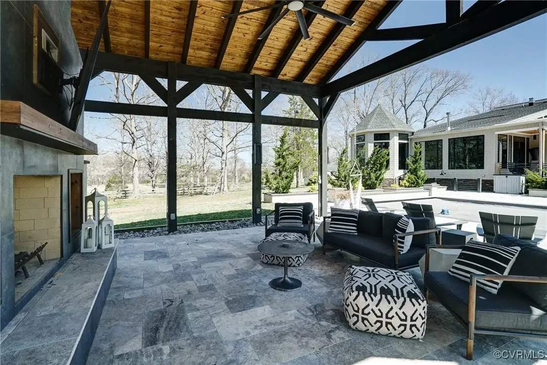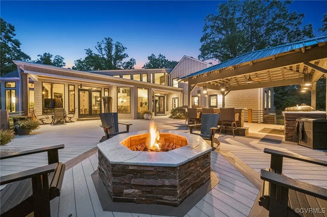 Entertainer's dream home has been extensively renovated with high end design and decorator finishes for your immediate enjoyment. The addition includes a 20 ft vaulted family room, custom kitchen and morning room for casual dining and features a floor to ceiling gas fireplace feature wall, random width reclaimed oak flooring, Umanoff lighting and walls of Pella windows and doors that flood the interiors with natural light and offer fantastic views of the nearly 5-acre site. The kitchen has a Wolf gas rangetop with griddle and grill, a steam convection oven, a convection wall oven, countertop steamer, Advantium oven, Sub-Zero refrigerator freezer and wine refrigerator. Custom cabinetry, quartzite countertops and and reclaimed wood on the island. The formal dining room has wonderful ambience from the fireplace shared with the family room. A private study with custom cabinetry and living room create additional private and quiet rooms for work and study. First floor primary suite has a huge walk-in closet and a gorgeous renovated bathroom with heated floors, steam sauna shower with dual heads and a rainwater head and dual granite vanities. A fully finished walk-out basement features a large entertainment room with gas fireplace, a walnut floating bar that seats 6, wall cabinet with copper sinks and a 2,500 bottle wine cellar. Upstairs is a second primary bedroom suite with walk-in closet and two bedrooms with a Jack and Jill bath, a home theatre with HD projector and 10 ft screen, an exercise room with a rubber floor and third floor bonus room. The outdoor living areas are fabulous with a covered kitchen and grill area, composite decking, a pool pavilion with fireplace, a 20 ft X 40 ft salt pool with tanning ledge and automatic cover for safety and a custom fire pit. Two-car attached garage. Bring your RV, boat and cars to the 40 ft X 36 ft detached garage with 2-15 ft garage doors. Whole house generator, Great location in Goochland's Centerville Village so convenient to Short Pump,West Creek and I-64 & Route 288.