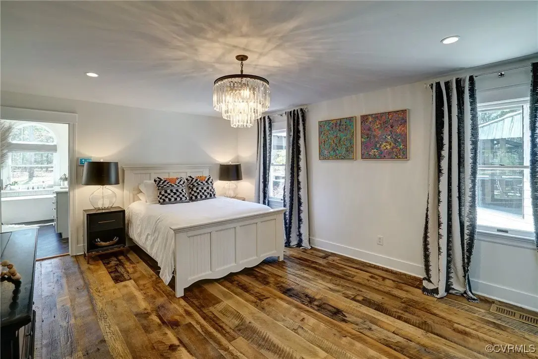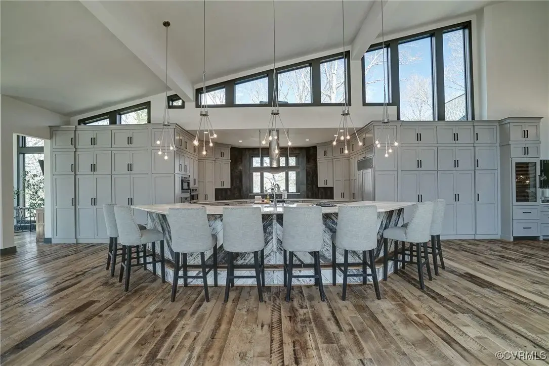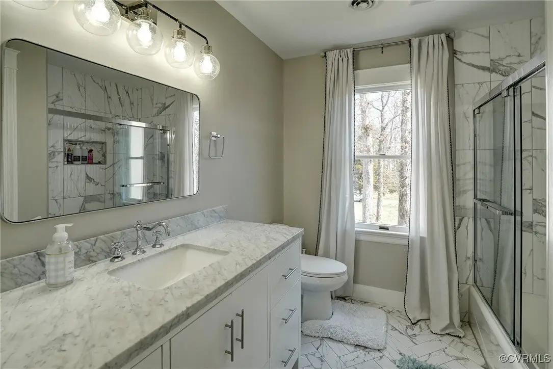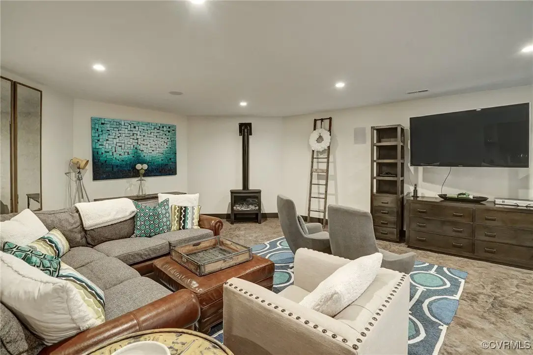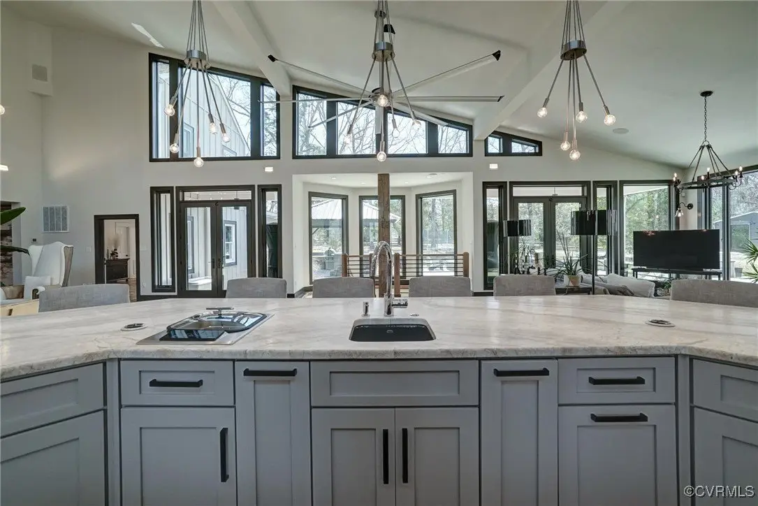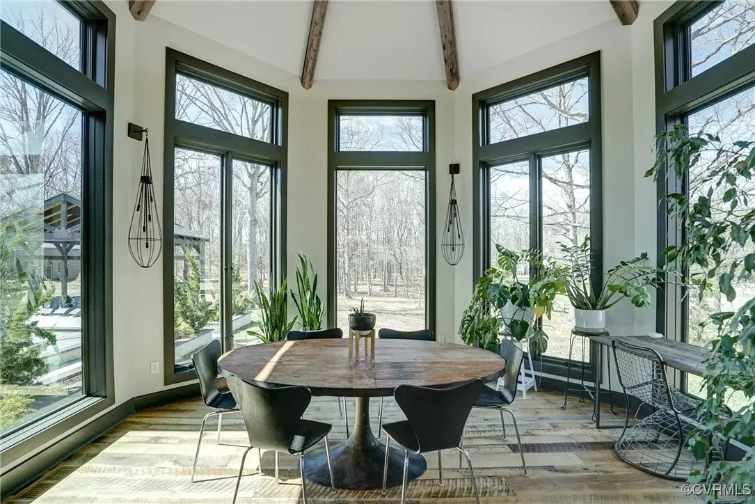 Entertainer's dream home has been extensively renovated with high end design and decorator finishes for your immediate enjoyment. The addition includes a 20 ft vaulted family room, custom kitchen and morning room for casual dining and features a floor to ceiling gas fireplace feature wall, random width reclaimed oak flooring, Umanoff lighting and walls of Pella windows and doors that flood the interiors with natural light and offer fantastic views of the nearly 5-acre site. The kitchen has a Wolf gas rangetop with griddle and grill, a steam convection oven, a convection wall oven, countertop steamer, Advantium oven, Sub-Zero refrigerator freezer and wine refrigerator. Custom cabinetry, quartzite countertops and and reclaimed wood on the island. The formal dining room has wonderful ambience from the fireplace shared with the family room. A private study with custom cabinetry and living room create additional private and quiet rooms for work and study. First floor primary suite has a huge walk-in closet and a gorgeous renovated bathroom with heated floors, steam sauna shower with dual heads and a rainwater head and dual granite vanities. A fully finished walk-out basement features a large entertainment room with gas fireplace, a walnut floating bar that seats 6, wall cabinet with copper sinks and a 2,500 bottle wine cellar. Upstairs is a second primary bedroom suite with walk-in closet and two bedrooms with a Jack and Jill bath, a home theatre with HD projector and 10 ft screen, an exercise room with a rubber floor and third floor bonus room. The outdoor living areas are fabulous with a covered kitchen and grill area, composite decking, a pool pavilion with fireplace, a 20 ft X 40 ft salt pool with tanning ledge and automatic cover for safety and a custom fire pit. Two-car attached garage. Bring your RV, boat and cars to the 40 ft X 36 ft detached garage with 2-15 ft garage doors. Whole house generator, Great location in Goochland's Centerville Village so convenient to Short Pump,West Creek and I-64 & Route 288.