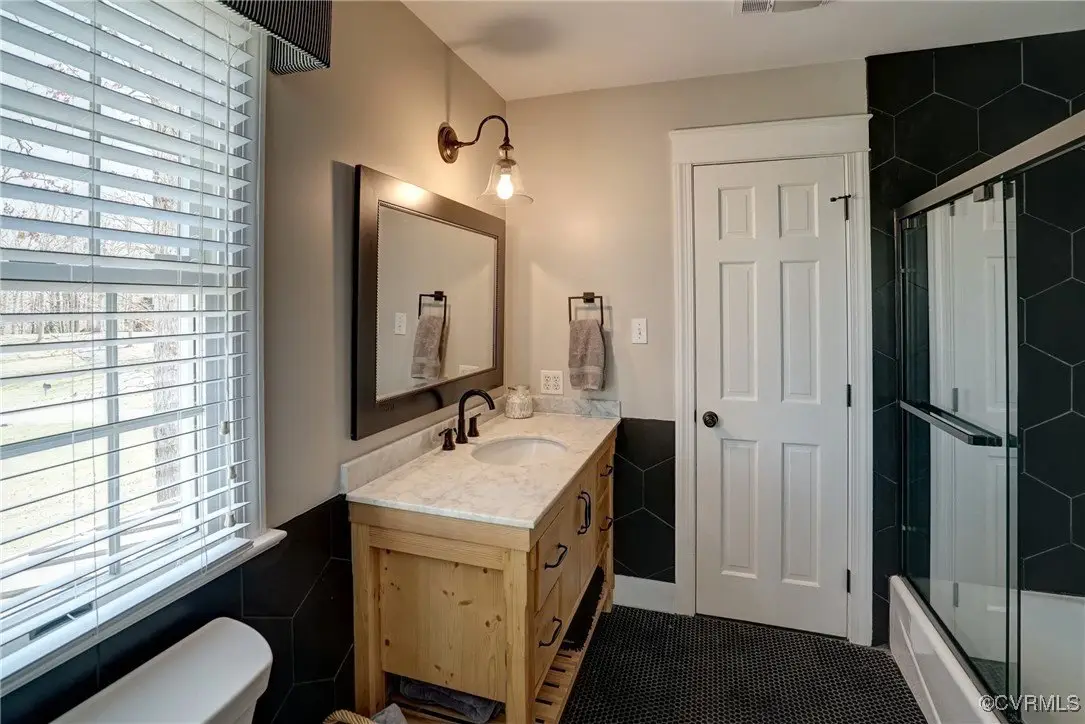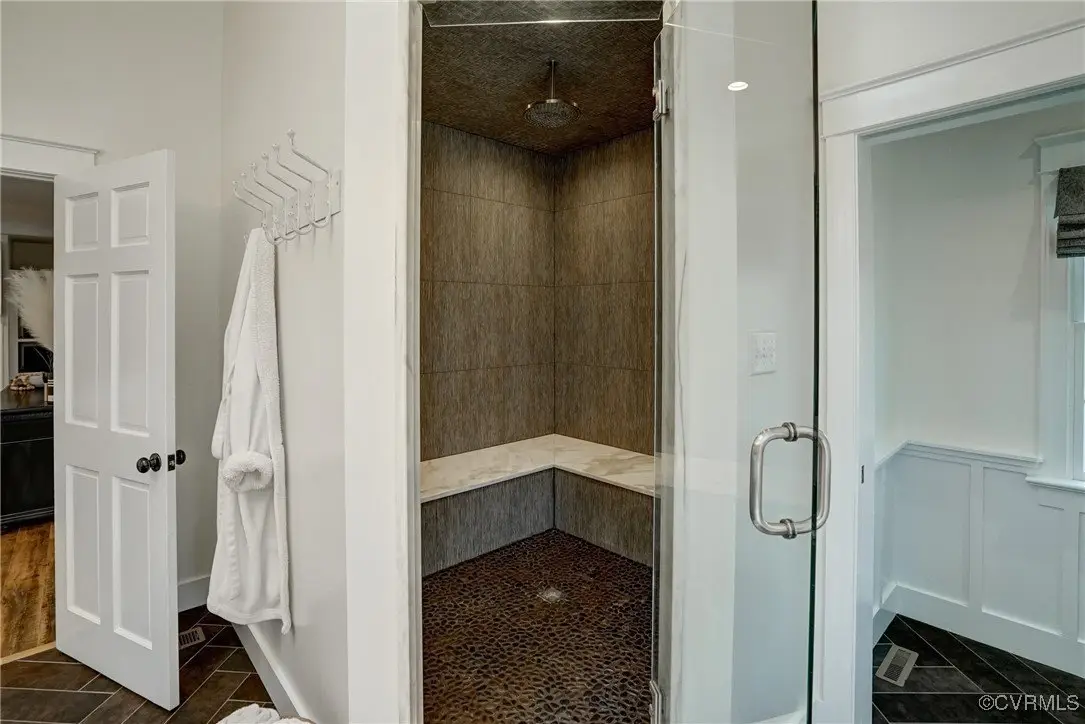 Renovated primary bathroom with steam sauna shower