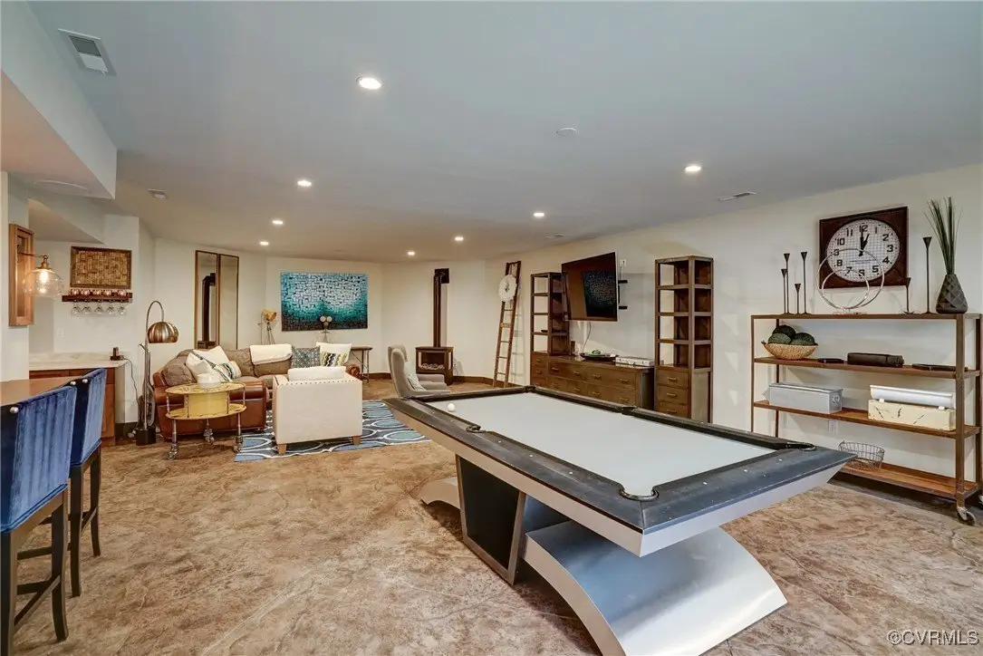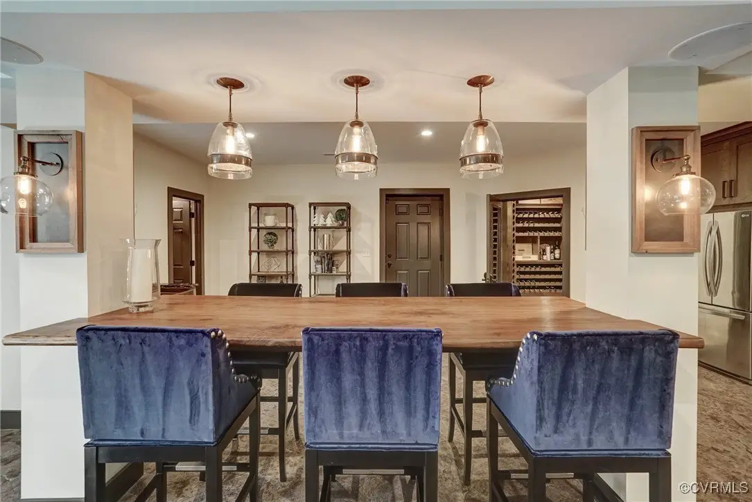 Fully finished basement with walnut bar and wine cellar