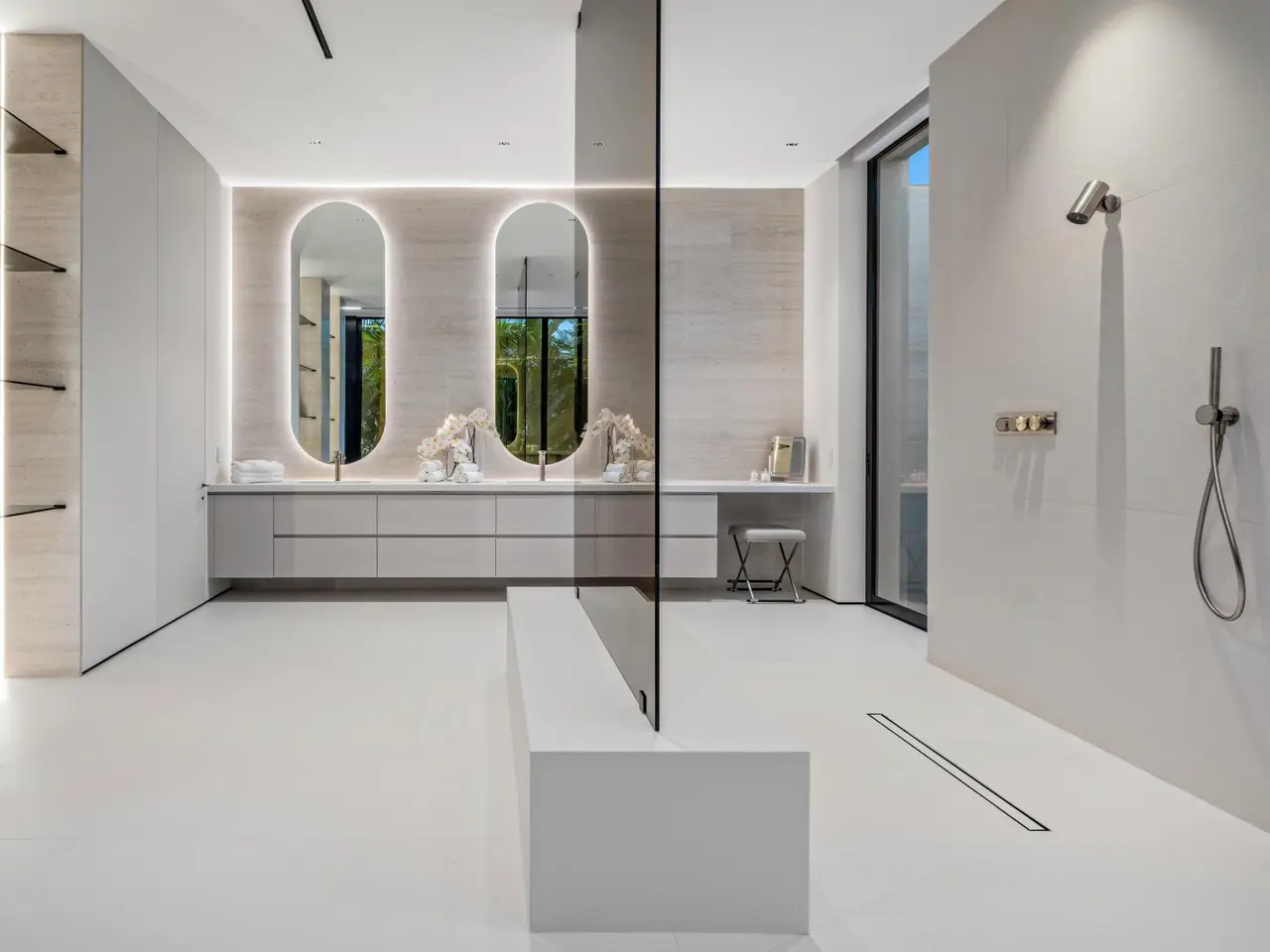 Meticulously designed, 35 Spoonbill Road is a new six-bedroom Point Manalapan estate blending museum-like minimalism with warm luxury. With 111 feet of private Intracoastal frontage and uninterrupted water views, privacy is unparalleled. Ocean Blue Custom Homes delivers a one-of-a-kind residence with an olive tree atrium, dual kitchens, knife-edge pool, outdoor shower garden, and deepwater dock.