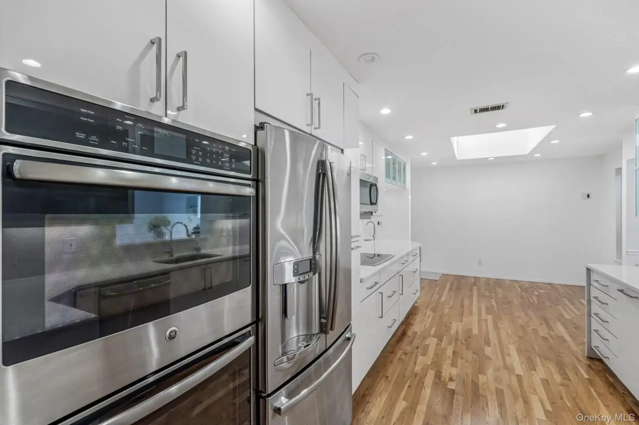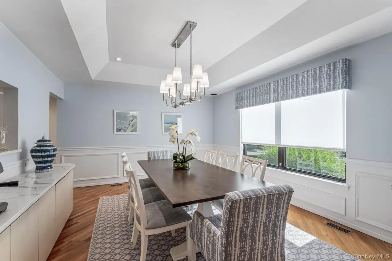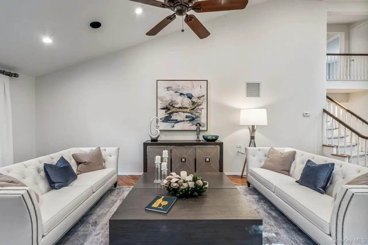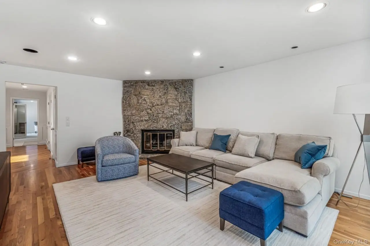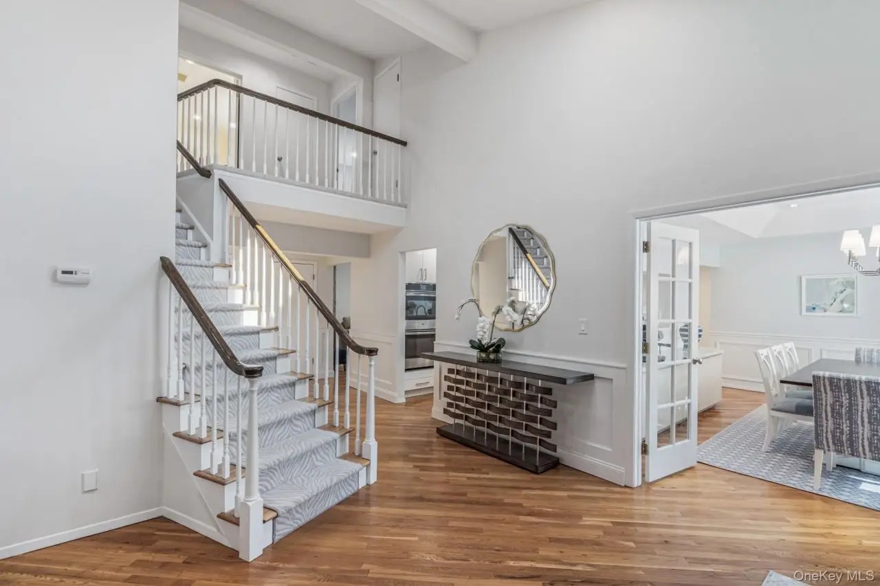 Welcome to this beautiful and tranquil home in the heart of the Gated Community of The Fairways. The home is characterized by hardwood floors, high ceilings, an open floor plan, large rooms and oversized windows that overlook green vistas and flood the interior with natural light. The renovated all white Modern Kitchen, with Stainless Steel appliances and Quartz Countertops opens to a large dining room with storage cabinets: perfect for entertaining! The Living room features a soaring cathedral ceiling and sliding doors to a quiet and peaceful outdoor deck surrounded by green space. Serene First Floor Primary Suite with walk in closet, laundry room, renovated Primary Bath, and access to the deck. For the winter months, there is a comfortable family room with wood burning fireplace and sun catching solarium windows. The second floor features 2 large bedrooms and a bath. The lower level has tons of storage, a recreation/home gym room, and a cedar closet. Attached 2 car garage with interior access, central vacuum. Enjoy community pool, tennis, pickle ball and basketball courts, and 24/7 security. Herricks School District.