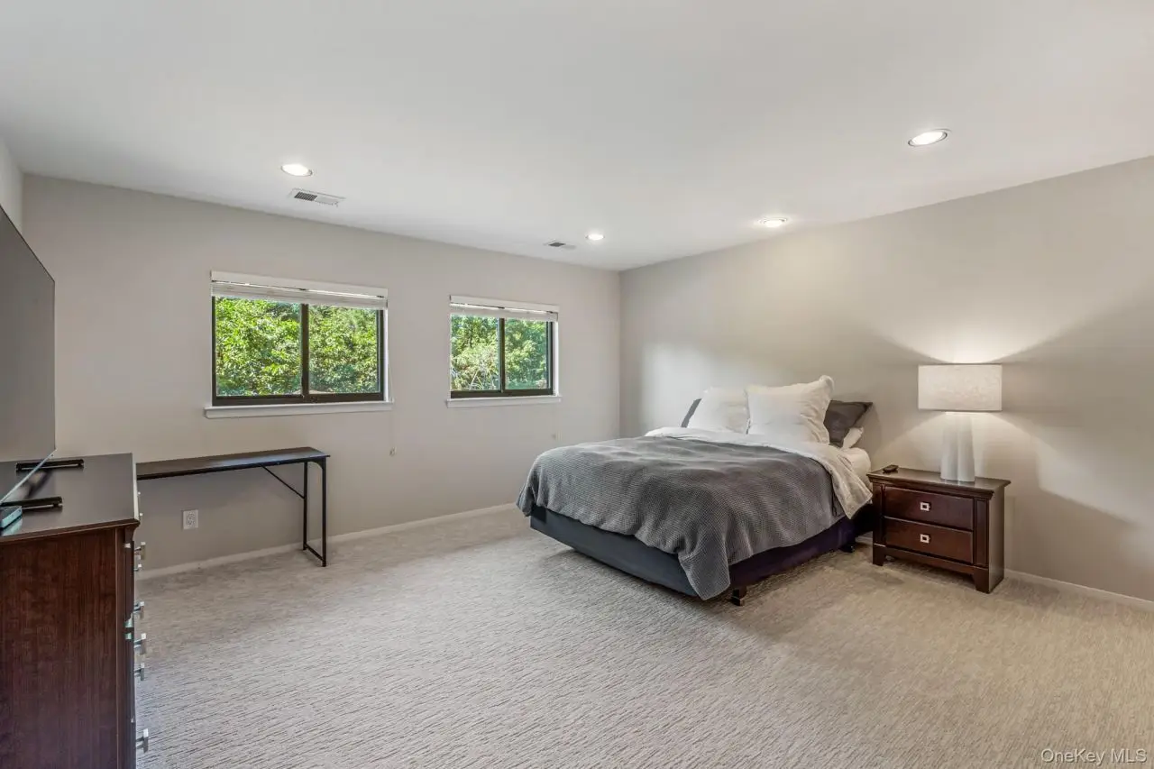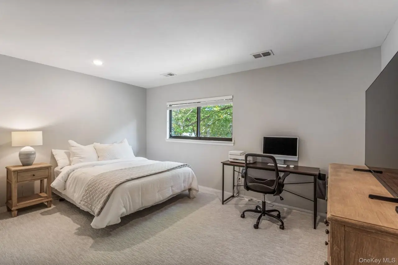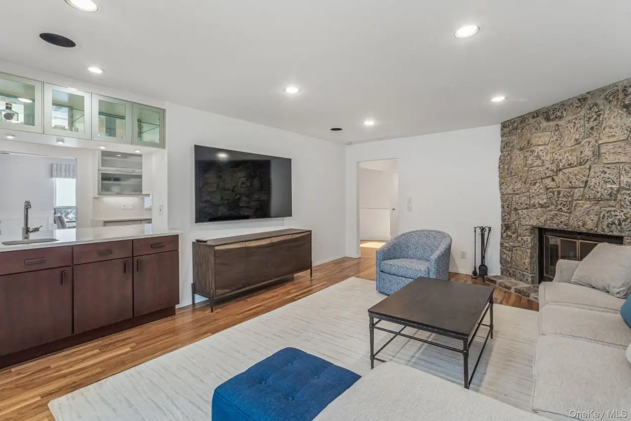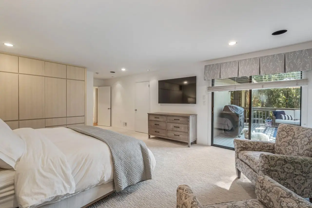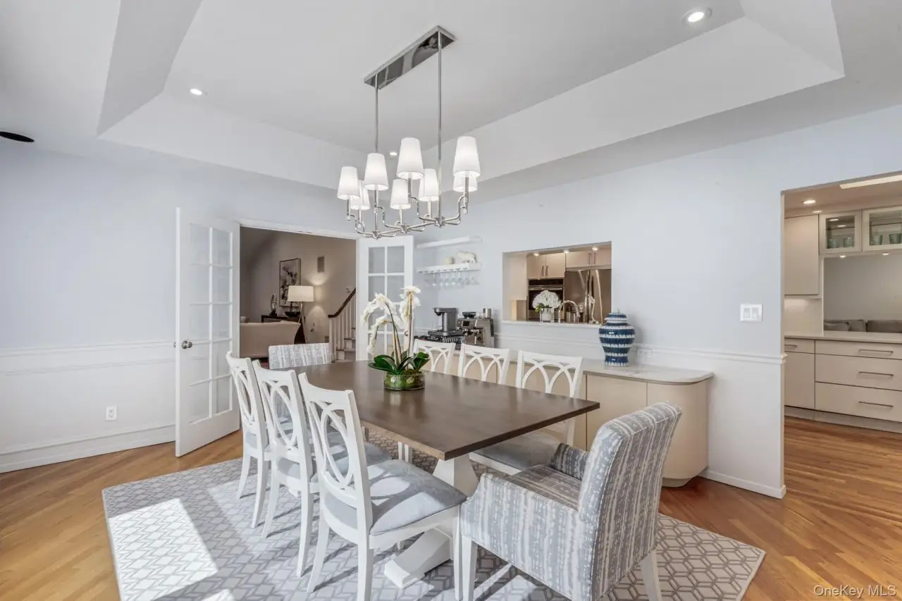 Welcome to this beautiful and tranquil home in the heart of the Gated Community of The Fairways. The home is characterized by hardwood floors, high ceilings, an open floor plan, large rooms and oversized windows that overlook green vistas and flood the interior with natural light. The renovated all white Modern Kitchen, with Stainless Steel appliances and Quartz Countertops opens to a large dining room with storage cabinets: perfect for entertaining! The Living room features a soaring cathedral ceiling and sliding doors to a quiet and peaceful outdoor deck surrounded by green space. Serene First Floor Primary Suite with walk in closet, laundry room, renovated Primary Bath, and access to the deck. For the winter months, there is a comfortable family room with wood burning fireplace and sun catching solarium windows. The second floor features 2 large bedrooms and a bath. The lower level has tons of storage, a recreation/home gym room, and a cedar closet. Attached 2 car garage with interior access, central vacuum. Enjoy community pool, tennis, pickle ball and basketball courts, and 24/7 security. Herricks School District.