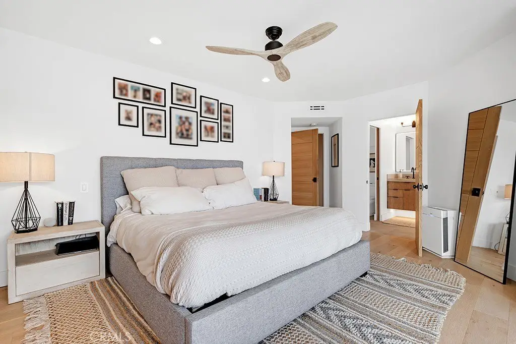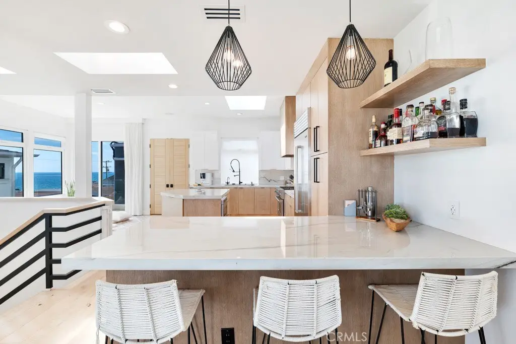 YOUR PRIVATE ARCHITECTURAL CONTEMPORARY BEACH HOUSE AWAITS! BREATHTAKING, PANORAMIC 180-DEGREE WHITE WATER AND COASTLINE VIEWS FROM MALIBU TO PALOS VERDES! MAJOR REMODEL RENOVATION COMPLETED 2021! MODERN FLOORPLAN, ELEVATION AND DESIGN! PREMIUM LOCATION IN THE SAND SECTION OF MANHATTAN BEACH, JUST FOUR HOUSES UP FROM THE STRAND, JUST STEPS TO THE BEACH & BOARDWALK YET ELEVATED TO GIVE YOU THE MOST INCREDIBLE PANORAMIC VIEWS, THE PERFECT LOCATION! Luxury and effortless BEACH LIVING converge at 129 Moonstone Street, architecturally stunning, with TEN FOOT CEILINGS, contemporary (2,143 SQ FT) SINGLE FAMILY HOME. (NO HOA!) This rare residence sits quietly WEST OF HIGHLAND on a PRIVATE and QUIET STREET offering the ultimate in exclusivity and tranquility. Inside, nearly every inch has been thoughtfully reimagined for modern luxury, from the ten-foot ceilings and walls of glass to skylights to the wide-plank white oak hardwood floors and designer finishes throughout. The sun-lit, open-concept floorplan is ideal for sophisticated entertaining or laid-back coastal beach days, featuring a state-of-the-art chef's center island gourmet kitchen with quartzite stone countertops, Viking and Sub-Zero appliances, a wine fridge, dry bar with ice maker, and a seamless transition to indoor/outdoor dining on one of four private balconies. Retreat to the palatial primary suite with marble fireplace, TWO WALK-IN CLOSETS, spa-like bath with freestanding tub and oversized shower. ALL THREE BEDROOMS ARE ENSUITES and OVERSIZED with lavish, modern baths, and an additional versatile DEN/OFFICE ADDS flexible space for work or guests. Enjoy peace of mind and effortless living with a fully integrated SMART HOME SYSTEM--security, cameras, Sonos whole-home sound, lighting and climate--all controlled via Apple HomeKit. Additional highlights include a built-in marble fireplace entertainment center in living room, interior laundry room, tankless hot water heater, whole-home filtration and softener, central A/C and heat, recessed and under-cabinet lighting and ceiling fans throughout. The finished two-car garage with Tesla charger and extra storage adds convenience, while a city-funded undergrounding project (now in Phase 3 of 4 phases), promises future value and EVEN BETTER panoramic white water and coastline VIEWS! CAN BE SOLD FURNISHED. 'BRUSH-FREE NEIGHBORHOOD!' JUST MINUTES TO LAX. CONCESSIONS.