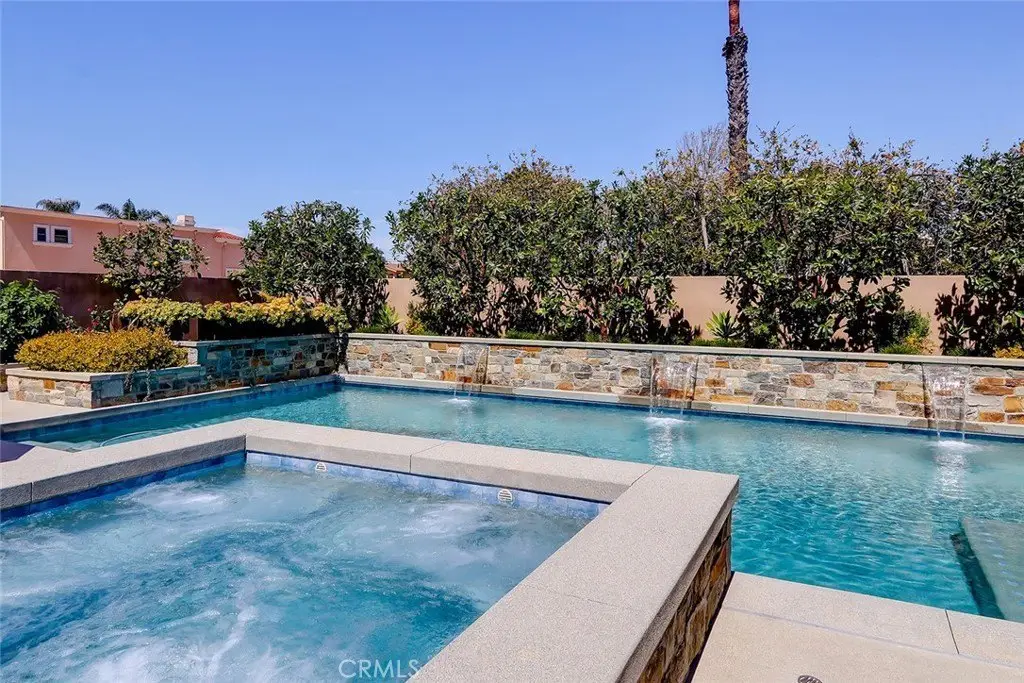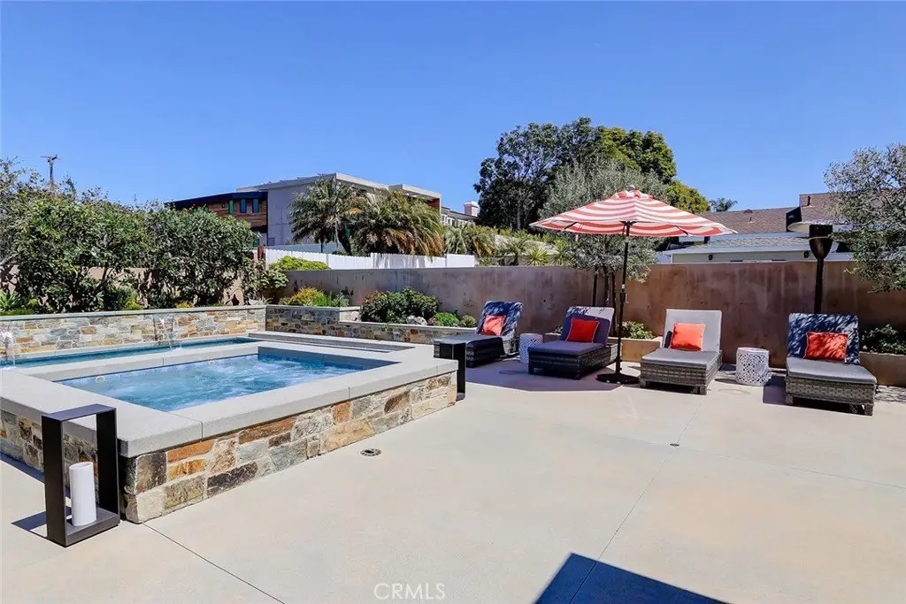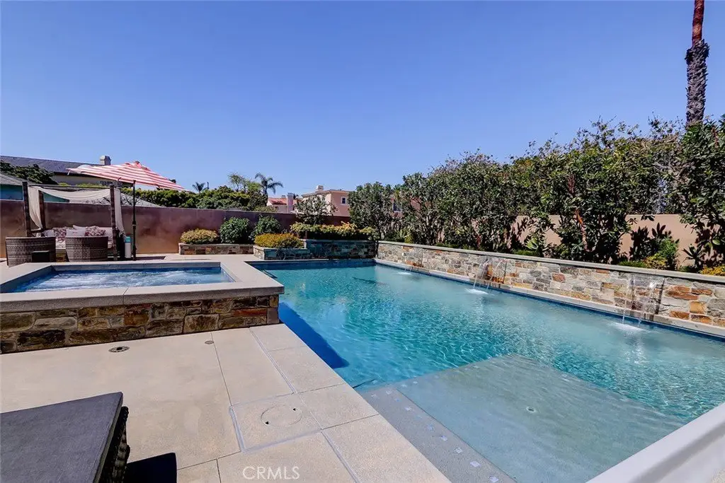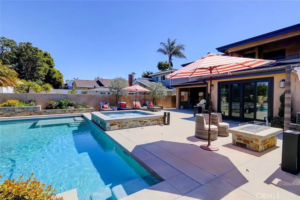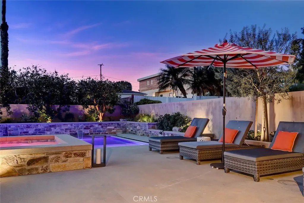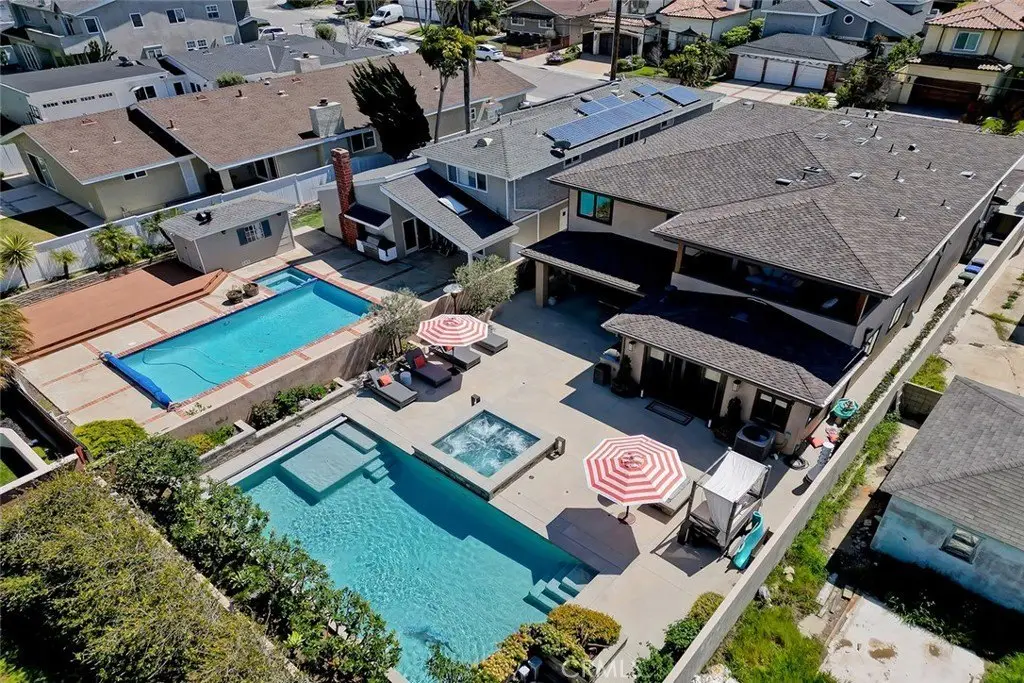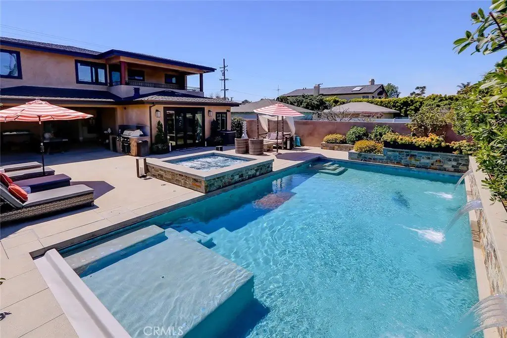 Custom built in 2017 on a 7,500 square foot lot, this stunning coastal contemporary home was thoughtfully designed with an emphasis on functionality and maximizing indoor/outdoor living. Unlike the typical spec home that maxes out interior square footage and sacrifices on the yard, this home offers a refreshing take with no wasted spaces and one of the most incredible backyards in Manhattan Beach. Open the front door and you're immediately greeted with soaring ceilings and a wide open great room that features a stunning zero post corner double pocket door system that seamlessly blends the jaw-dropping indoor and outdoor spaces. The spacious outdoor covered patio has a natural stone fireplace with an outdoor TV, stain grade tongue and groove ceilings, surround sound, and a fully stocked outdoor kitchen with a built in BBQ. Surrounded by mature landscaping, this private oasis of a yard has a built-in gas fire pit as well as a massive pool and spa featuring a baja shelf, waterfall feature, and multiple seating areas for lounging making it the perfect space for hosting. The chef's kitchen is perfectly situated open to the living and dining areas that open up to the backyard. Truly an entertainer's dream with a massive center island with seating, a double oven, butler's pantry, full size built in wine fridge, and tons of additional cabinet storage. Ideal bedroom layout with one guest bedroom and a full bathroom downstairs, a pool bath accessible from inside or outside, as well as a large office/flex space that can also serve as a playroom or gym. Upstairs you will find three spacious bedrooms each equipped with a walk in closet and bathroom en suite as well as an oversized laundry room with tons of storage. Generous primary suite with vaulted ceilings, a huge walk-in closet, a covered patio overlooking the backyard, and a large bathroom with dual vanities and a soaking tub. Additional features include custom hand hewn mahogany floors throughout, central AC, and a a finished 2 car garage with a sink and tons of storage.