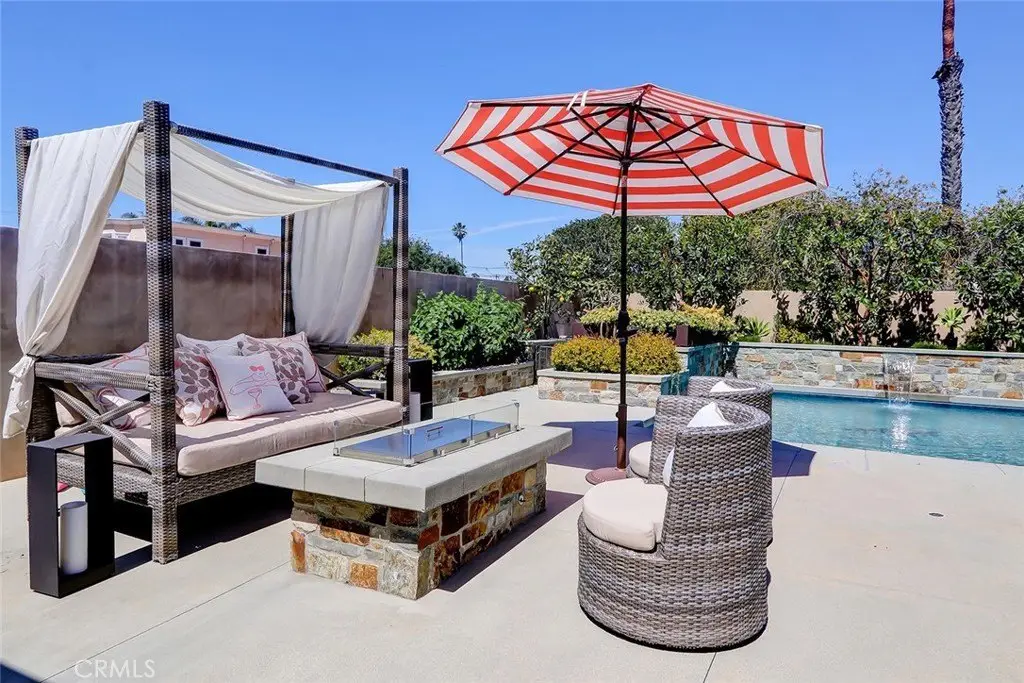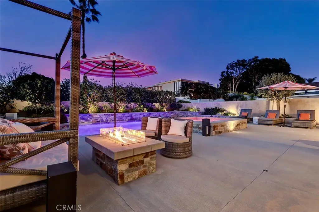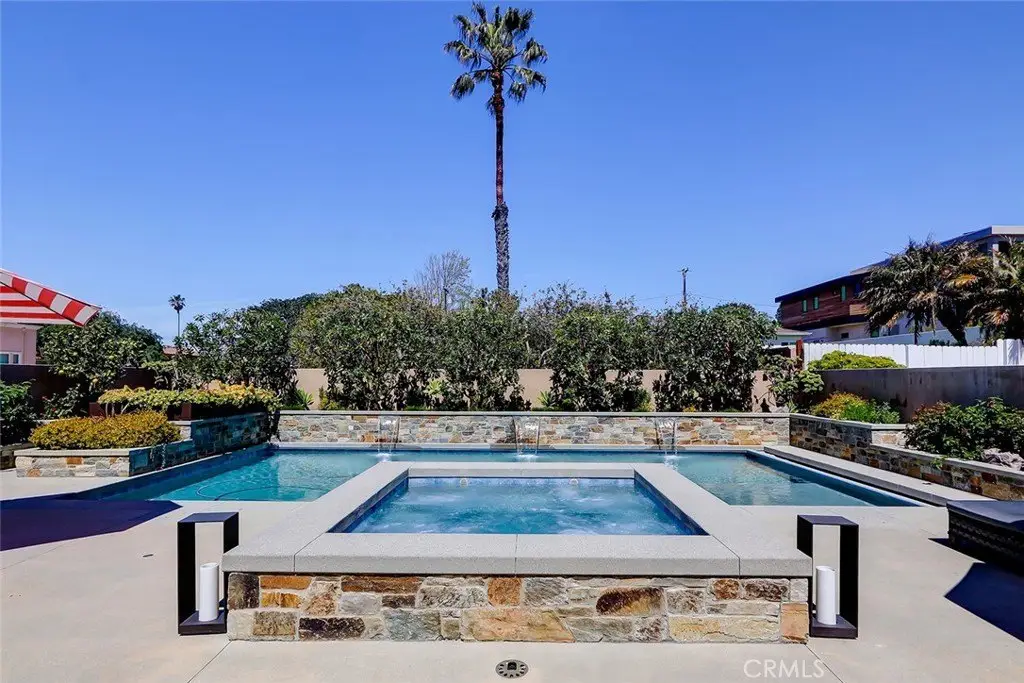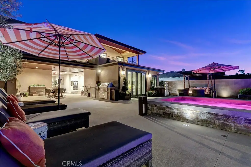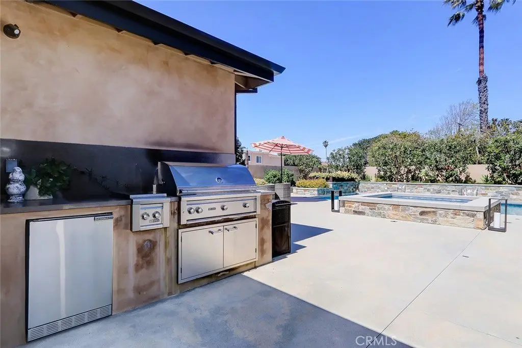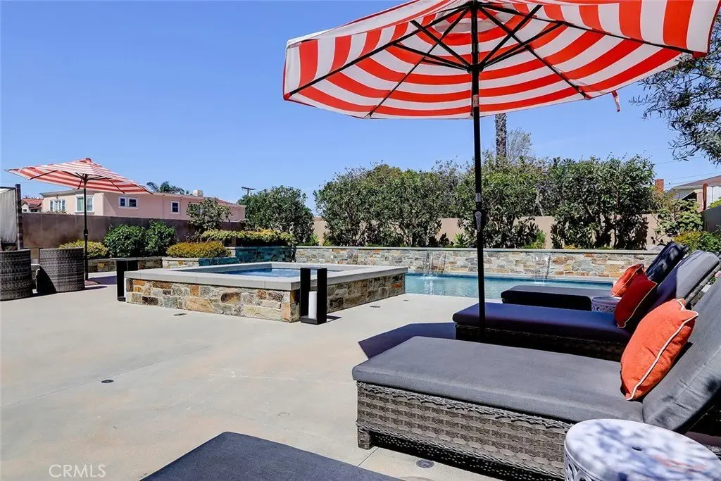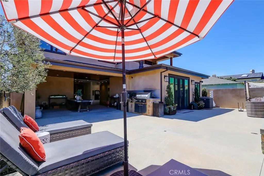 Custom built in 2017 on a 7,500 square foot lot, this stunning coastal contemporary home was thoughtfully designed with an emphasis on functionality and maximizing indoor/outdoor living. Unlike the typical spec home that maxes out interior square footage and sacrifices on the yard, this home offers a refreshing take with no wasted spaces and one of the most incredible backyards in Manhattan Beach. Open the front door and you're immediately greeted with soaring ceilings and a wide open great room that features a stunning zero post corner double pocket door system that seamlessly blends the jaw-dropping indoor and outdoor spaces. The spacious outdoor covered patio has a natural stone fireplace with an outdoor TV, stain grade tongue and groove ceilings, surround sound, and a fully stocked outdoor kitchen with a built in BBQ. Surrounded by mature landscaping, this private oasis of a yard has a built-in gas fire pit as well as a massive pool and spa featuring a baja shelf, waterfall feature, and multiple seating areas for lounging making it the perfect space for hosting. The chef's kitchen is perfectly situated open to the living and dining areas that open up to the backyard. Truly an entertainer's dream with a massive center island with seating, a double oven, butler's pantry, full size built in wine fridge, and tons of additional cabinet storage. Ideal bedroom layout with one guest bedroom and a full bathroom downstairs, a pool bath accessible from inside or outside, as well as a large office/flex space that can also serve as a playroom or gym. Upstairs you will find three spacious bedrooms each equipped with a walk in closet and bathroom en suite as well as an oversized laundry room with tons of storage. Generous primary suite with vaulted ceilings, a huge walk-in closet, a covered patio overlooking the backyard, and a large bathroom with dual vanities and a soaking tub. Additional features include custom hand hewn mahogany floors throughout, central AC, and a a finished 2 car garage with a sink and tons of storage.