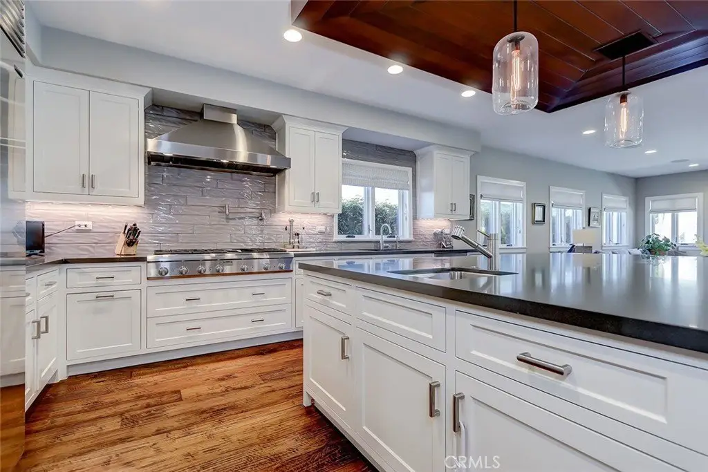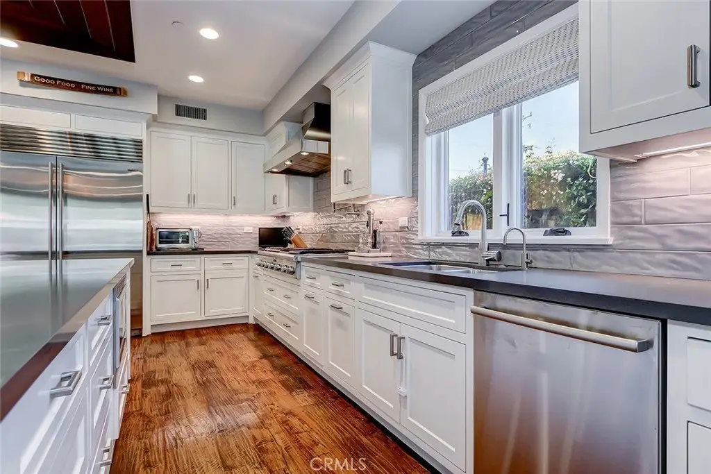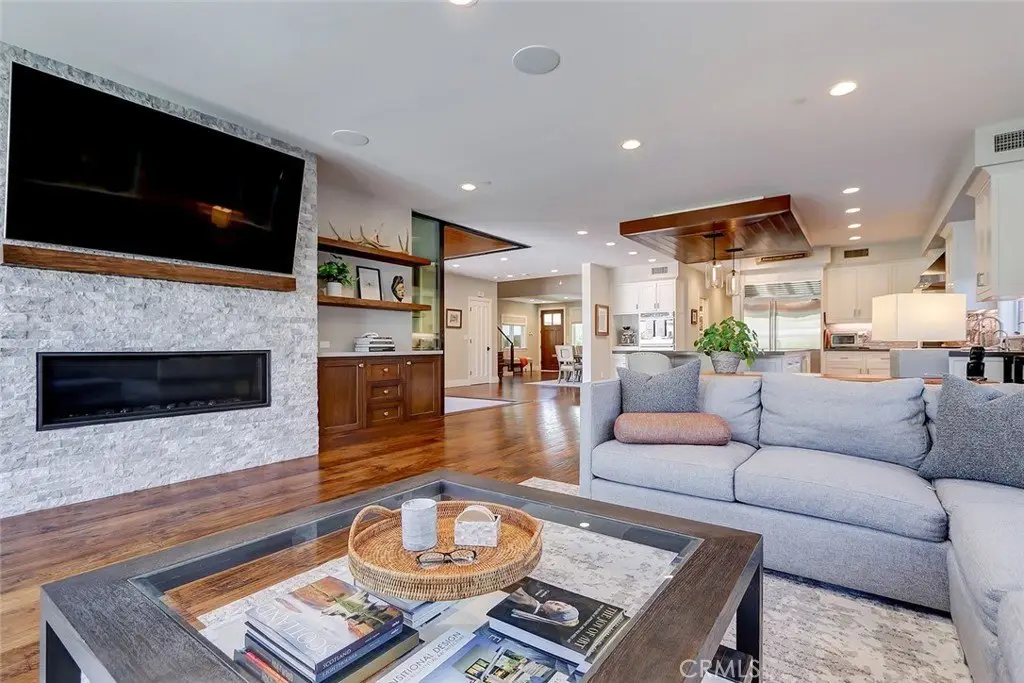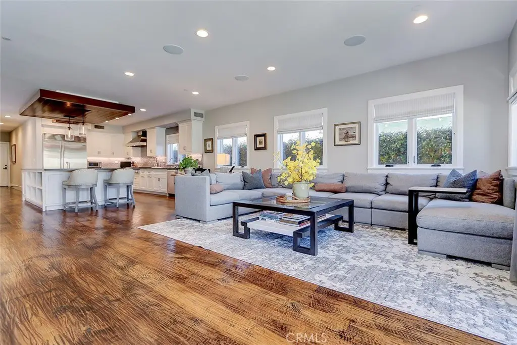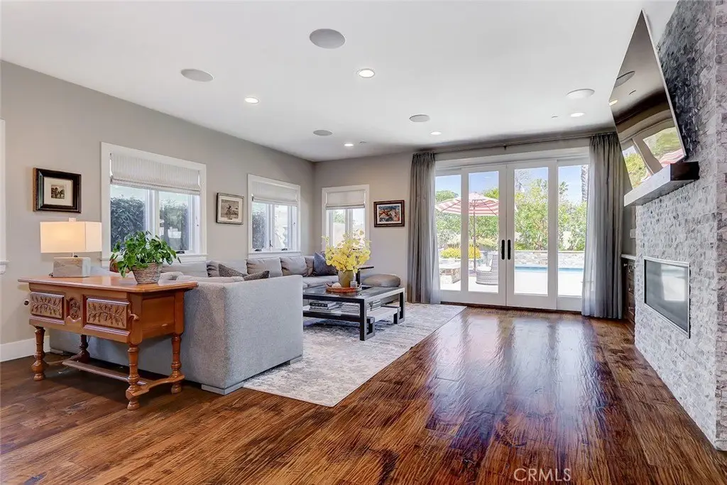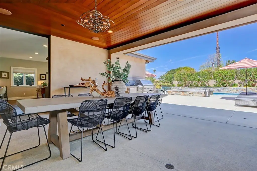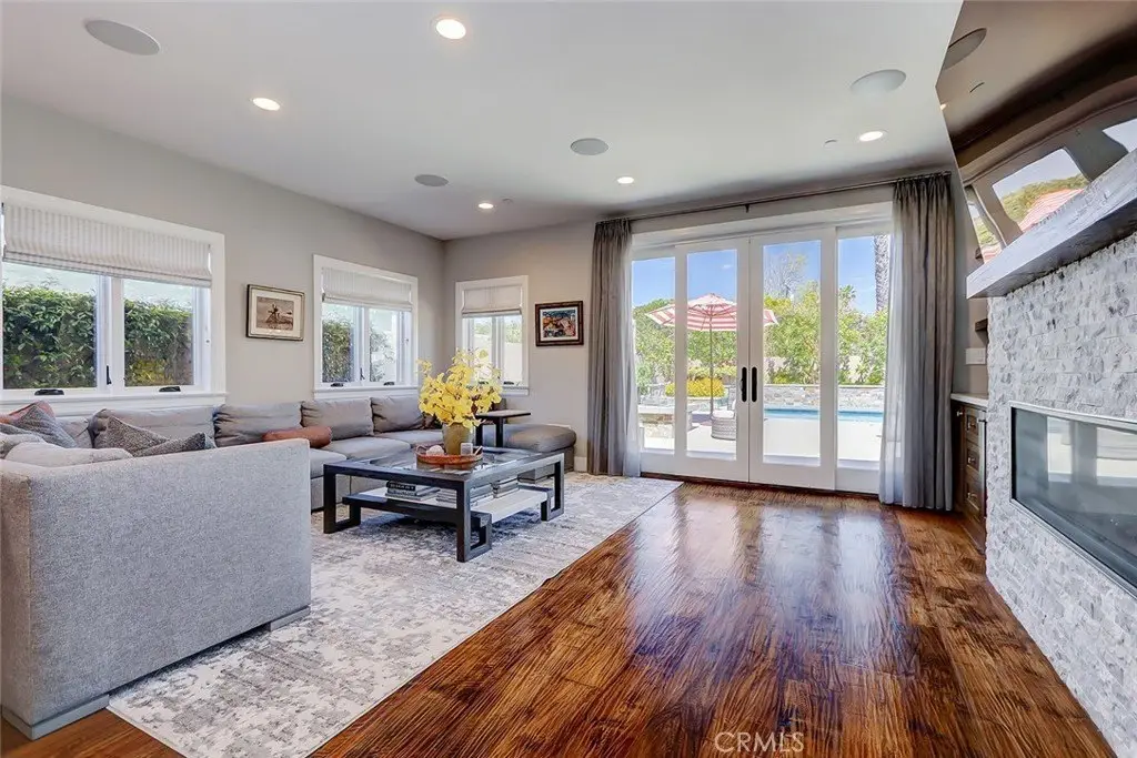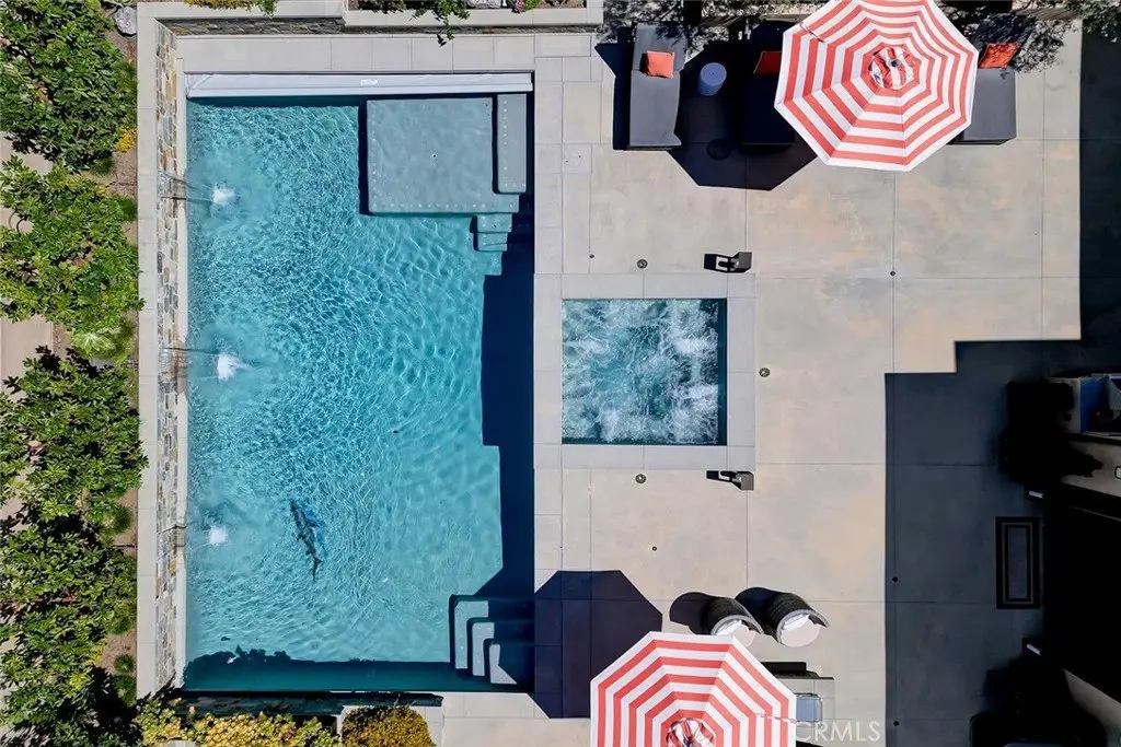 Custom built in 2017 on a 7,500 square foot lot, this stunning coastal contemporary home was thoughtfully designed with an emphasis on functionality and maximizing indoor/outdoor living. Unlike the typical spec home that maxes out interior square footage and sacrifices on the yard, this home offers a refreshing take with no wasted spaces and one of the most incredible backyards in Manhattan Beach. Open the front door and you're immediately greeted with soaring ceilings and a wide open great room that features a stunning zero post corner double pocket door system that seamlessly blends the jaw-dropping indoor and outdoor spaces. The spacious outdoor covered patio has a natural stone fireplace with an outdoor TV, stain grade tongue and groove ceilings, surround sound, and a fully stocked outdoor kitchen with a built in BBQ. Surrounded by mature landscaping, this private oasis of a yard has a built-in gas fire pit as well as a massive pool and spa featuring a baja shelf, waterfall feature, and multiple seating areas for lounging making it the perfect space for hosting. The chef's kitchen is perfectly situated open to the living and dining areas that open up to the backyard. Truly an entertainer's dream with a massive center island with seating, a double oven, butler's pantry, full size built in wine fridge, and tons of additional cabinet storage. Ideal bedroom layout with one guest bedroom and a full bathroom downstairs, a pool bath accessible from inside or outside, as well as a large office/flex space that can also serve as a playroom or gym. Upstairs you will find three spacious bedrooms each equipped with a walk in closet and bathroom en suite as well as an oversized laundry room with tons of storage. Generous primary suite with vaulted ceilings, a huge walk-in closet, a covered patio overlooking the backyard, and a large bathroom with dual vanities and a soaking tub. Additional features include custom hand hewn mahogany floors throughout, central AC, and a a finished 2 car garage with a sink and tons of storage.