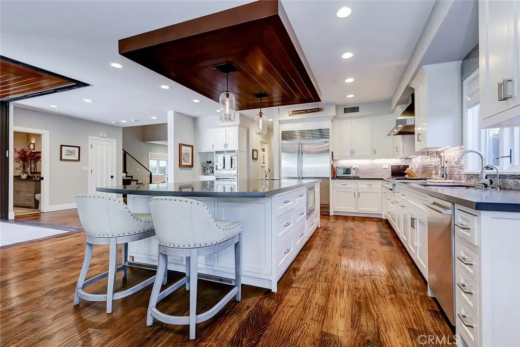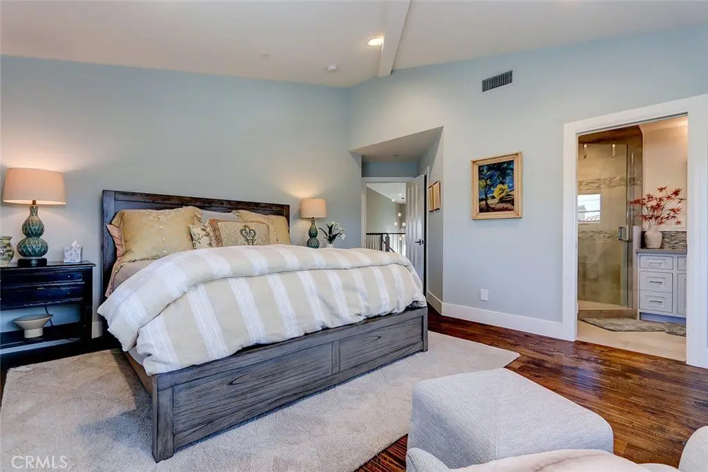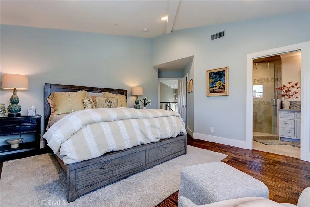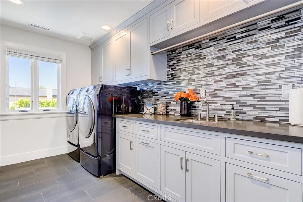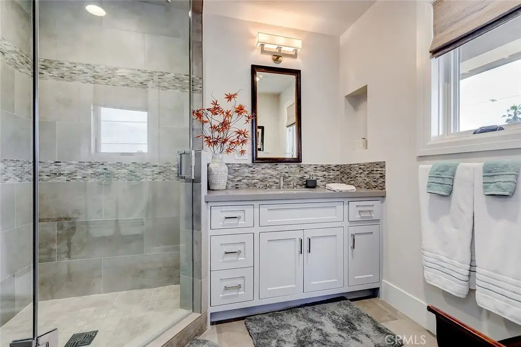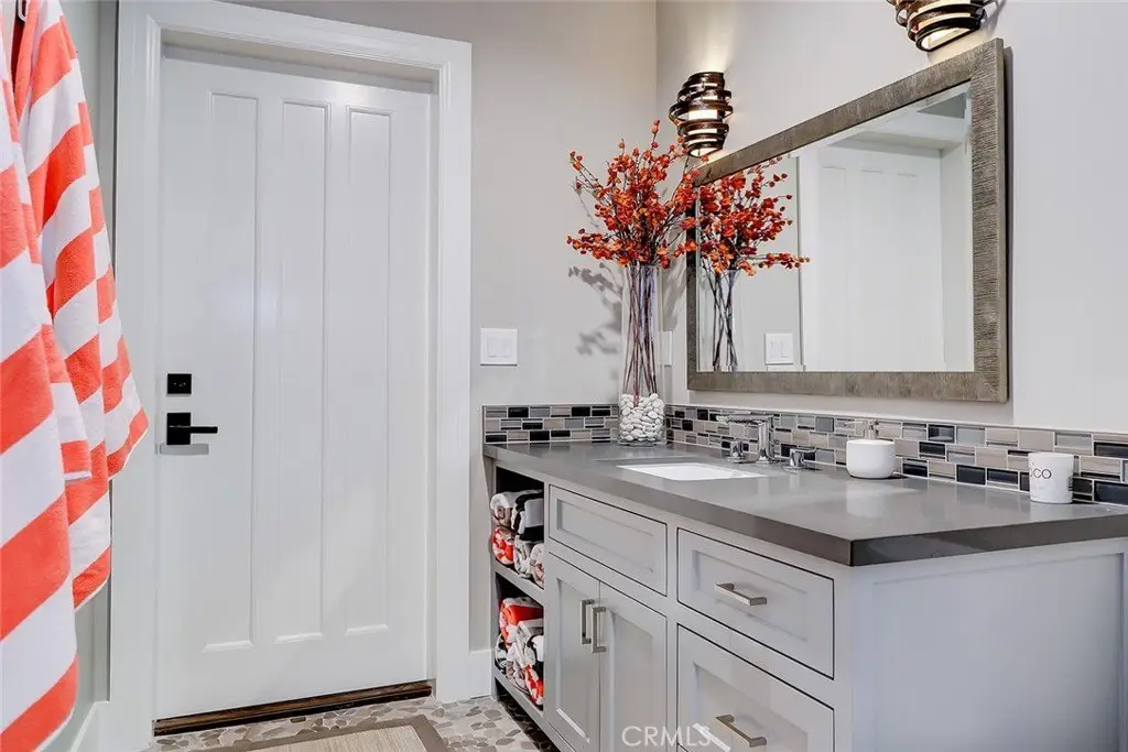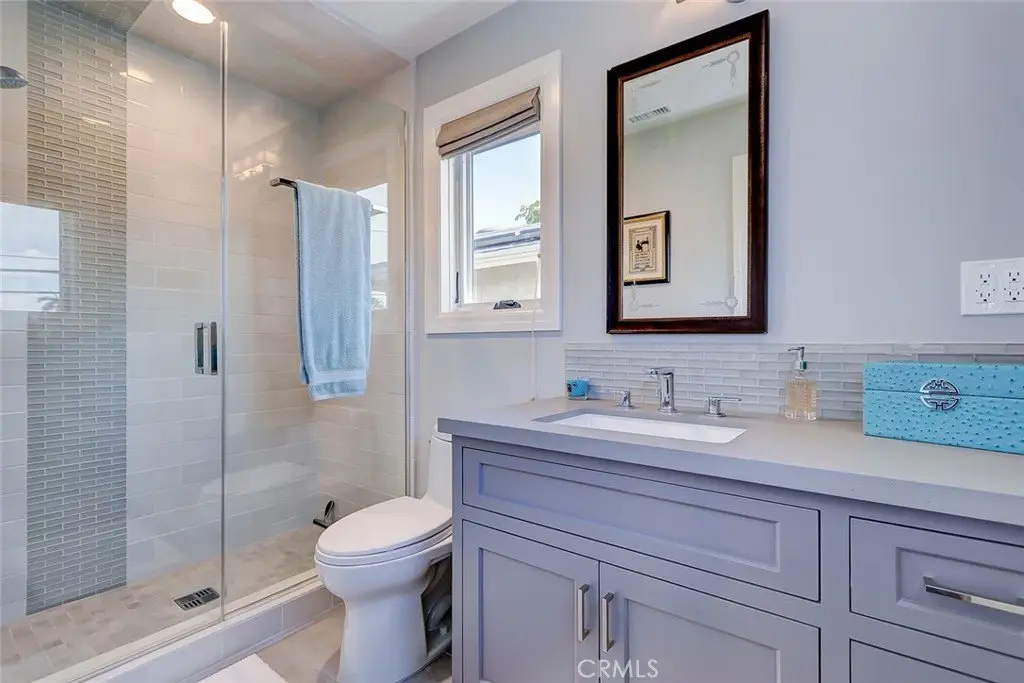 Custom built in 2017 on a 7,500 square foot lot, this stunning coastal contemporary home was thoughtfully designed with an emphasis on functionality and maximizing indoor/outdoor living. Unlike the typical spec home that maxes out interior square footage and sacrifices on the yard, this home offers a refreshing take with no wasted spaces and one of the most incredible backyards in Manhattan Beach. Open the front door and you're immediately greeted with soaring ceilings and a wide open great room that features a stunning zero post corner double pocket door system that seamlessly blends the jaw-dropping indoor and outdoor spaces. The spacious outdoor covered patio has a natural stone fireplace with an outdoor TV, stain grade tongue and groove ceilings, surround sound, and a fully stocked outdoor kitchen with a built in BBQ. Surrounded by mature landscaping, this private oasis of a yard has a built-in gas fire pit as well as a massive pool and spa featuring a baja shelf, waterfall feature, and multiple seating areas for lounging making it the perfect space for hosting. The chef's kitchen is perfectly situated open to the living and dining areas that open up to the backyard. Truly an entertainer's dream with a massive center island with seating, a double oven, butler's pantry, full size built in wine fridge, and tons of additional cabinet storage. Ideal bedroom layout with one guest bedroom and a full bathroom downstairs, a pool bath accessible from inside or outside, as well as a large office/flex space that can also serve as a playroom or gym. Upstairs you will find three spacious bedrooms each equipped with a walk in closet and bathroom en suite as well as an oversized laundry room with tons of storage. Generous primary suite with vaulted ceilings, a huge walk-in closet, a covered patio overlooking the backyard, and a large bathroom with dual vanities and a soaking tub. Additional features include custom hand hewn mahogany floors throughout, central AC, and a a finished 2 car garage with a sink and tons of storage.