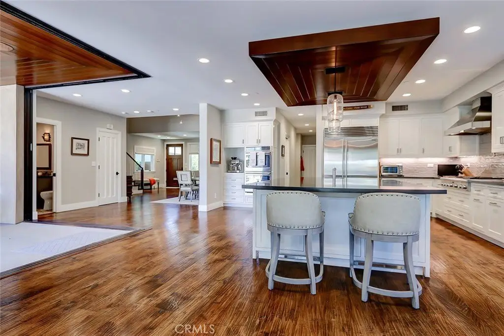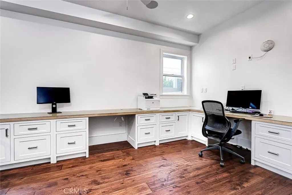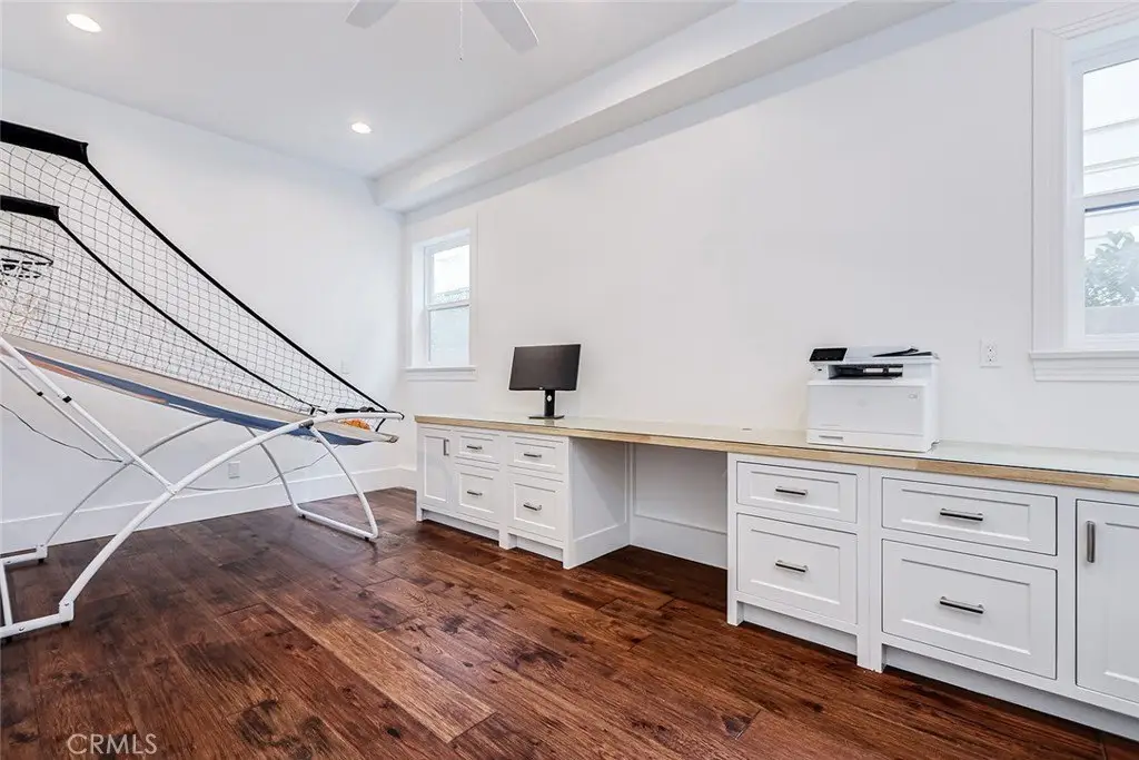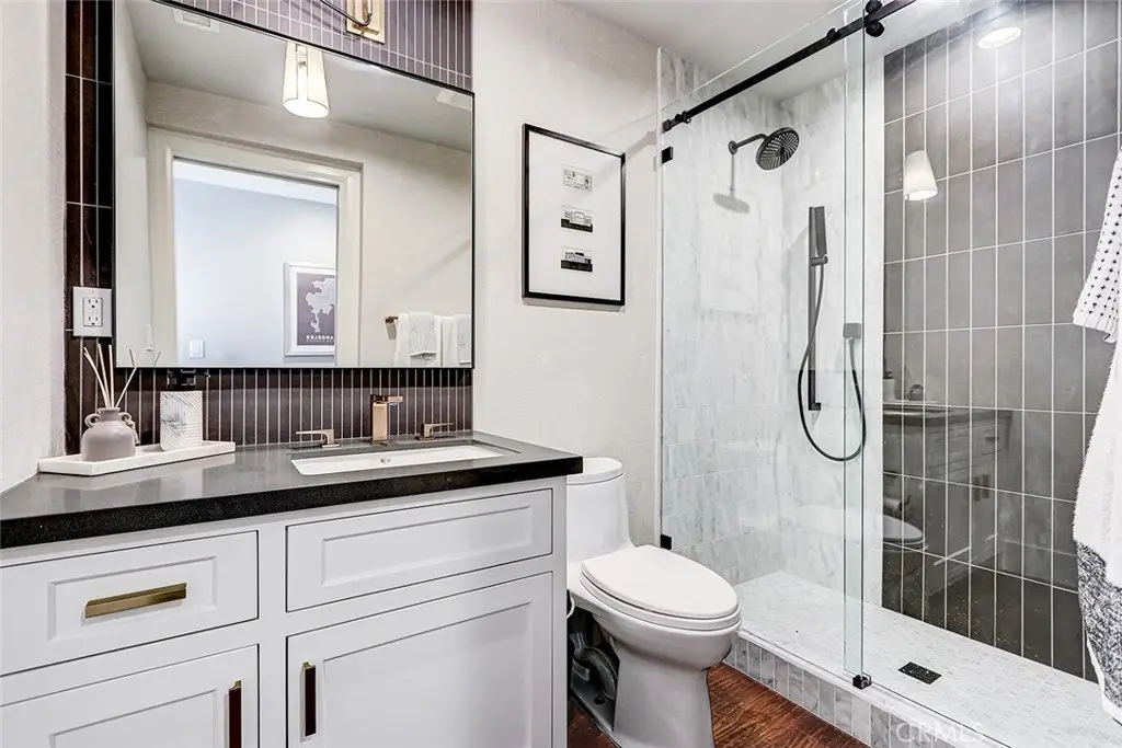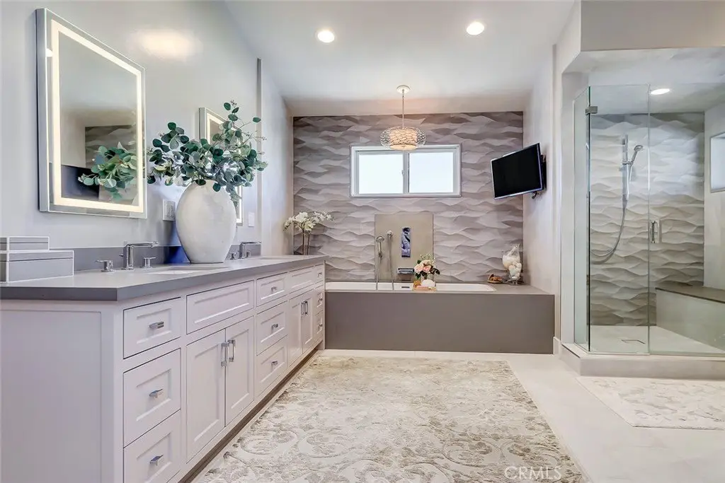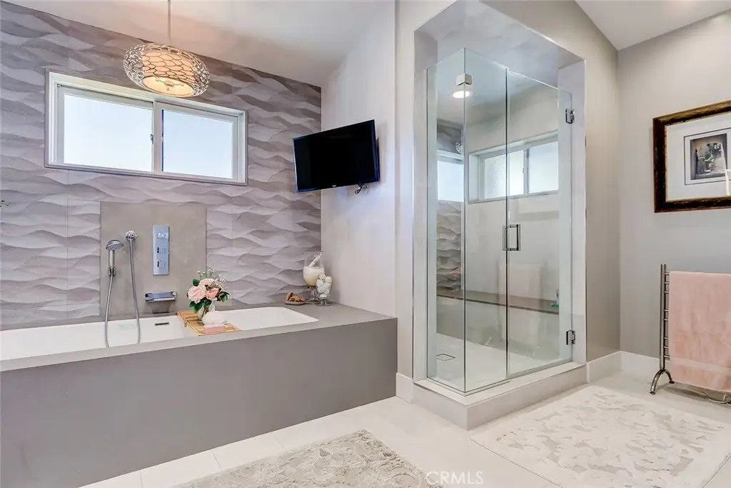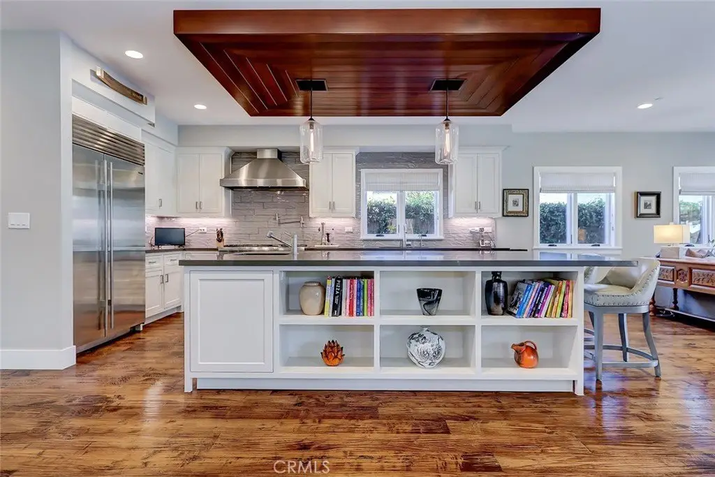 Custom built in 2017 on a 7,500 square foot lot, this stunning coastal contemporary home was thoughtfully designed with an emphasis on functionality and maximizing indoor/outdoor living. Unlike the typical spec home that maxes out interior square footage and sacrifices on the yard, this home offers a refreshing take with no wasted spaces and one of the most incredible backyards in Manhattan Beach. Open the front door and you're immediately greeted with soaring ceilings and a wide open great room that features a stunning zero post corner double pocket door system that seamlessly blends the jaw-dropping indoor and outdoor spaces. The spacious outdoor covered patio has a natural stone fireplace with an outdoor TV, stain grade tongue and groove ceilings, surround sound, and a fully stocked outdoor kitchen with a built in BBQ. Surrounded by mature landscaping, this private oasis of a yard has a built-in gas fire pit as well as a massive pool and spa featuring a baja shelf, waterfall feature, and multiple seating areas for lounging making it the perfect space for hosting. The chef's kitchen is perfectly situated open to the living and dining areas that open up to the backyard. Truly an entertainer's dream with a massive center island with seating, a double oven, butler's pantry, full size built in wine fridge, and tons of additional cabinet storage. Ideal bedroom layout with one guest bedroom and a full bathroom downstairs, a pool bath accessible from inside or outside, as well as a large office/flex space that can also serve as a playroom or gym. Upstairs you will find three spacious bedrooms each equipped with a walk in closet and bathroom en suite as well as an oversized laundry room with tons of storage. Generous primary suite with vaulted ceilings, a huge walk-in closet, a covered patio overlooking the backyard, and a large bathroom with dual vanities and a soaking tub. Additional features include custom hand hewn mahogany floors throughout, central AC, and a a finished 2 car garage with a sink and tons of storage.