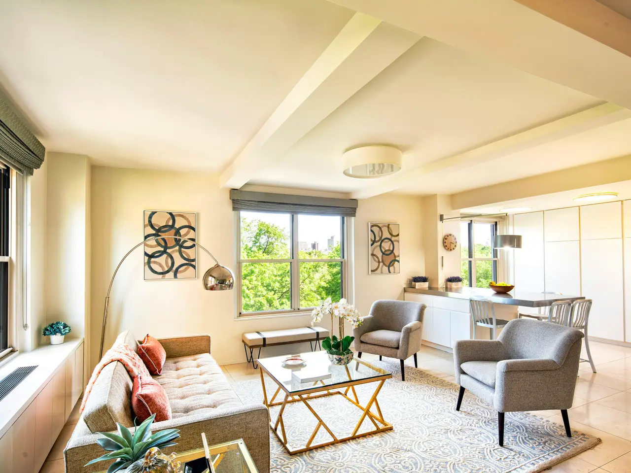 Direct Central Park VIEWS through 14 large windows in this approximately 2400 square foot, 4-bedroom, 3-bathroom duplex. Every inch of this home is flooded with natural light, as every room offers Park views! This sun-drenched corner duplex is a seamless combination of two "A'-lines, thoughtfully reimagined to create a spacious, "house-like" layout. Enter on the 6th floor to the open floorplan incorporating a Park facing corner living and dining room with an adjacent eat-in kitchen on the Park. Also, on this level is a gracious Park facing den or 4th bedroom, and full bathroom, making it an ideal private guest bedroom. The expansive kitchen has excellent storage via endless cabinets, top-of-the-line stainless steel appliances including Viking stove & Sub-zero refrigerator, and a large island/breakfast bar for casual dining while taking in the bucolic Central Park views! The expansive living and dining area boasts bright northern and eastern exposures, making it perfect for entertaining. Completing this level is a hidden washer/dryer and wet bar. Descend downstairs via a sleek floating glass staircase to a spacious landing with elevator access. The 5th floor has 3 generously sized bedrooms, an office nook, and 2 full bathrooms, including an en-suite bathroom for the primary suite. The expansive corner primary bedroom offers stunning Central Park views, built-in closets, a large dressing room with additional storage, and a spa-like, windowed bathroom. This luxurious bathroom features a large rain shower, heated floors, a double vanity, 3 mirrored medicine cabinets, and a separate water closet. The 2 additional bedrooms on this floor also face the Park and are well-appointed, each with large closets and sharing a windowed bathroom. This beautiful contemporary home is the best blend of clean lines and prewar charm, all with stunning views of Central Park and plenty of room to spread out! 410 Central Park West is a full-service building with 24-hour doorman, excellent live-in Super, storage (as available), gym ($20 per user per month), bike room and common laundry. 80 percent financing and pets are allowed! Live directly across the street from Central Park, moments away from shopping at Columbus Square and transportation.