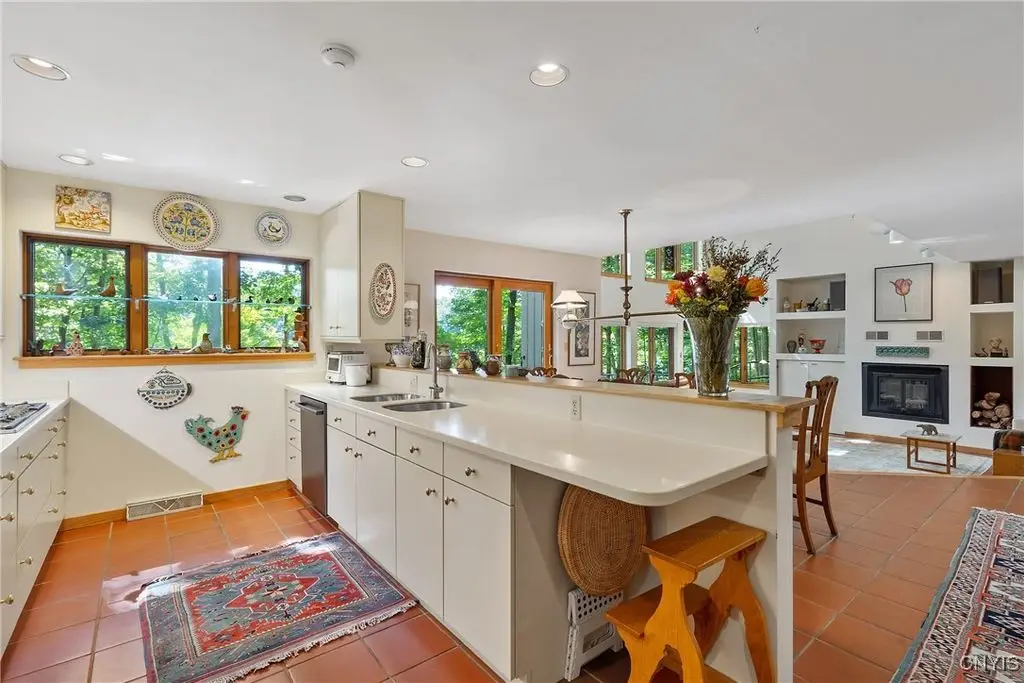 Stunning, Custom built Contemporary, 1.7 acres, on Snooks Pond, with 122 feet of deeded waterfront. Drive down your private driveway to your future home and be impressed!! As you open the front door to your large foyer, you will see a wall of windows viewing Snooks Pond from your great room. Open concept. Wood-burning fireplace. Light & bright, chef's dream kitchen with Thermador, gas stovetop, Bosh 3 tier dishwasher, double, Bosh, convection ovens. Counter space galore ! Built in China cabinet. Large mudroom with wet sink to the 3 car garage. Year round sunroom has a gas fireplace, 9 ft glass sliders to the 35 ft deck. Off the great room is a large, 1st floor bedroom with full bath, also a private, office/music room. Upstairs has a spacious loft with large bookcases, sitting area, all with hardwood flooring! Exceptional, primary bedroom, cathedral ceiling & balcony off. Huge, walk-in closet /extra sink/vanity area. Primary bathroom with large, walk-in shower, Jacuzzi tub, bidet/vanity/sink, all in pristine condition. There are 2 additional bedrooms, each having a ladder to an upper loft/sleeping area, or area for stuffed animals-decor. In the 2 bedrooms are walk-in closets with their own vanity/sinks. Full bath is shared between the 2 bedrooms. Your family will enjoy the 2nd floor laundry room/skylights. Walkout basement has a recreation room, full bath, and 2 large storage rooms, 1 having a walkout to the backyard. Wonderful, wooded oasis backyard to the spectacular, waterfront with floating dock. Swim, Kayak, windsurf, & entertain in your backyard!! Plenty of room for the kids to play ! It doesn't get better than this within 5 minutes to all F-M Schools. This is the total package that will make your friends envy! Buyer could save $610. off School taxes for BASIC STAR if they apply. Come See!!
