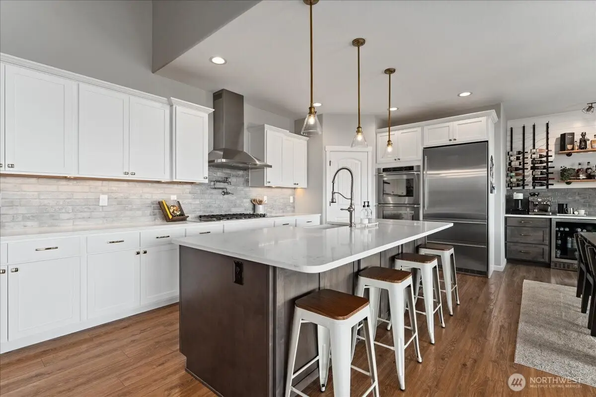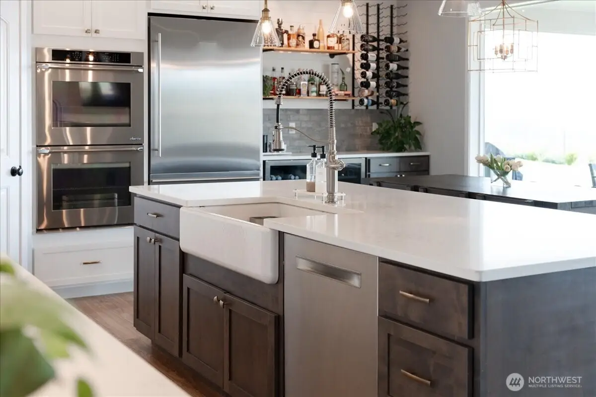 Enjoy sweeping views of Lake Chelan from this stunning 3bd/2bth 1,910sf rambler perfectly set on a 1.66 acre homesite. This home offers an open floor plan w/ abundant natural light & seamless indoor-outdoor living. The gourmet kitchen features quartz countertops, stainless steel appliances, spacious island & pantry. Entertaining is easy w/ the adjacent dining & living areas & a built-in bar. Sliding glass doors lead to a covered dining & lounge area, BBQ, fire pit & grassy lawn - all with panoramic lake views. The spacious primary suite features a walk-in closet & spa-like bath + 2 bedrooms & a den. The 3-car garage & RV Parking w/ hookups offer room for vehicles & lake toys. All just steps from Manson's many shops, restaurants & wineries.