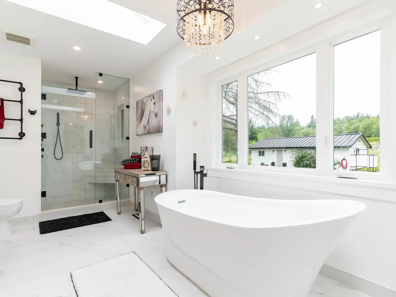 Incredible & rare Thornhill estate/equestrian property on 2 acres. Extensively renovated 5-bed home with heated floors, steam shower, soaker tub, central A/C & in-law suite. Full exterior envelope redone—commercial drainage, drain tile, gutters, windows & skylights. Updates include hot water on demand, 400-amp service, plumbing, insulation & furnace. Attached tandem garage plus new 3-car detached shop. Outside: fenced pastures, all-weather riding arena, barn, fruit trees & grapevines. Entertain on 1,000 sq ft of stamped concrete with outdoor kitchen, hot tub, heated shower & saltwater pool. Exempt from ALR land use restrictions—potential to build more.