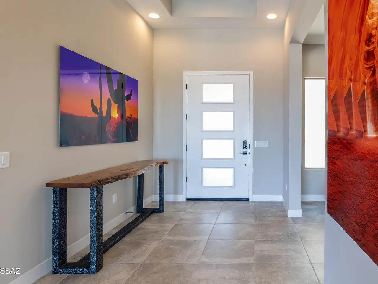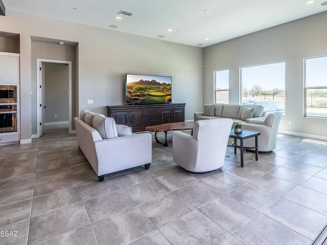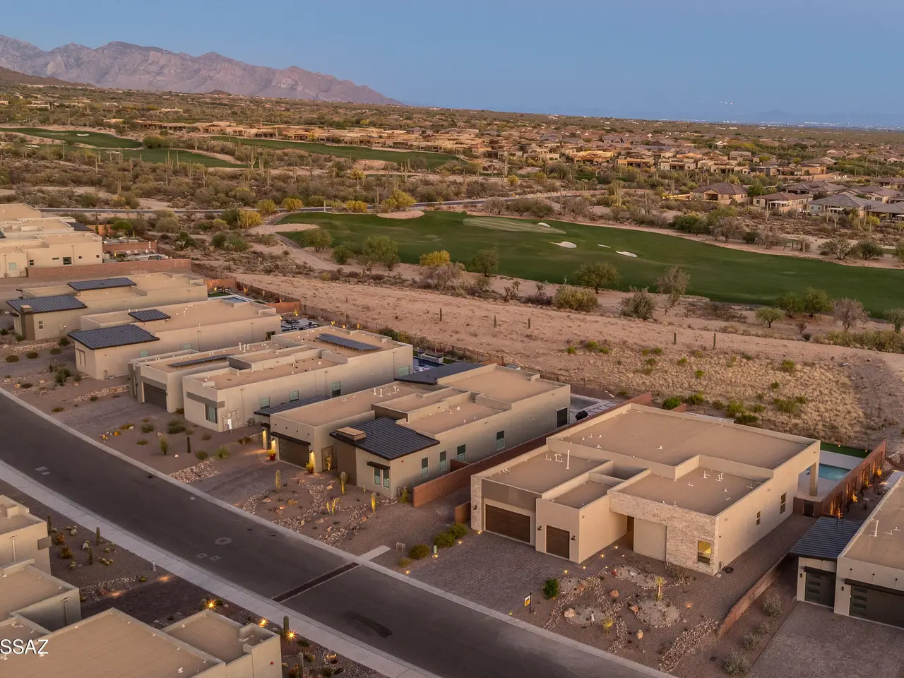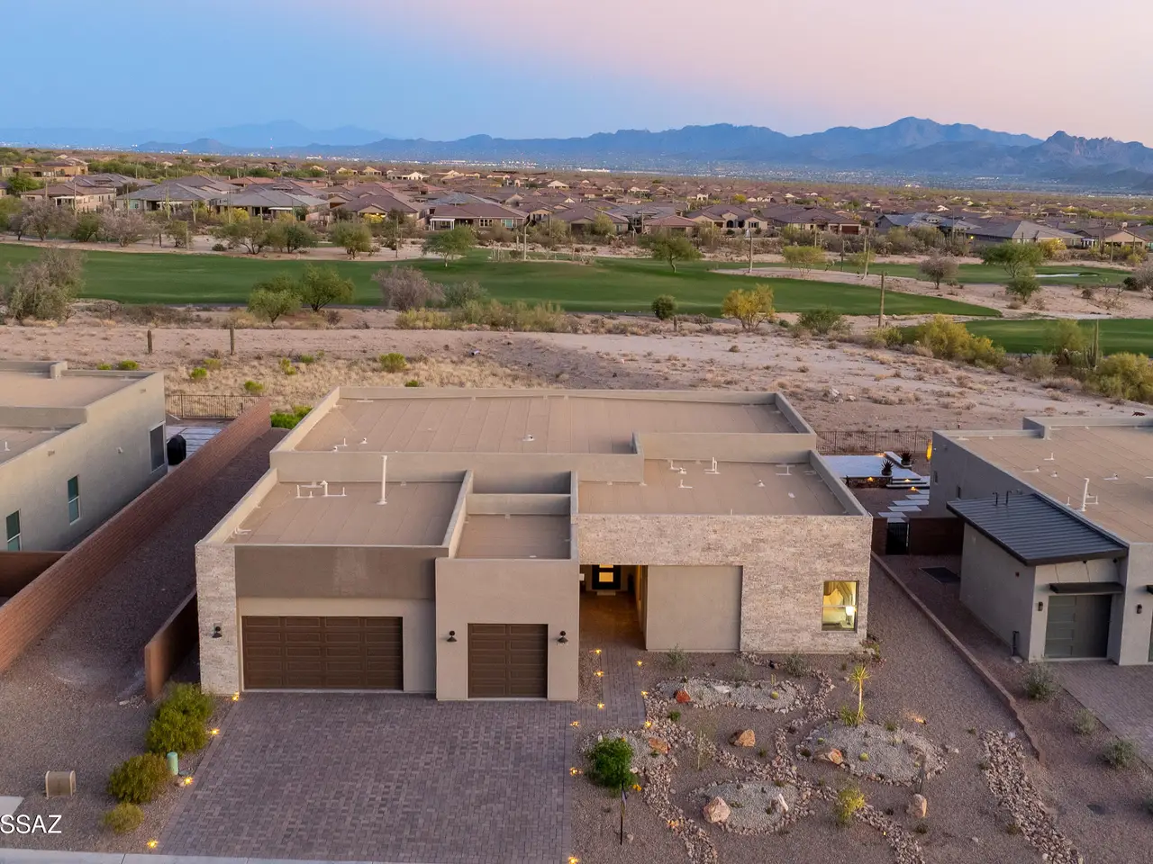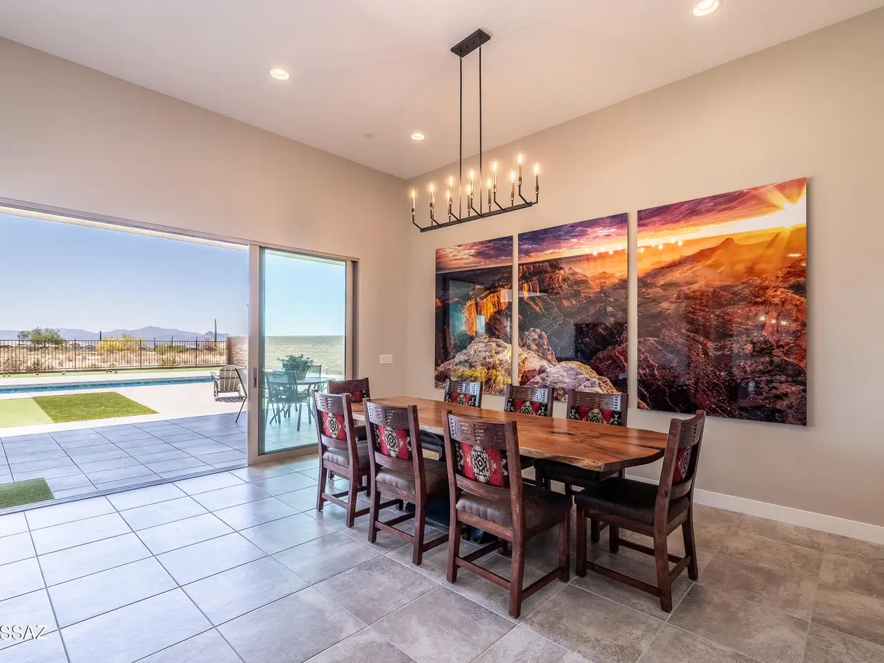 WOW best describes this stunning, relaxing, luxury-living-in-the-desert exquisite home at Fairfield's Boulder Bridge Pass. Owner has spared nothing to make this home the most inviting residence in the neighborhood. One of a kind 60ft heated lap pool let's you swim real laps- real exercise! Plus other casual entertainment: your own putting green & bocce ball court! Elevated spa & modern crushed glass firepit hosts beautiful mountain views. All at your own relaxing resort style home. No homes behind-natural desert buffer then the golf course beyond. Sunrise & sunset skies will mesmerize you at different times of the year. Panoramic mountain views throughout backyard. Deep & spacious under porch area + private (and rare for the subdivision) front courtyard. Great for private relaxation. + This Sycamore model has been modified to become a full 4 bedroom all w/private ensuite bathrooms - & of course an extra powder room. Grand open great room concept living. Spacious kitchen island bar, grand dining area, and additional private den or bonus room. Drop station as you enter the home through garage (which is an oversized 3 car garage w/tankless water heater. Expansive laundry room w/utility sink and mini mud room/hallway. Darkening room tight window shades in all bedrooms. Kitchen is state of the art w/LG stainless appliances. NO carpet in home! Stylish and modern 12'x8ft high corner meet Multi-Slide door in great room/dining. Clean, crisp & new. Home barely lived in. Still has new home feel! Lovely custom front landscape design just installed May 2025. This is a spectacular home - new and absolutely beautiful with basically nothing left to do but move in and enjoy your oasis resort style living in the desert!