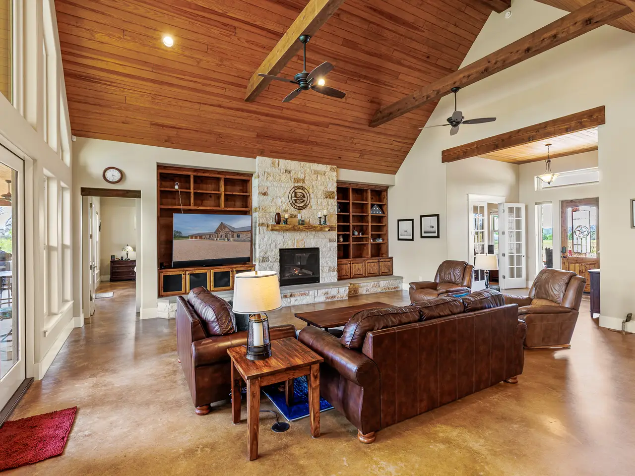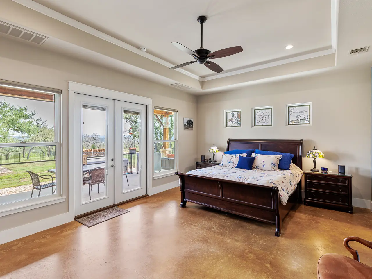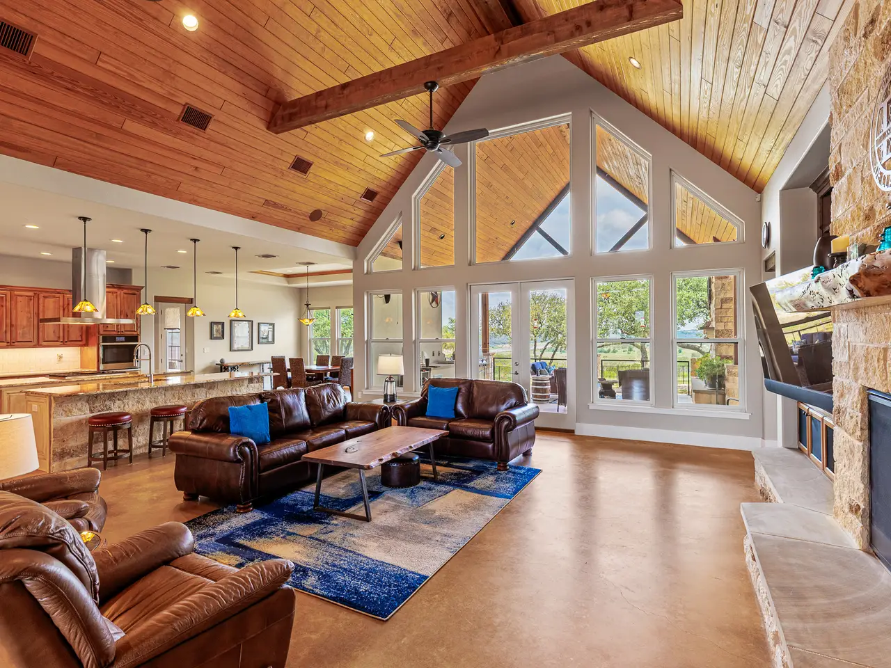 This is Texas! Custom built ranch-style home set on 5 wide open acres, featuring 3880sqft, 3 bedrooms, 3.5 baths & a 3 car attached garage is the perfect blend of spacious living with modern amenities; ideal for family gatherings and outdoor enjoyment. As you enter the property, you can imagine yourself seated on the front porch, rocking to the cool breeze. Step inside and find vaulted tongue-and-groove ceilings and exposed beams in the spacious, open living room. The fireplace and built-in cabinets showcase this stunning space with huge picturesque windows that overlook the covered back patio with a stone fireplace. Enjoy coffee or wine on the expansive back porch, grill steaks with a gourmet outdoor kitchen. Back inside, the chef-style kitchen features granite counter tops, wine refrigerator, ice maker, double islands, plenty of storage, a coffee bar, sleek, stainless steel appliances, all perfect for entertaining. The spacious sun-filled primary suite & ensuite bathroom create a relaxing atmosphere with the same great views. Bonus rooms include a personal gym, an enclosed sunroom, and a home office. The two guests bedrooms are versatile with so much space. Homeowners will love the whole-home generator and the rain water collection system. Want to plant a garden, there®s plenty of room. This home embodies modern luxury in the Texas Hill Country. If you want to live where the cattle roam, wildflowers bloom, enjoy views of Lake Travis, have a neighborhood boat ramp, gated access, then look no further! - 6/9/2025 8:00:49 AM