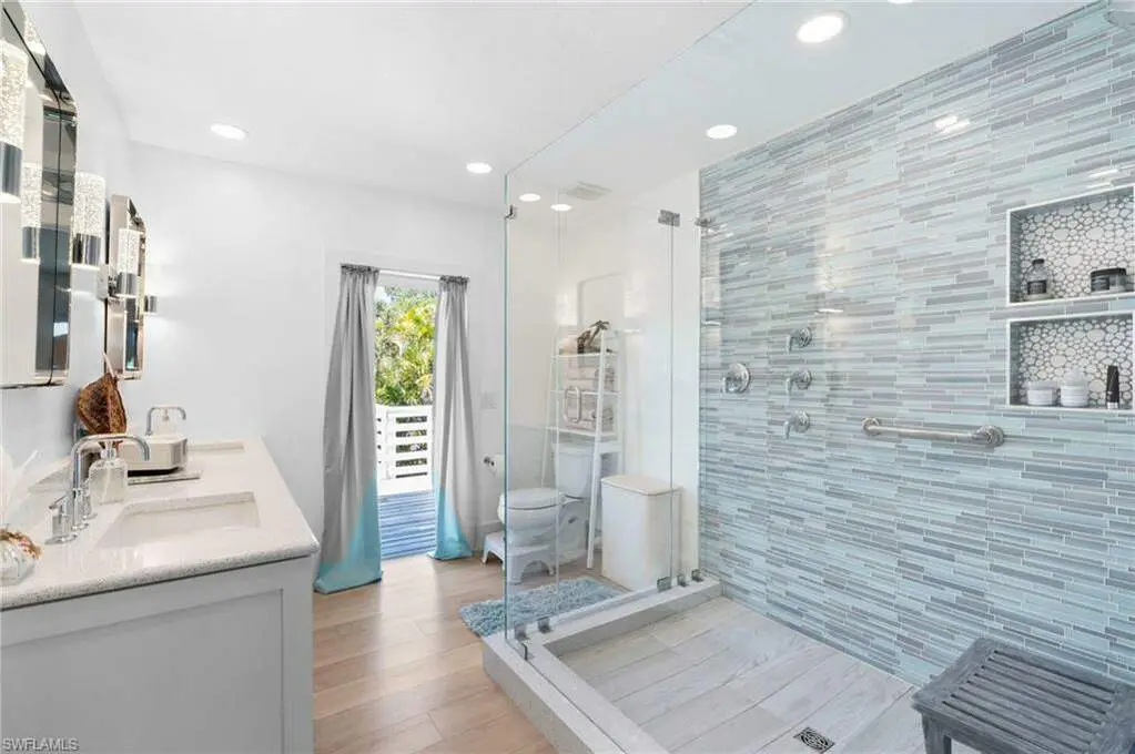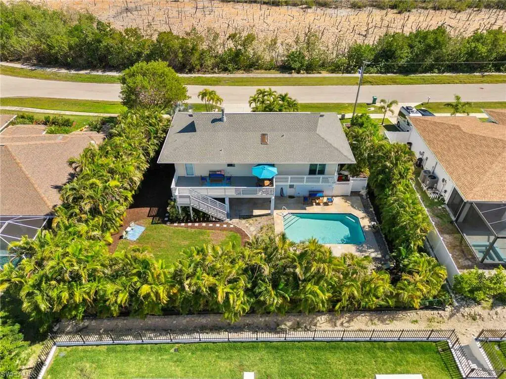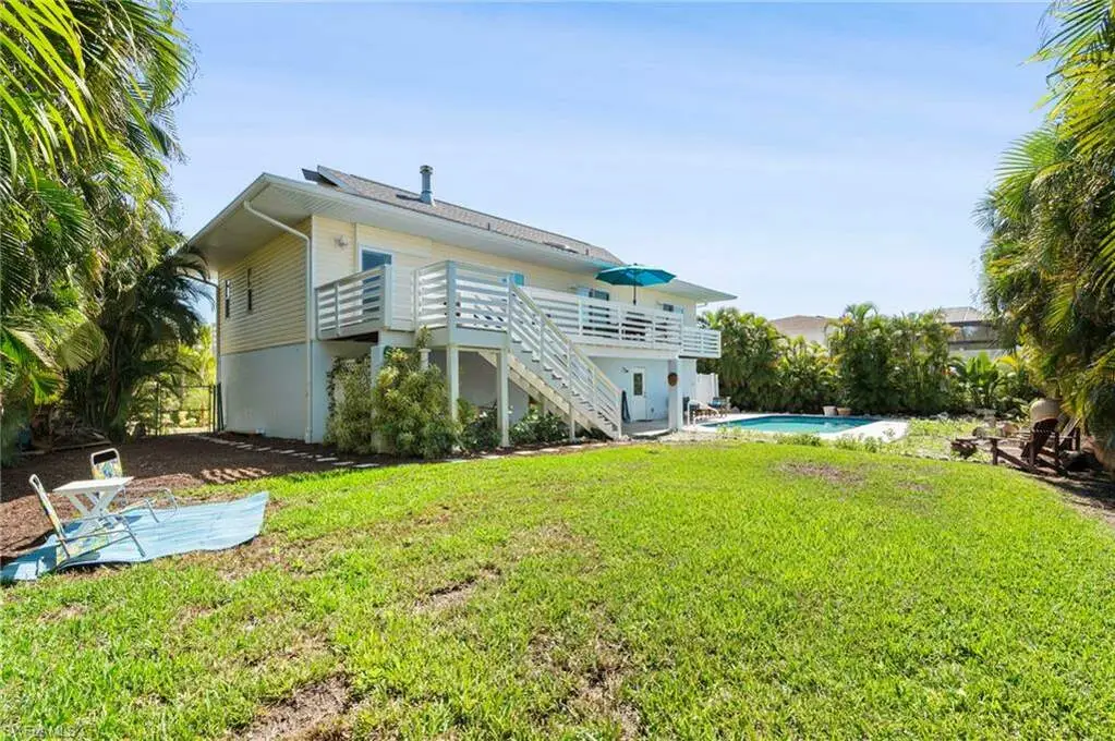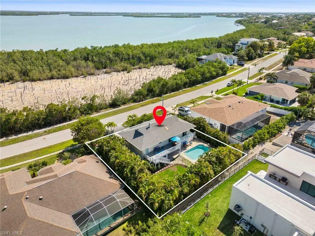 Discover a stunning artistic Key West style home with 1,353 square feet upstairs and 723 square feet downstairs, of non-conforming space, for a total of 2076 feet under air-conditioning. The upper level (1,353 sq. ft.) boasts an open floor plan, vaulted ceilings with skylights, a custom gourmet kitchen, and a cozy fireplace. The primary living space includes 3 bedrooms and 2 luxurious bathrooms, designed for both comfort and style. The lower level (1,313 sq. ft.) offers versatile non-conforming space with separate entrances, perfect for a home office, multipurpose room, and a wheelchair-accessible bathroom with elegant wood-like bone china plank tile flooring. A poolside storage/hobby area adds convenience. Step outside to your private paradise, featuring a large pool and deck with an outdoor shower, a serene pond and waterfall, and a new lush lawn. Enjoy front decks with breathtaking estuary water views at sunrise and a spacious back deck ideal for sunset relaxation. Storage is abundant with a 1,300 sq. ft. climate-controlled attic and spacious garage areas, perfect for all your toys, tools, and golf carts. Nestled in a prime Marco Island location, this home is ideal for those who love boating, kayaking, fishing, and shelling. Just minutes from pristine beaches and outdoor adventures, this unique retreat offers the perfect blend of island charm and modern upgrades. Schedule your private tour today!