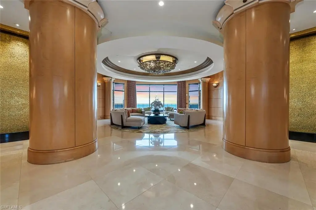 Contemporary elegance abounds in this luxury residence in gated, prestigious Veracruz in Cape Marco, one of the newest beachfront buildings in Southwest Florida (built 2005), boasting the finest in beachfront living coupled with expansive, stunning views from Marco Island's pristine white sandy beach, the turquoise waters of the Gulf of Mexico, to the unspoiled beauty of the Ten Thousand Islands. Enjoy with year-round sunrises and sunsets. Upon exit from your private, elevator lobby, you are captivated by the fine finishes, architectural details, and the exquisite views. This rarely available unit lives like a single-family home boasting a modified 4 bed, 4 bath, multiple balconies, 10"' ceilings and nearly 4,000 ft.¦ under air. High-end finishes can be found throughout showcasing marble flooring, extensive built-in cabinetry, detailed tile work, elegant fixtures and a chef's kitchen with dual wall ovens and a six burner gas cooktop. World class amenities include guest suites, state-of-the art exercise facility overlooking the beach, theatre room, tennis courts, two pools, social rooms, business center, and private beach access. Experience true Florida resort style living in island paradise!