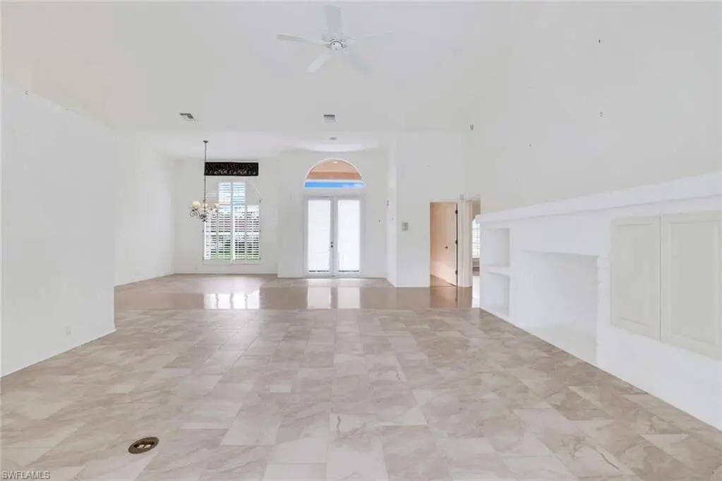 An exceptional waterfront opportunity on Marco Island's desirable south end! This property at 742 Orchid Court offers quick, direct Gulf access - no bridges - and features a private U-shaped dock with a 12,000 lb. boat lift, making it a true boater's paradise. The existing home features a spacious great room layout with vaulted ceilings, hardwood flooring, and a Corian kitchen with two pantries and a bright morning room overlooking the pool and canal. There is a generous primary suite, plus a den/study with custom built-in shelving offering endless possibilities for transformation. Outside, enjoy the screen-enclosed lap pool and spa, surrounded by lush tropical landscaping and serene water views. This property presents an ideal renovation or rebuild opportunity in a prime island location, where properties with direct Gulf access and existing dockage are becoming increasingly rare. Whether you envision a complete remodel or a brand-new custom home, this address provides the foundation for your perfect Marco Island waterfront retreat.