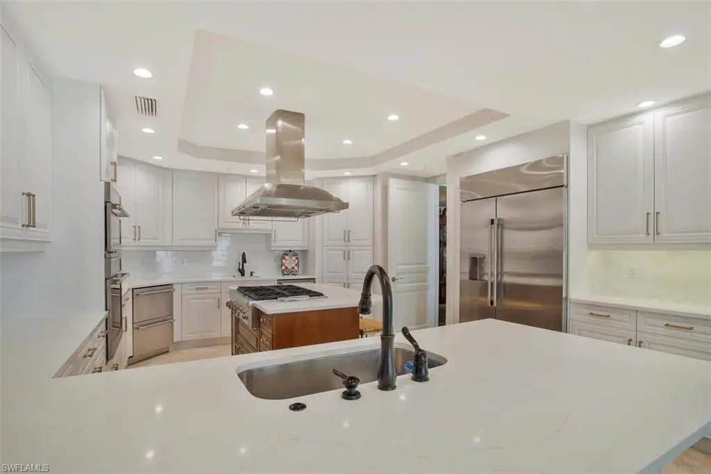 This stunning 3-bedroom + den, 3 (1) -bathroom beachfront home in Belize, located on Marco Island's southwest tip within Cape Marco, offers magnificent, unobstructed views of the Gulf of Mexico & Ten Thousand Islands and year-round sunsets. With a private elevator leading to a grand foyer, a luxurious open great room with expansive windows, and elegant details throughout, this residence is perfect for enjoying the water views from its spacious balconies on the 11th floor. No expense spared for the updated, gourmet kitchen with marble backsplash, quartz countertops, white cabinets, gas cooktop, refrigerator and freezer drawers, pull out drawers in cabinets, and quality stainless steel appliances. The den includes built-ins, beverage refrigerator, and custom pull-out drawers. The master suite features Gulf views, two walk-in closets, a luxurious soaking tub, and dual sinks, while the guest rooms offer privacy with a balcony overlooking the beach and Gulf. Residents can indulge in resort-style amenities such as a Gulf-front pool, spa, social room, fitness center, guest suites and theater. With two under-building parking spaces and easy elevator access to a private lobby, Belize in Cape Marco offers unparalleled Florida resort-style living in a tropical paradise!
