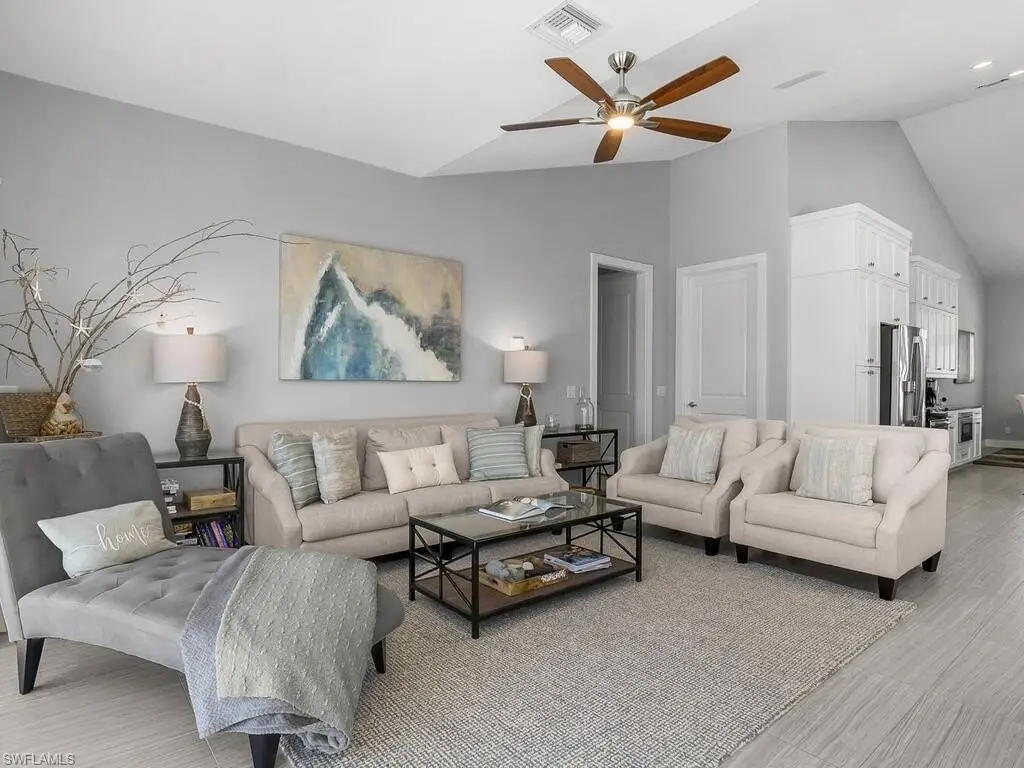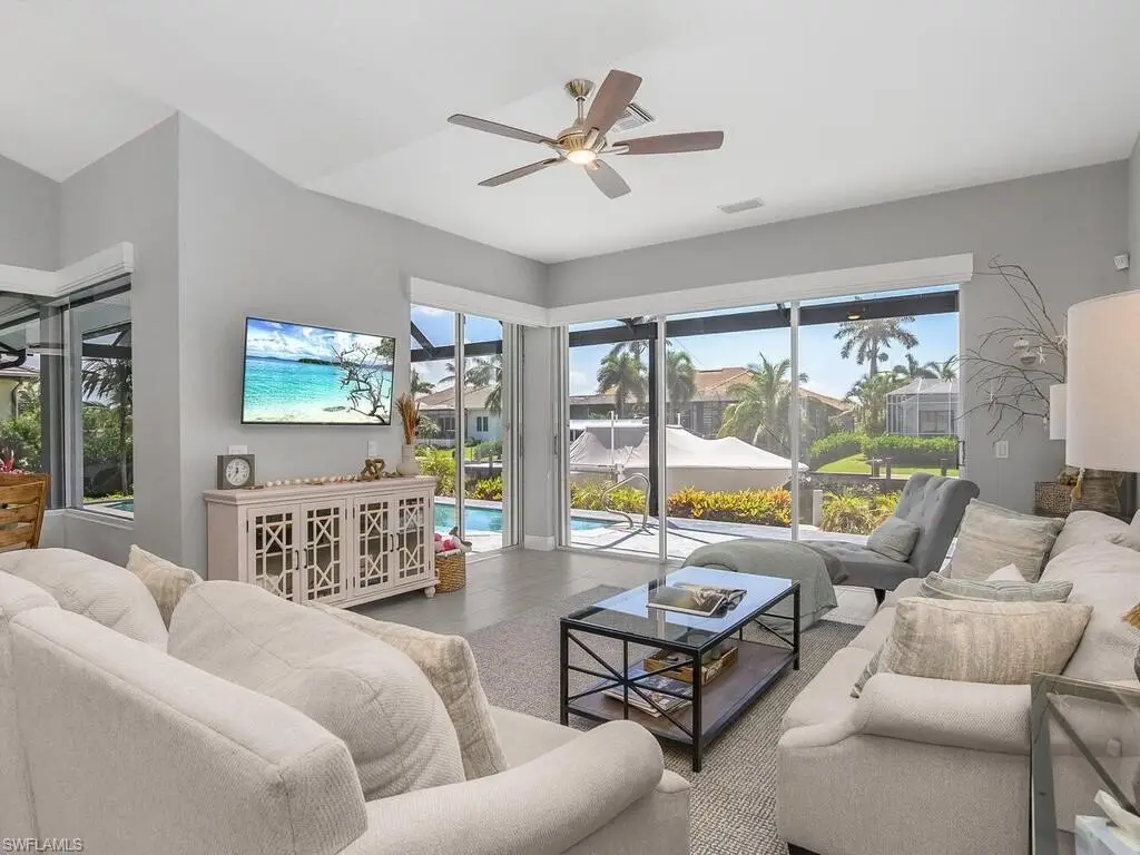 "UNIQUE OPPORTUNITY" This is more than just a home, it's an invitation to experience the ultimate island lifestyle in a thriving, upscale neighborhood. This water front home located on an oversized lot in the Prestigious Tigertail neighborhood on Marco Island is deep water direct that allows for a larger vessel. Where you can walk, bike or boat to one of our fine shops and restaurants. This elegant home offers a neutral pallet with 3 bedroom 2 baths including an office. Enjoy spacious open split floor plan with high ceilings, large rooms including a family room, sitting room, dining room, breakfast nook, large stone island, fully equipped kitchen, and Bahama shutters. The primary suite offers tray ceilings, large stone shower, two closets and two vanities. The back of the house is a wall of windows that overlook the saltwater lap pool with panoramic screen. The spacious pool deck is ready for entertaining with a firepit table, sectional and dining table. You can lounge on the deck below alongside the dock with two boat slips with a 2018 32’ Tidewater with twin 300's, and a 2018 22’ Seahunt with 350hp. Very well maintained property. The flat tile roof and stylish pavers adorn the driveway that take you to the large garage with ample storage, high ceilings, 3 bays with a 2021 Ford Bronco, yellow and a 2023 Grand Cherokee, white sitting comfortably on the epoxy floor. Professionally decorated, lush landscape, hurricane roll downs, generator on a transfer switch, security system and offered turn key with two boats and two SUVs, this is a fantastic opportunity! A ready-made island lifestyle in a neighborhood with new elegant modern estate homes. Marco Island is an active lifestyle. Famous for our crescent beach with sugar white sand, easy boating, great golf, tennis, cuisine from around the world and the best sunsets on the planet. This truly is the "ULTIMATE PACKAGE".