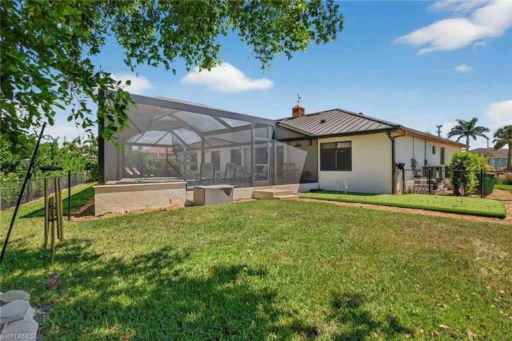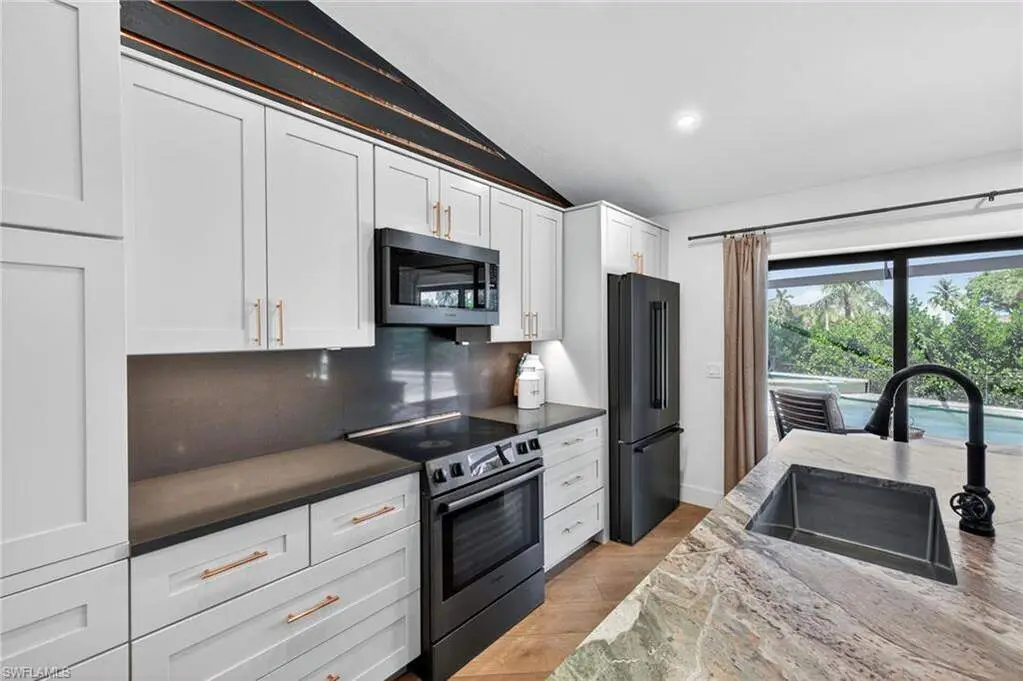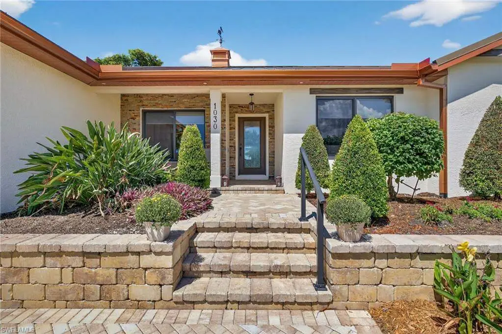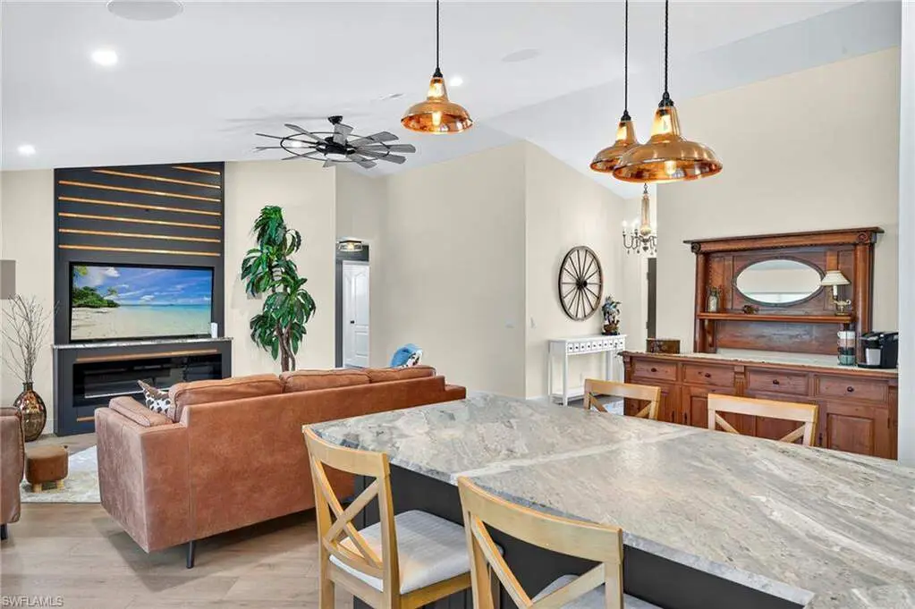 Welcome to 1030 Hartley Street in desirable Marco Island location. This 4 bedroom/3 bathroom single family house with a modern farmhouse aesthetic has been completely redesigned and renovated in 2023 ideal for today's living. Enter into a welcoming foyer to an open-concept living space featuring wide plank light oak flooring and vaulted ceilings. Spacious living room features a linear fireplace and contemporary accent wall. Wall of glass opens to fabulous outdoor living space seamlessly blending indoor/outdoor living. Large pool with sunshelf and spa, putting green plus a private grassy rear yard ideal for dog lovers and play. A true chef's eat-in kitchen features shaker cabinetry, slate finish stainless steel appliances, contemporary backsplash and oversized island ideal for daily dining and entertaining. Master suite oasis with spacious bedroom, spa-like master bathroom and a walk-in closet. 3 guest bedrooms, 2 guest bathrooms plus an additional bedroom currently used as a home office. Oversized 2-car garage could accommodate up to 4 vehicles with an added lift or RV. Desirable location mere minutes from beaches, shopping and dining. Totally renovated inside and out in 2023 including new facade, new garage door, new roof, new impact-resistant windows and doors, new HVAC system, new hot water heater, new plumbing and electric, new pool, spa and lanai, new landscaping, new irrigation, new paver driveway, as well as new interior flooring, new surround sound, new kitchen and new bathrooms this is a truly exceptional home with no expense spared. Turnkey.