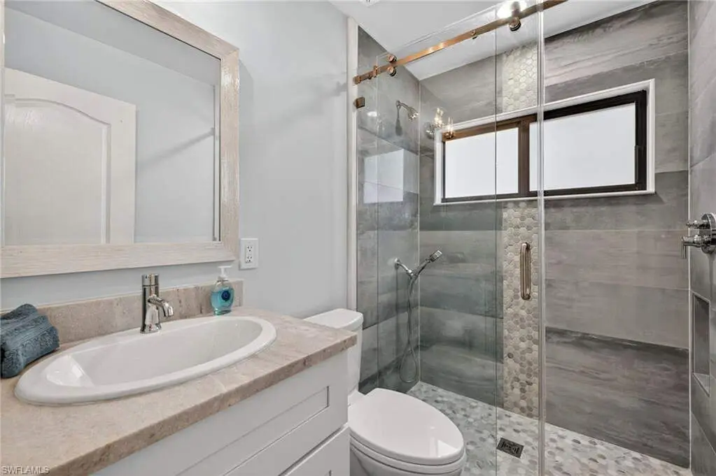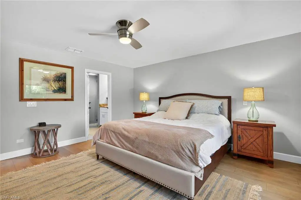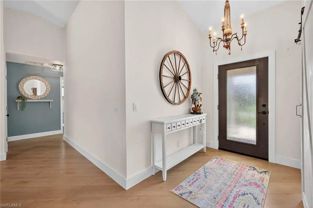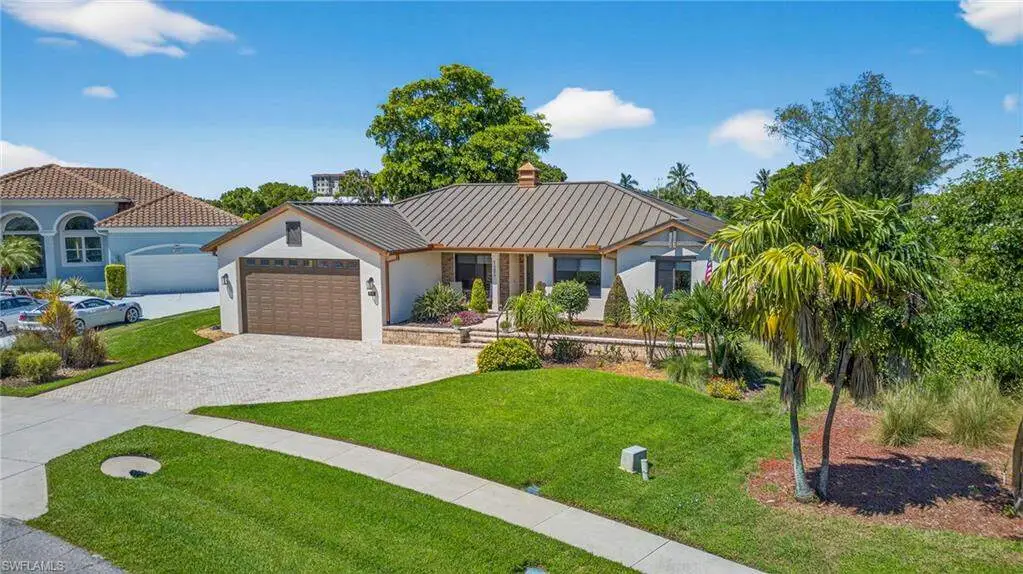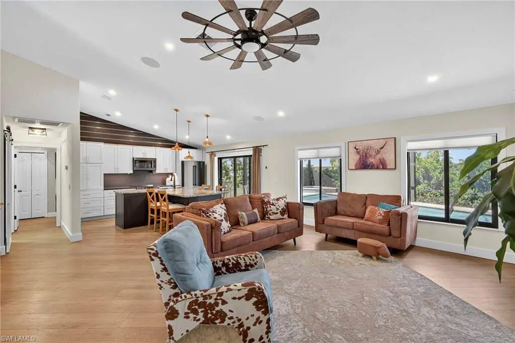 Welcome to 1030 Hartley Street in desirable Marco Island location. This 4 bedroom/3 bathroom single family house with a modern farmhouse aesthetic has been completely redesigned and renovated in 2023 ideal for today's living. Enter into a welcoming foyer to an open-concept living space featuring wide plank light oak flooring and vaulted ceilings. Spacious living room features a linear fireplace and contemporary accent wall. Wall of glass opens to fabulous outdoor living space seamlessly blending indoor/outdoor living. Large pool with sunshelf and spa, putting green plus a private grassy rear yard ideal for dog lovers and play. A true chef's eat-in kitchen features shaker cabinetry, slate finish stainless steel appliances, contemporary backsplash and oversized island ideal for daily dining and entertaining. Master suite oasis with spacious bedroom, spa-like master bathroom and a walk-in closet. 3 guest bedrooms, 2 guest bathrooms plus an additional bedroom currently used as a home office. Oversized 2-car garage could accommodate up to 4 vehicles with an added lift or RV. Desirable location mere minutes from beaches, shopping and dining. Totally renovated inside and out in 2023 including new facade, new garage door, new roof, new impact-resistant windows and doors, new HVAC system, new hot water heater, new plumbing and electric, new pool, spa and lanai, new landscaping, new irrigation, new paver driveway, as well as new interior flooring, new surround sound, new kitchen and new bathrooms this is a truly exceptional home with no expense spared. Turnkey.