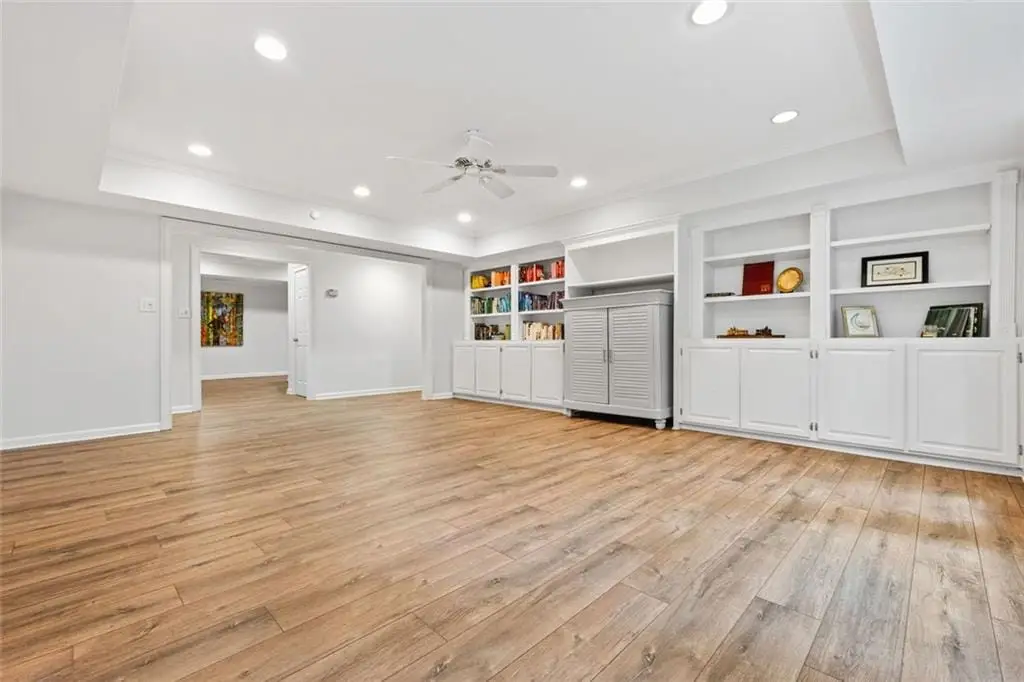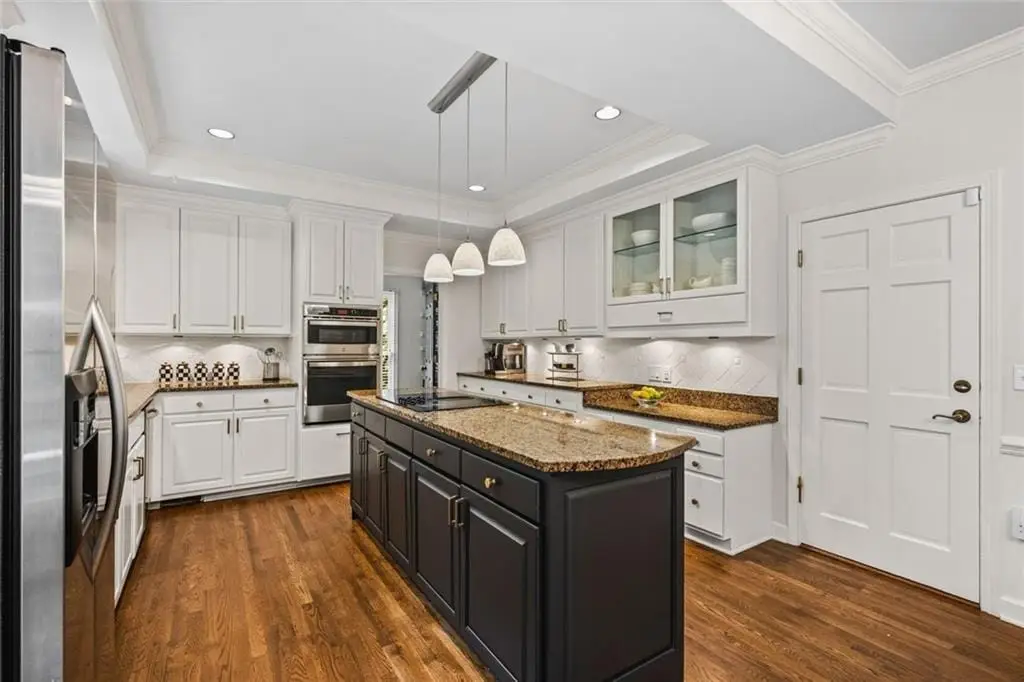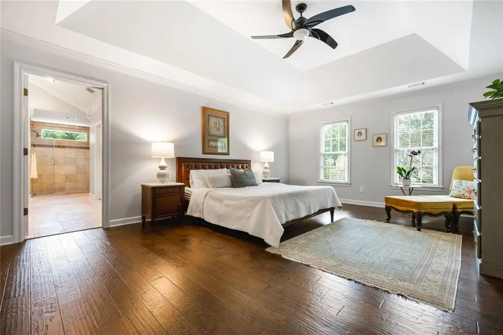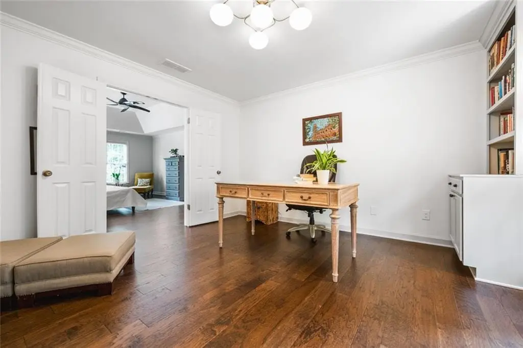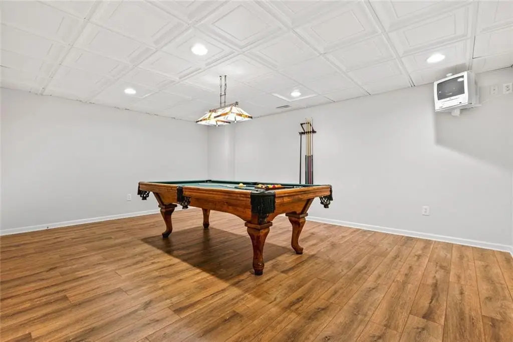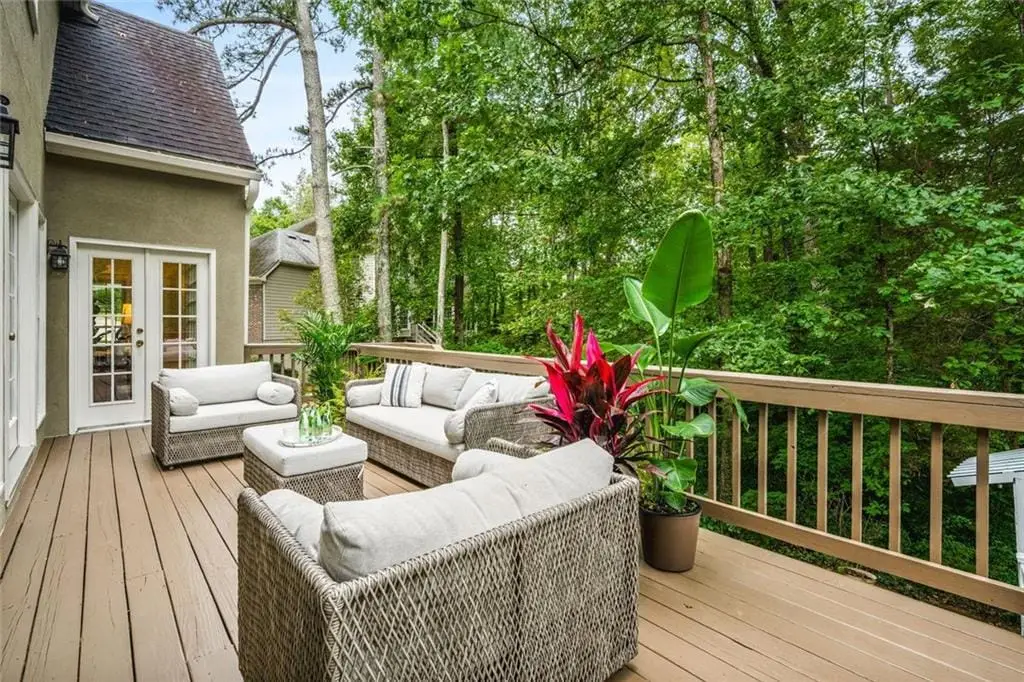 Exceptional North-East Facing Home in Hampton Woods - East Cobb's Premier Swim & Tennis Community Discover this beautifully maintained hardcoat stucco home in Hampton Woods, one of East Cobbs most beloved neighborhoods known for its active swim and tennis amenities, friendly neighbors, and top-rated schools. Elegant & Inviting Living Spaces- Step into a grand two-story foyer that opens to a breathtaking great room with soaring cathedral ceilings, custom built-in bookshelves and cabinetry, a cozy fireplace, and dramatic two-story window that bathe the space in natural light and offer tranquil views of the trees beyond. Designed for Entertaining, The formal dining room seats up to 12 guests with ease, while a separate formal living area adds sophistication to your entry. The open floorplan flows seamlessly from the family room to the breakfast area and kitchen, connected by elegant French doors. The kitchen features white cabinetry, granite countertops, and new built-in oven and microwave. French doors from the breakfast area lead to a spacious deck - perfect for hosting gatherings or enjoying quiet mornings outdoors. Private Owners Retreat- The owner’s suite is a true sanctuary, offering a large bedroom with a separate sitting room or office drenched in natural light. The resort-style bathroom includes a soaking tub, separate shower, dual vanities, and two toilets for added convenience. Generously sized secondary bedrooms feature updated bathrooms and ample closet space, ideal for family or guests. Large bedroom and bathroom on main for guests. Versatile finished terrace level offers a large open space perfect for a media or family room, complete with built-in cabinetry. Additional rooms include a recreation/craft room, billiard room, and a private bedroom with full bath - ideal for guests or multi-generational living. The perfect Outdoor Oasis: Step outside to a level backyard with a grassy play area, stone firepit, and a charming playhouse - a peaceful retreat for all ages. This Prime Location of Hampton Woods known for its community events, welcoming atmosphere, and proximity to nature trails, shopping, dining, and major highways including GA-400, I-75, and I-285. Minutes from Sandy Springs, Roswell, and located in some of Georgia’s top-ranked schools, this home offers the perfect blend of luxury, lifestyle, and location.(P.S. There is a secret storage room accessed from the mirrored closet in the terrace level bedroom-not to be missed!)