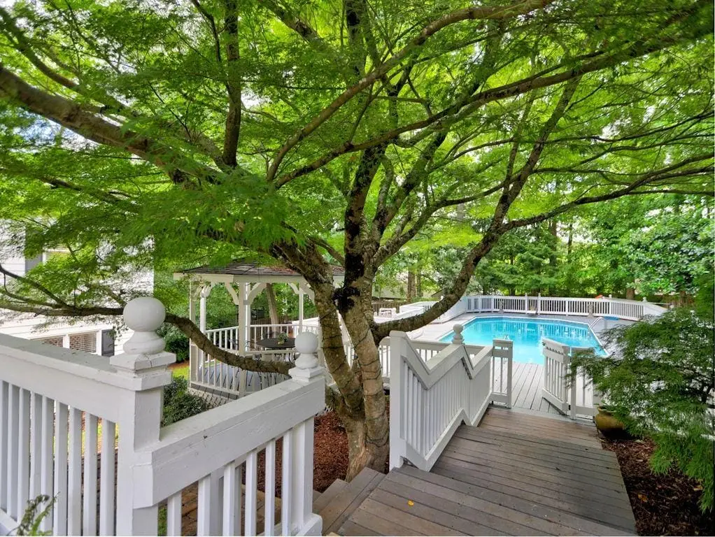 Welcome home to this gracious colonial home that captures the essence of timeless elegance with abundant space for family & friends. Situated on an almost 1/2 acre lot, the lovely flat front yard beckons you to come inside & the private backyard with refreshing pool is ideal for entertaining or relaxation. This 7 bedroom, 6.5 bath home is a perfect fit for a large /multi generational families. The expansive main level primary suite addition/wing which was completed in 1991, offers soaring trey ceilings, marble fireplace, & French door access to the peaceful backyard, deck & pool area. The spacious ensuite bath features dual walk in closets, dual vanities, separate large shower & jetted garden tub.The thoughtfully designed kitchen with cherry cabinetry, granite countertops, double pantry storage, stainless appliances & sunny breakfast bay nook offers the perfect spot for casual dining. The comfortable dining room can accommodate festive gatherings or serve as the perfect home office space. The generously sized family room & office/living room offer additional space for everyone in your family too. In addition, the current living room/office can easily be converted to become the main floor dining room. The second floor bedrooms are generously sized. The original primary bedroom offers a private bath & walk in closet. 3 additional bedrooms, 1 full bath, bonus room/playroom & laundry area closet finish out the second story. A back stairway leads to the main level & gleaming hardwood floors run throughout the main & second level.Fully finished daylight terrace level wing truly expands your living space & offers 2 bedrooms, 3 bathrooms, second kitchen/bar area with stackable laundry cabinet, exercise room, 2 patios and loads of storage space.Within walking to many popular amenities- The Roswell Boardwalk, Chattahoochee River, Chattahoochee Nature Center, Azalea Park & Gold Branch Park Trailhead.Less than 3 miles to historic Roswell/Canton Street entertainment district & less than 2 miles to The Avenue, multiple restaurants, shops & grocery stores. Jacksons Creek is one of East Cobb's favorite neighborhoods, offering an active HOA, swim, tennis, pickleball, clubhouse and a serene neighborhood lake for canoeing /kayaking. Top rated schools of excellence- Timber Ridge, Dickerson, Walton High. Hurry to make this home yours!