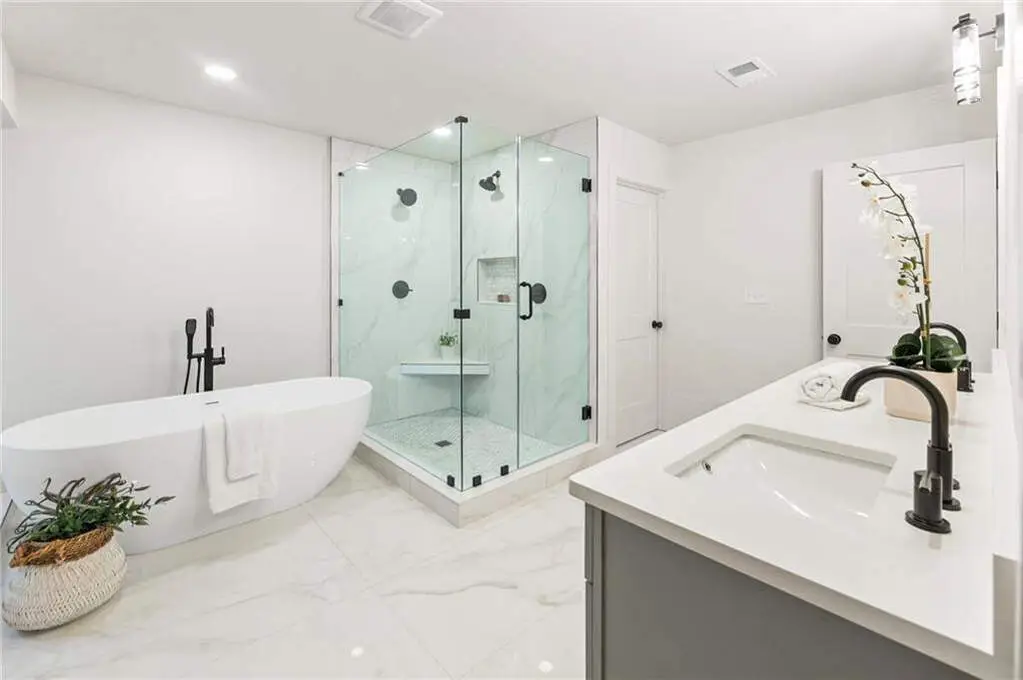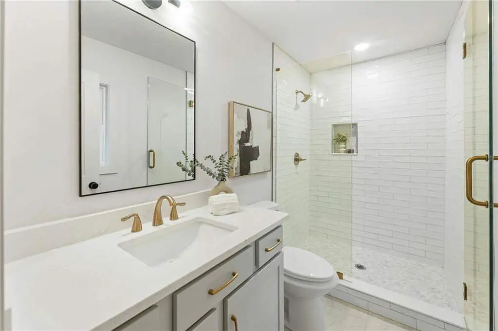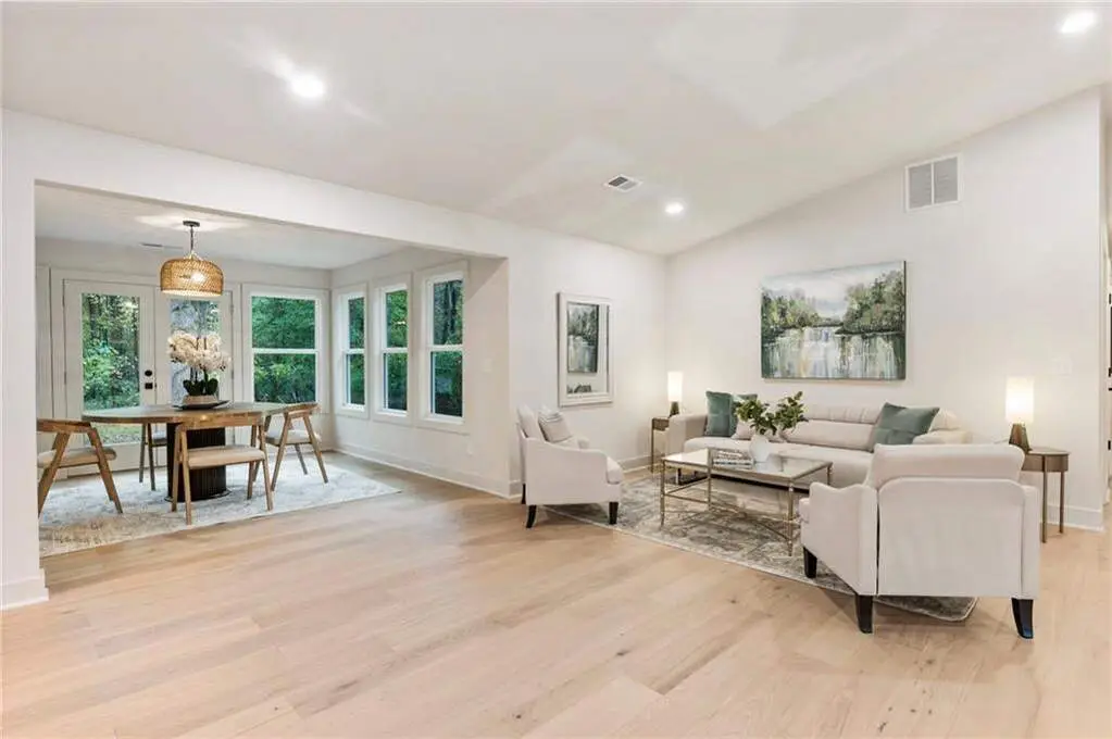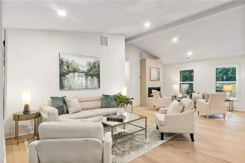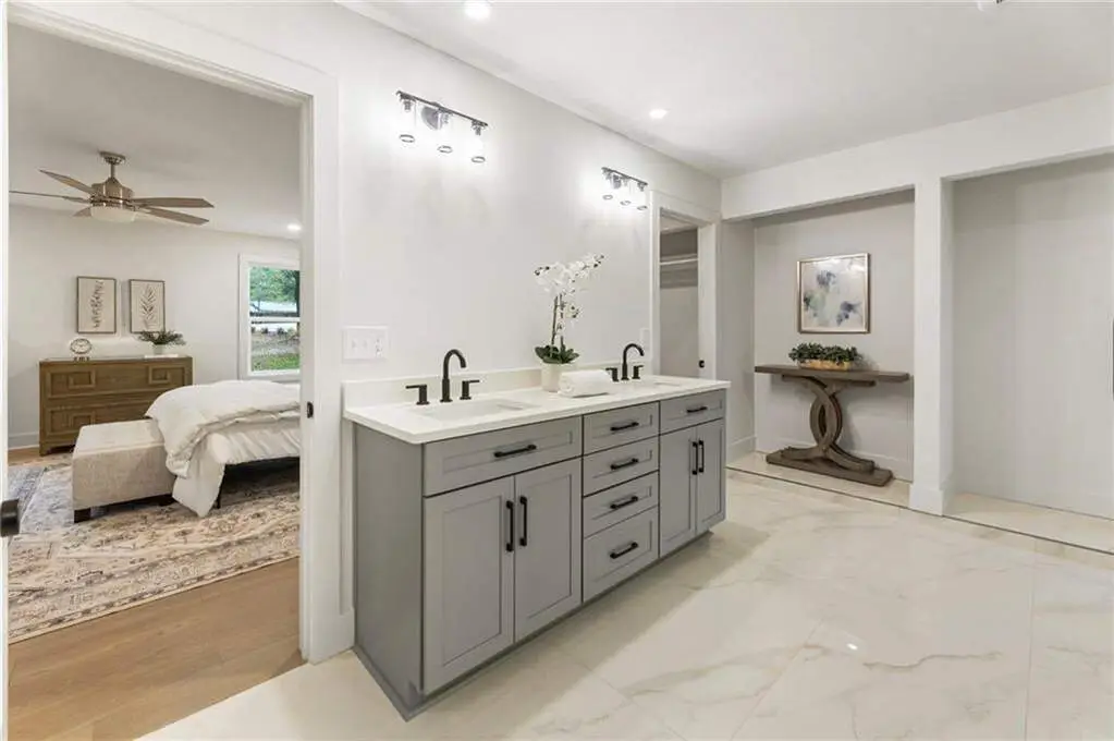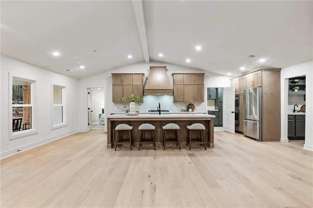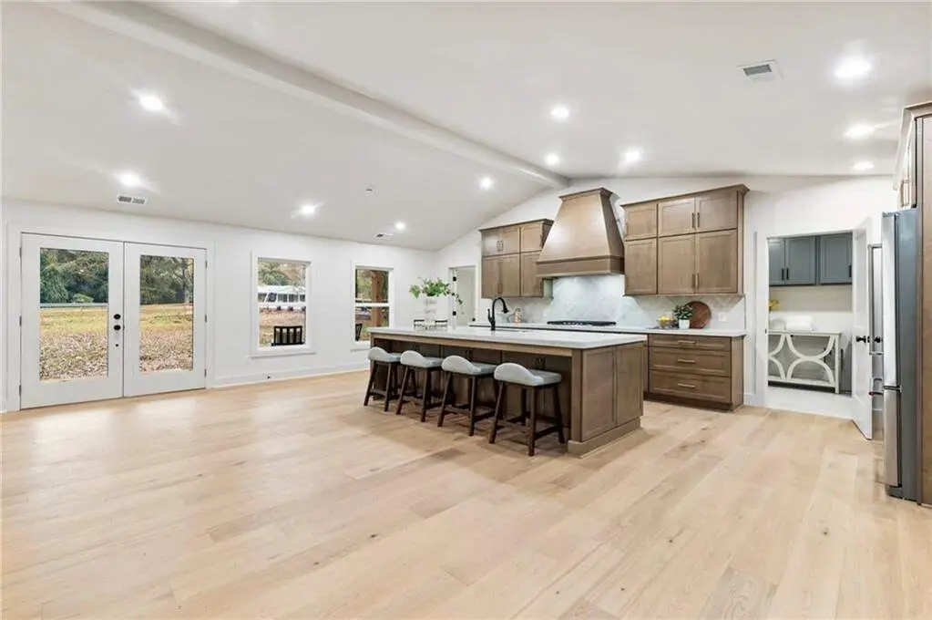 This stunning Marietta home in the Walton HS district has been completely rebuilt from the ground up - and the result is spectacular. Designed primarily as a spacious ranch, it offers four bedrooms and four full baths on the main level, including a luxurious primary suite. A fabulous in-law suite above the two-car garage provides over 500 square feet of space for guests, a home office, or a private retreat with a kitchenette, living space and full bath. The open-concept kitchen of the main home is a showstopper, featuring beautiful quartz countertops, soft-close cabinetry, double ovens, a 5-burner gas cooktop with vent hood, French-door refrigerator, and built-in microwave and dishwasher. Entertaining is effortless with a large scullery/pantry that includes a second sink and dishwasher. The great room offers flexible space for living, dining, and entertaining, all filled with abundant natural light. The primary suite features double vanities, dual shower heads, ample storage and a spacious walk-in closet. Throughout the home, you'll find wide-plank white oak hardwood flooring and designer tile in all baths and the laundry - no carpet anywhere. Each bedroom offers generous space and large closets, with en-suite or nearby bath access. Set on a 1.3+ acre lot, the property provides both privacy and potential, with room to add a pool or outdoor recreation area. Located close to major commuter routes and the top-rated Walton High School, this home truly has it all.