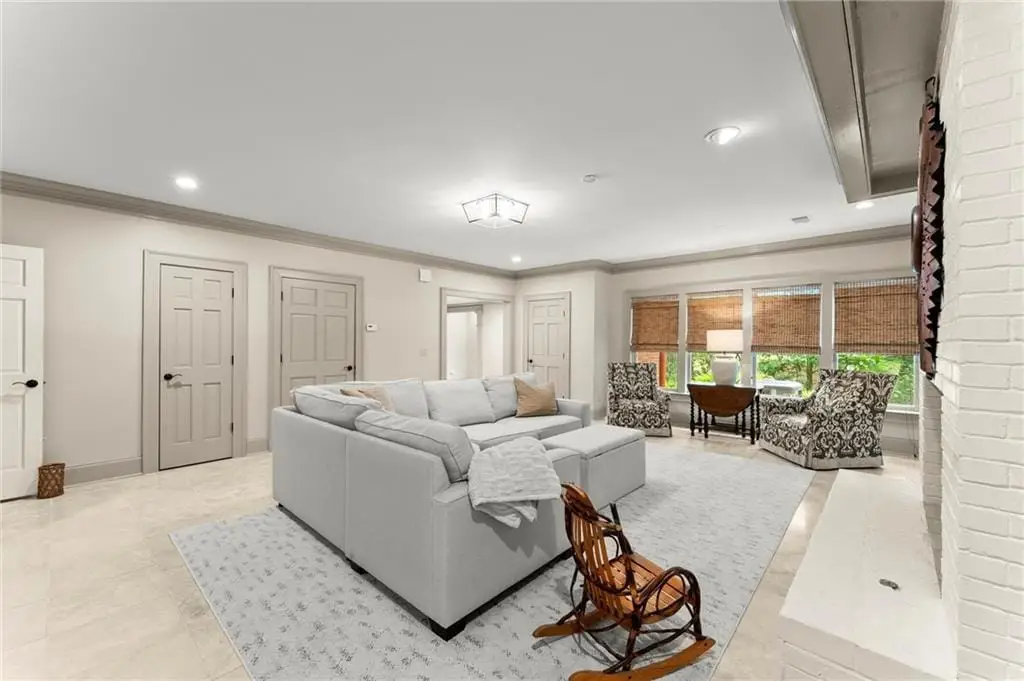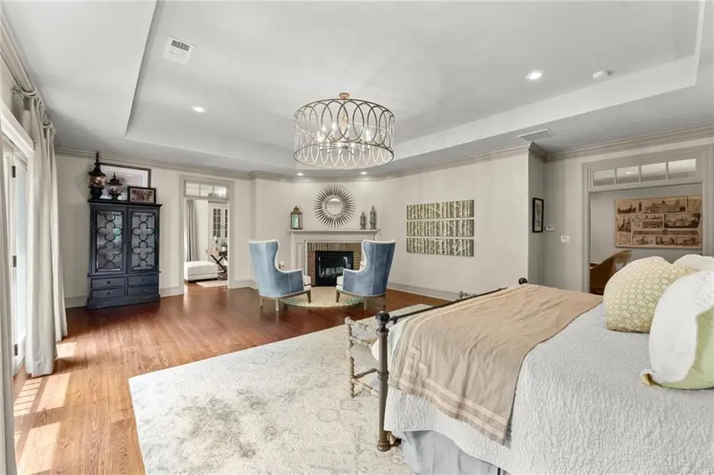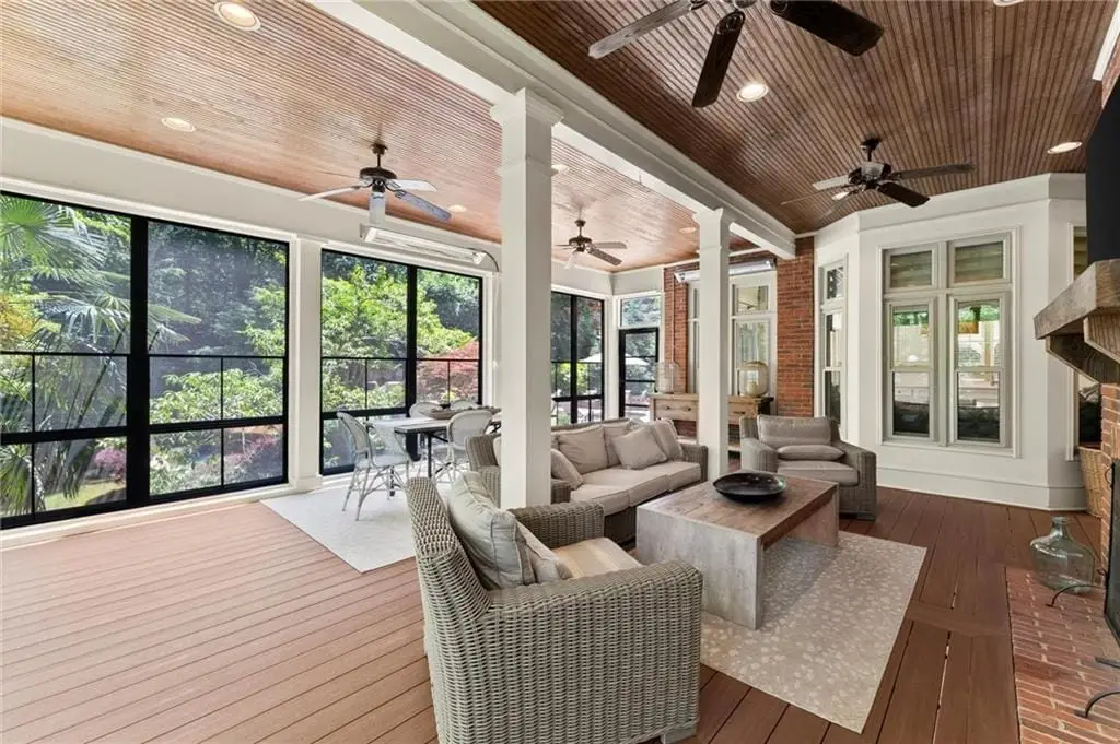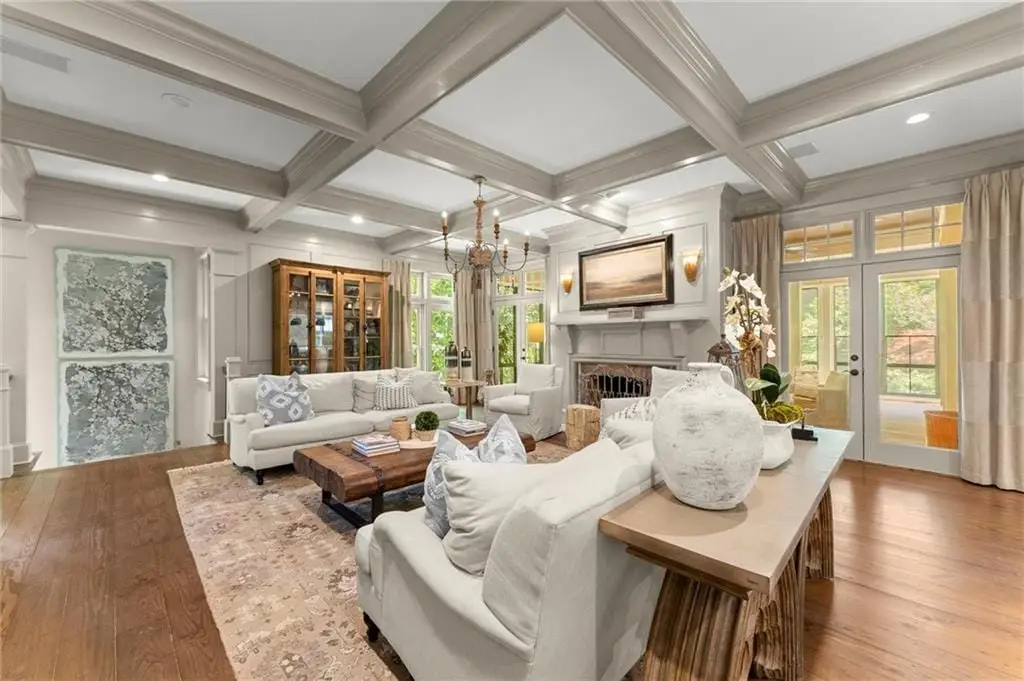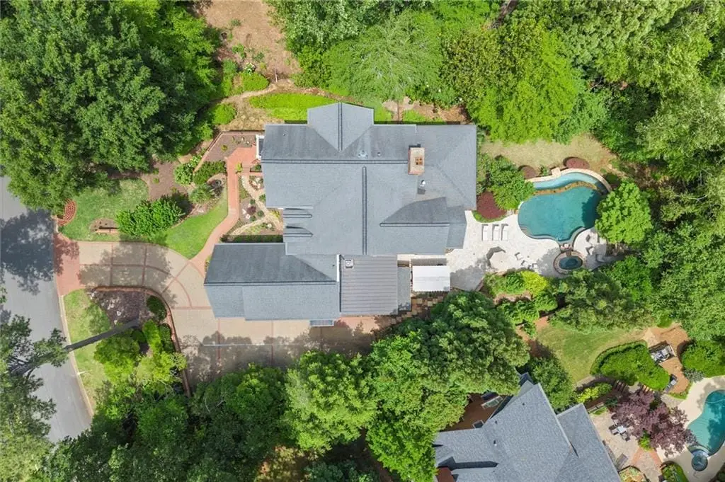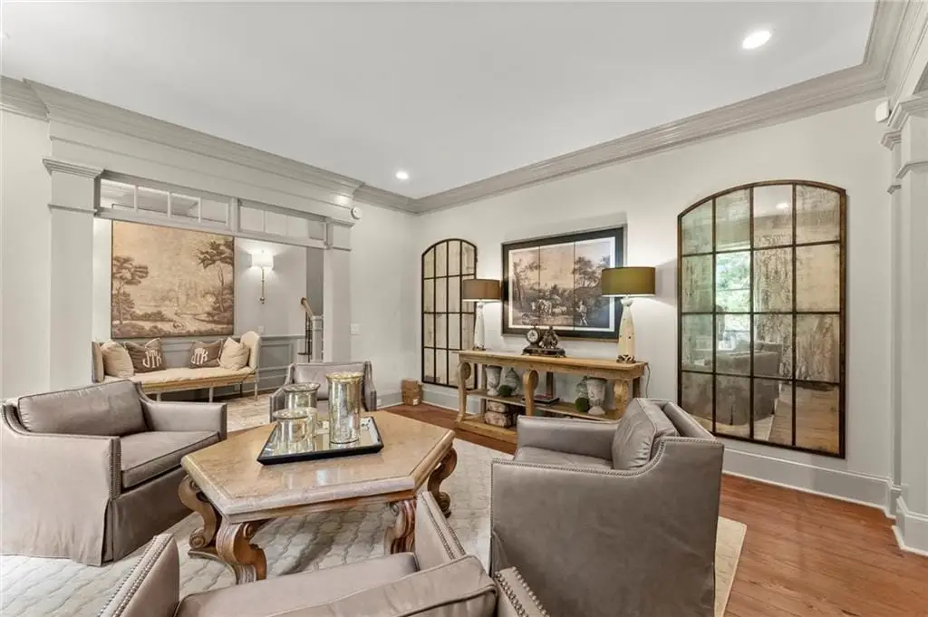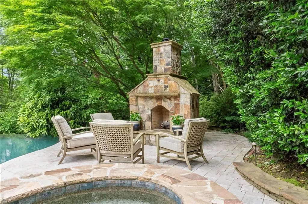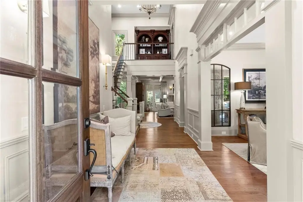 Exceptional home in Atlanta Country Club on a quiet cul-de-sac is enhanced with refined architectural details such as window transoms, privacy alcoves, high profile molding, stair landings and much more. The professionally designed and renovated residence offers a cohesive and timeless transitional style throughout making it turnkey ready. Upon entry, a two-story foyer will greet you with a truly elegant staircase and dramatic windows. A formal living room is adjacent to the entryway. A spacious but warm family room with coffered ceilings opens seamlessly to a sophisticated kitchen with marble countertops, Sub-Zero refrigerator, Thermador gas range, KitchenAid appliances, warming drawer, prep sink and banquet seating. A butlers pantry with wine fridge and glass cabinetry adds elegance while connecting the kitchen and dining room which easily accommodates 12 guests. The main level also offers a chic powder room with alcove entrance as well as a full bath with hidden shower, two large storage closets, and an expansive laundry room with built-ins and a desk area. A portico-covered private back entry leads into an access hallway with a mudroom and connects to the main laundry room. Upstairs the newly expanded Primary Suite is entered through a private sitting room with a fireplace. The oversized bedroom showcases a wall of windows with a stunning view of the pool and a fireplace. A true dressing room houses four custom, built-in armoires. The suite features His & Her walk-in closets. The fresh, all white primary bath includes a steam shower, heated floors, dual vanities, water closet and heated towel rack. Additionally, two more bedrooms with walk in closets are connected by a true Jack and Jill bath. A third secondary bedroom has an ensuite bath with a walk-in closet. A fourth suite style bedroom is accessed by a private staircase, ensuite bath and walk in closet. This large suite would be ideal for a nanny, guest or other. A secondary laundry room is located upstairs for convenience. A sixth bedroom with ensuite bath is on the lower level. The fully finished basement opens to a sunny spacious living area with a fireplace and leads to a fully equipped kitchen with double ovens, dishwasher, refrigerator and granite bar. Additionally there is a soundproof media room, weight room with sauna and a powder room. Enjoy year-round outdoor living on the covered porch featuring new Eze-Breeze windows, infrared heaters, and a cozy fireplace. The walk-out terrace level showcases an infinity-edge pool, brand-new paver pool deck (2024), hot tub with waterfall, outdoor kitchen with grill, sink, refrigerator, granite counters, bar seating, and a freestanding fireplace plus ample yard space beyond. Three-car garage with epoxy flooring. Ample parking in the driveway. This is luxury living at its finest in one of Atlanta’s most prestigious communities.