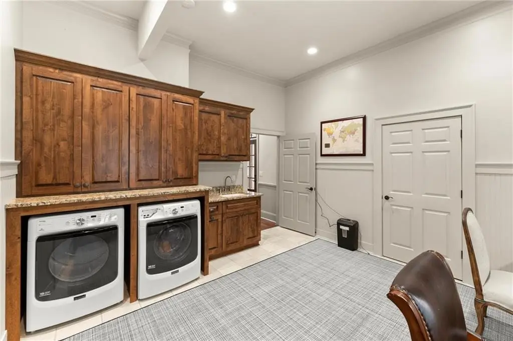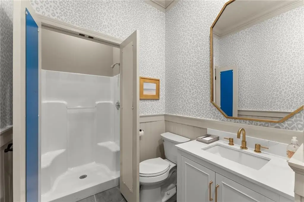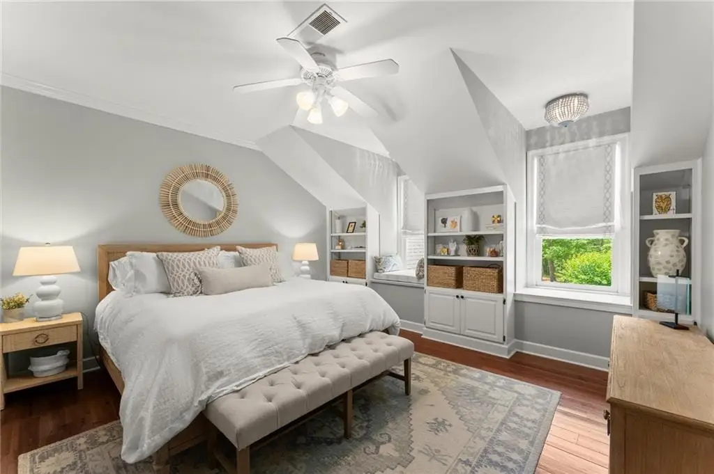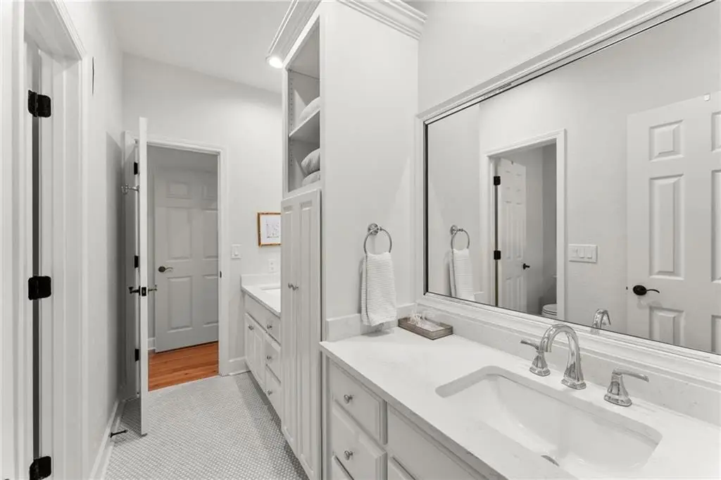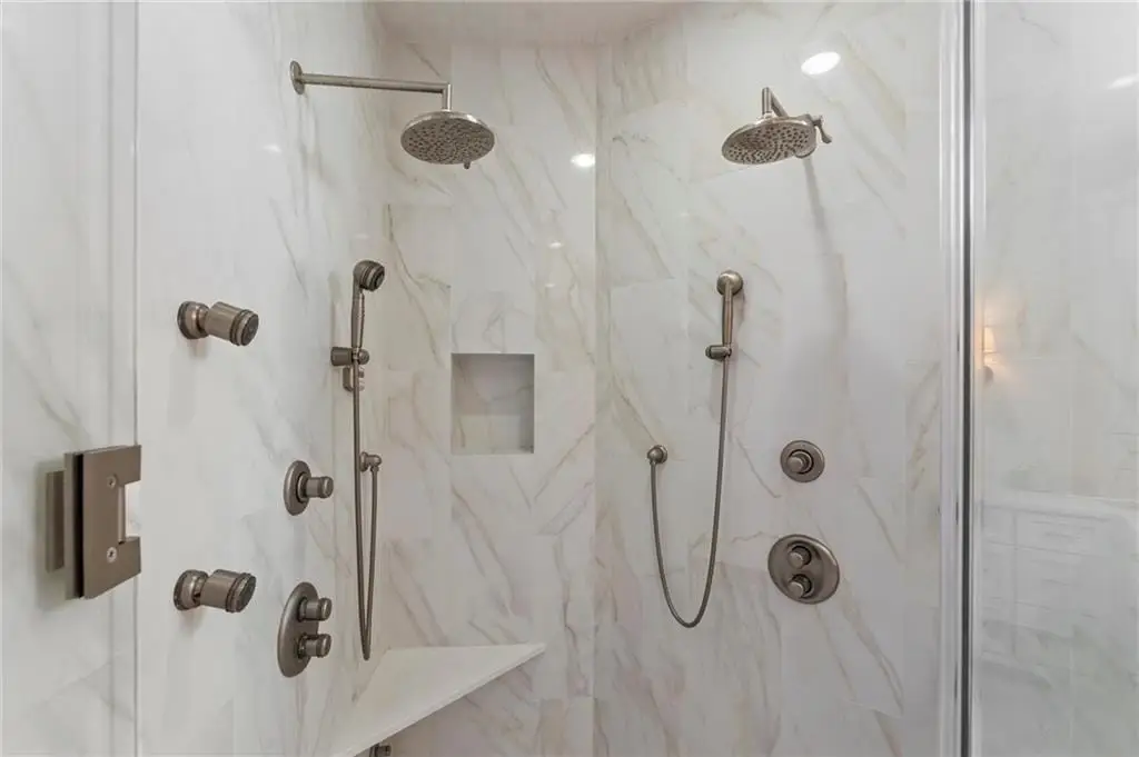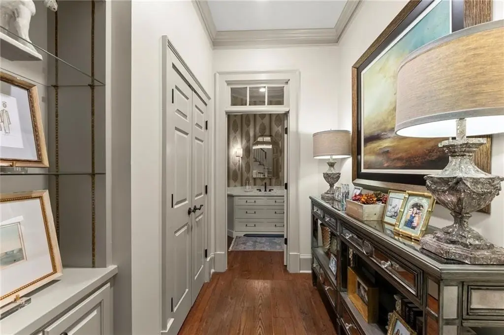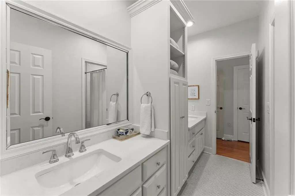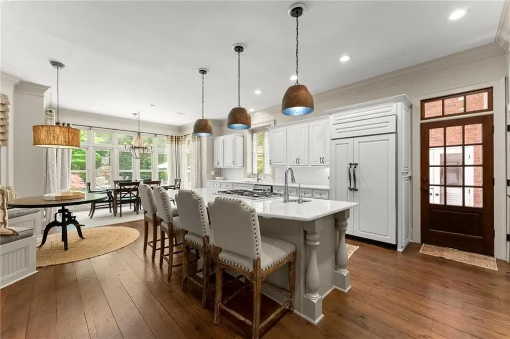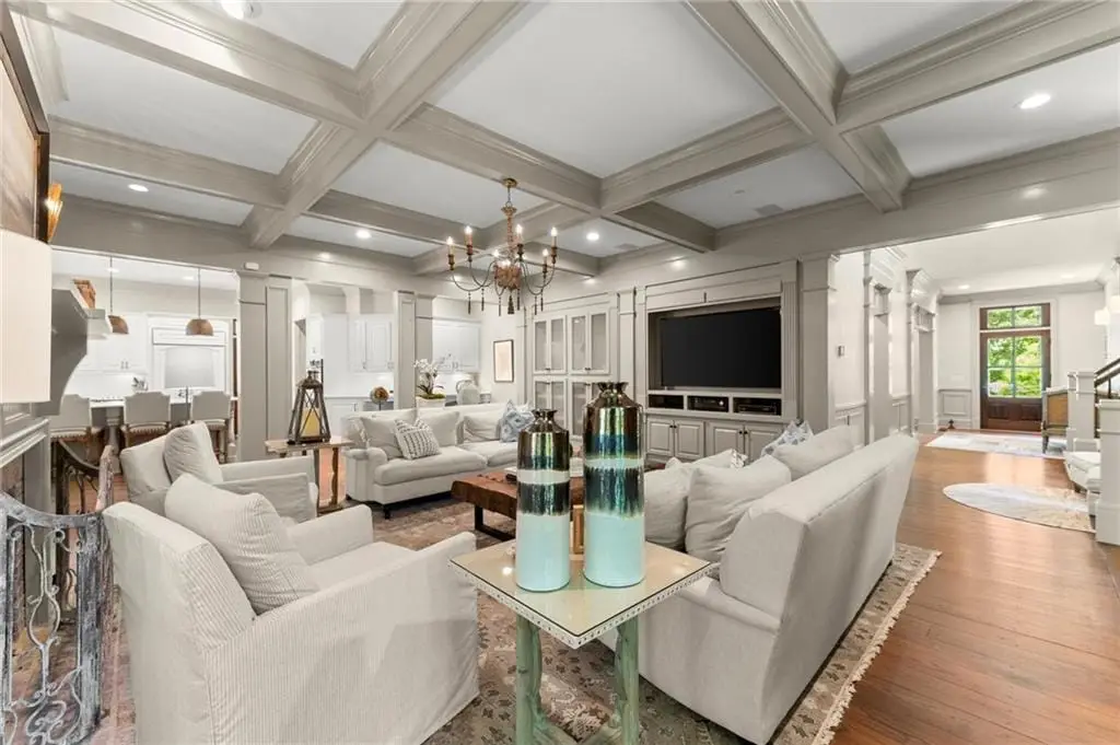 Exceptional home in Atlanta Country Club on a quiet cul-de-sac is enhanced with refined architectural details such as window transoms, privacy alcoves, high profile molding, stair landings and much more. The professionally designed and renovated residence offers a cohesive and timeless transitional style throughout making it turnkey ready. Upon entry, a two-story foyer will greet you with a truly elegant staircase and dramatic windows. A formal living room is adjacent to the entryway. A spacious but warm family room with coffered ceilings opens seamlessly to a sophisticated kitchen with marble countertops, Sub-Zero refrigerator, Thermador gas range, KitchenAid appliances, warming drawer, prep sink and banquet seating. A butlers pantry with wine fridge and glass cabinetry adds elegance while connecting the kitchen and dining room which easily accommodates 12 guests. The main level also offers a chic powder room with alcove entrance as well as a full bath with hidden shower, two large storage closets, and an expansive laundry room with built-ins and a desk area. A portico-covered private back entry leads into an access hallway with a mudroom and connects to the main laundry room. Upstairs the newly expanded Primary Suite is entered through a private sitting room with a fireplace. The oversized bedroom showcases a wall of windows with a stunning view of the pool and a fireplace. A true dressing room houses four custom, built-in armoires. The suite features His & Her walk-in closets. The fresh, all white primary bath includes a steam shower, heated floors, dual vanities, water closet and heated towel rack. Additionally, two more bedrooms with walk in closets are connected by a true Jack and Jill bath. A third secondary bedroom has an ensuite bath with a walk-in closet. A fourth suite style bedroom is accessed by a private staircase, ensuite bath and walk in closet. This large suite would be ideal for a nanny, guest or other. A secondary laundry room is located upstairs for convenience. A sixth bedroom with ensuite bath is on the lower level. The fully finished basement opens to a sunny spacious living area with a fireplace and leads to a fully equipped kitchen with double ovens, dishwasher, refrigerator and granite bar. Additionally there is a soundproof media room, weight room with sauna and a powder room. Enjoy year-round outdoor living on the covered porch featuring new Eze-Breeze windows, infrared heaters, and a cozy fireplace. The walk-out terrace level showcases an infinity-edge pool, brand-new paver pool deck (2024), hot tub with waterfall, outdoor kitchen with grill, sink, refrigerator, granite counters, bar seating, and a freestanding fireplace plus ample yard space beyond. Three-car garage with epoxy flooring. Ample parking in the driveway. This is luxury living at its finest in one of Atlanta’s most prestigious communities.