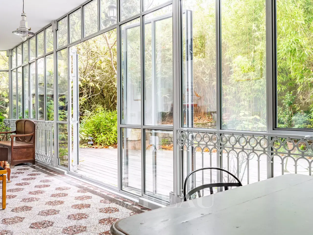 Charming house of the 19th century nestled in the heart of a pretty garden, it offers a total area of 314 m² (218.85 m² Carrez), and consists, on the ground floor of a kitchen (Bulthaup), of a living room with wood stove opening onto a period veranda from which one can enjoy a large sunny terrace, guest toilet. On the first floor a landing distributes three bedrooms, a bathroom with bath and shower, a dressing room, separate toilet. On the second floor, two bedrooms, an office, a bathroom. The third floor offers converted attic with toilets and attic. In the basement three beautiful cellars. Shops and station (Line L) for La Défense and Saint-Lazare 10 minutes on foot. Access to the A13 motorway in 5 minutes.