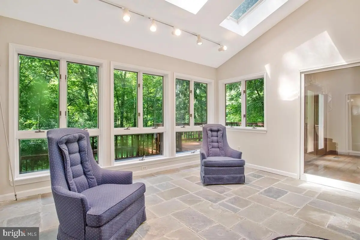 If you're like a lot of people, you have probably dreamed of living at the top of a mountain. Well, dream no more! This is your opportunity to live at the ""top of a mountain"", while being a stone's throw away from everything. ""Fair Winds"" is now available to have your dream come true. This 7 acre lot has some of the most pristine views in beautiful Marriottsville! The house was lovingly custom built by the current owner. She left no details out. Featuring a passive solar system, reducing utility costs. The house faces south, Closed double entry doors on all north facing entrances. The year-round sunroom has 10 inches of concrete under the slate floor, and a stone wall, tempering the outside conditions. Celestory windows and a dramatic open floorplan also help with air flow. And to round out the home's ventilation ingenuity, there's a two zone HVAC system. So, you can see the thought that went into the ventilation alone. Large eat-in kitchen was recently updated, appliances less than 10 years old . Whole house interior was recently painted. Newer roof. Two en-suites on separate floors allow for flexibility. Upstairs en-site has sliders leading to a tiled patio. Large finished walkout basement with full bath, kitchen, storage, and workshop and lots of light, with a slider leading to the back yard. Oversized garage also has workshop area. There are full baths on each floor (4 altogether) plus a ½ bath in mud room. Two decks and a screened porch help to extend the comfort and beauty of indoors to the outdoors seamlessly. A $6000 credit will be given at settlement to replace family room door. Patapsco State Park is very nearby, with lots of outdoor activities. This home was designed for maximum efficiency, and total comfort and beauty, both inside and out. But you really need to go see it in person to fully appreciate it , get it before its gone!