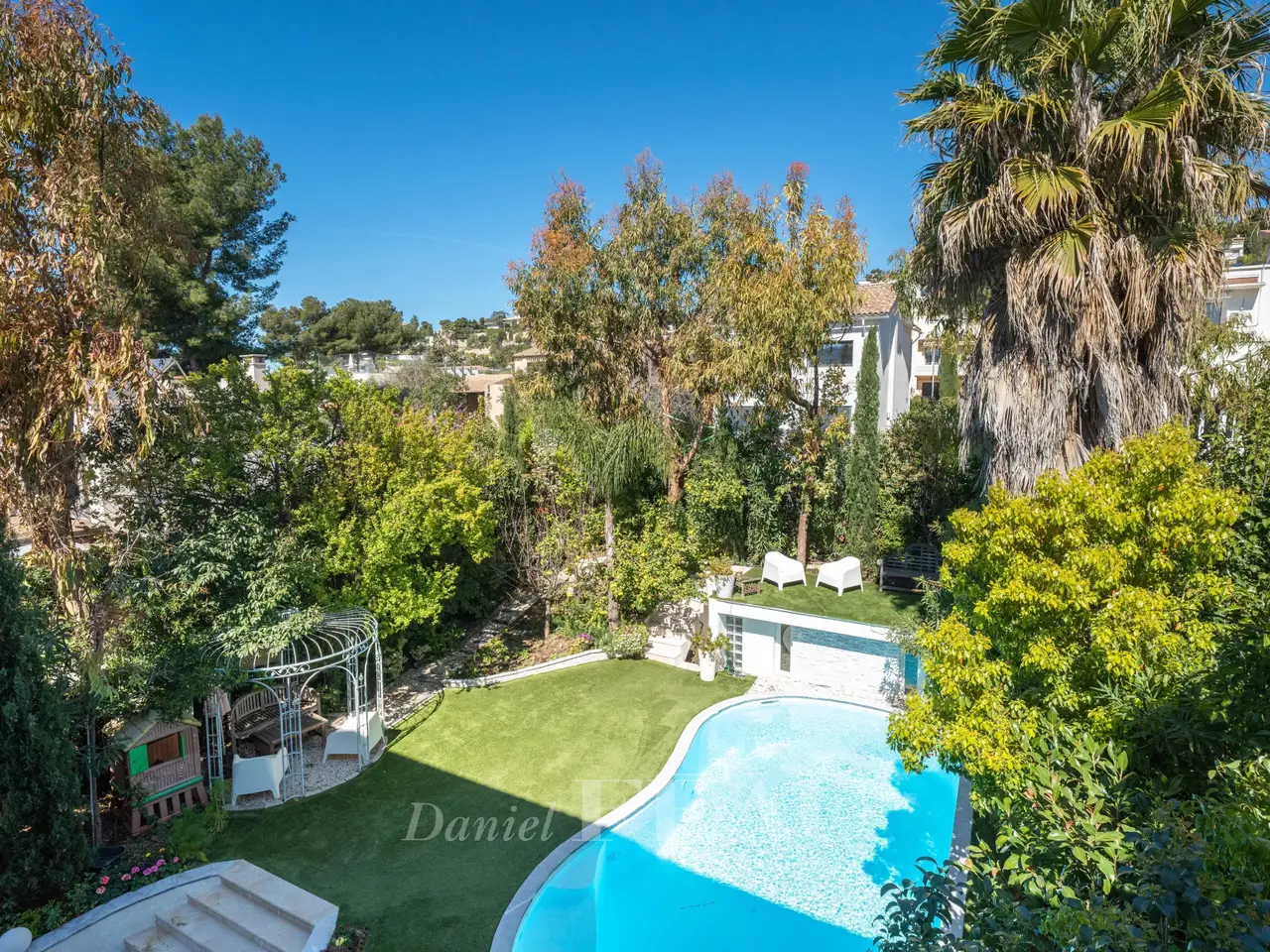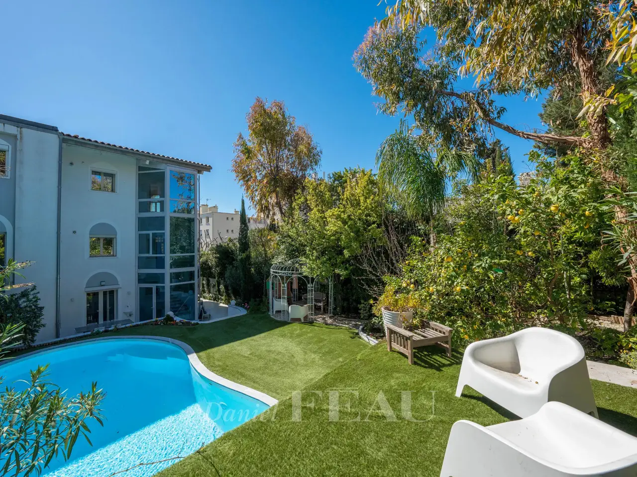 This peaceful mid 20th century property is in a sought-after and secure residence in the immediate vicinity of the sea. Set in a leafy 550 sqm plot with a heated swimming pool, it offers about 270 sqm of renovated living space including a living/reception room opening onto a terrace, a semi open-plan kitchen, and a bedroom with a shower room and a dressing room. The lower floor comprises four bedrooms including a suite, a shower room and a library. Accessed from both the inside and outside, the garden level includes a sitting room, two further bedrooms, a shower room and a summer kitchen. The property is equipped with a lift, home automation and a security system. With a garage and parking spaces.
