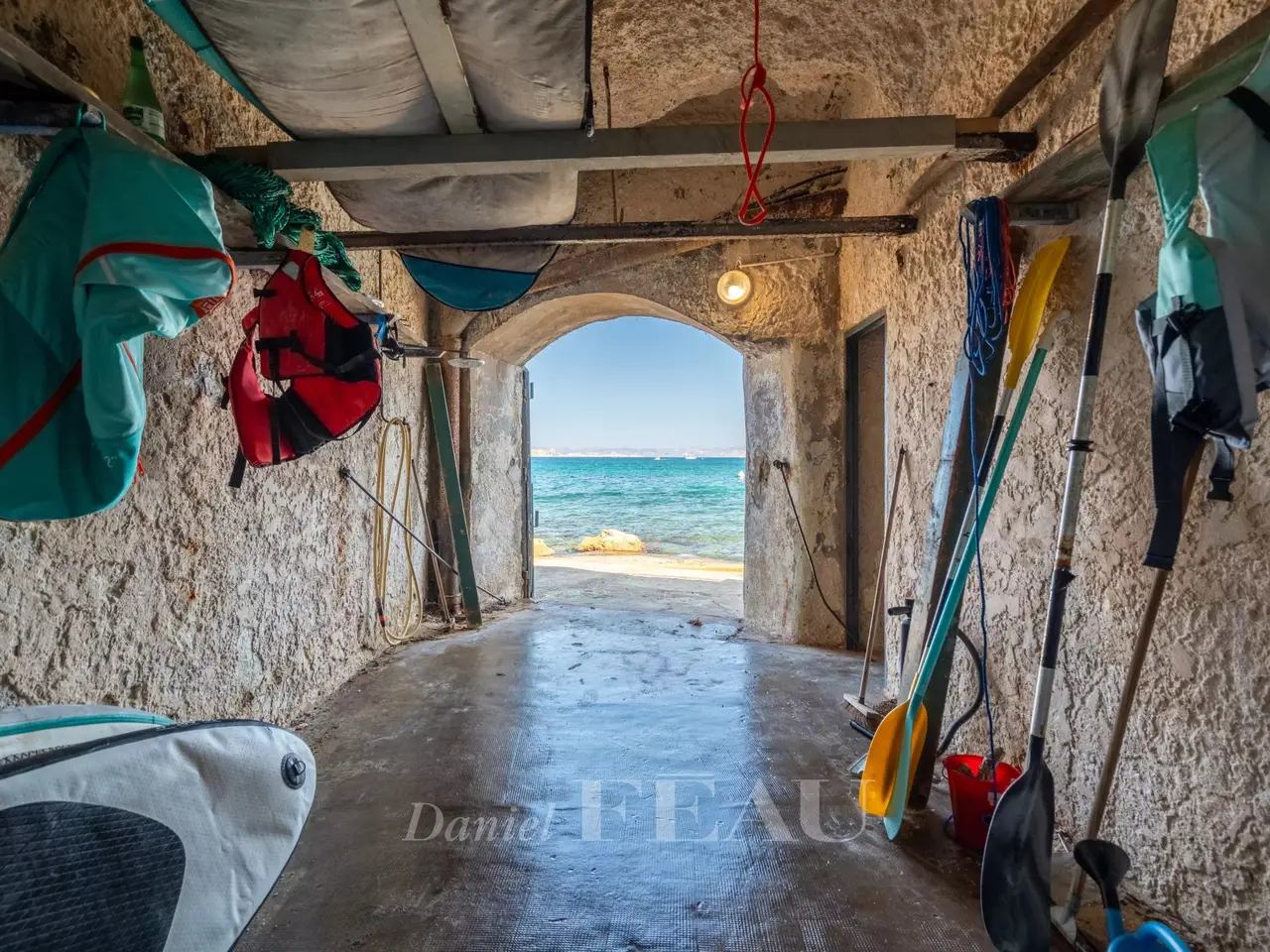 This near 190 sqm property located a stone’s throw from the shops and the beach benefits from direct private access to the sea. It includes an entrance hall, a spacious living/reception room bathed in sunshine thanks to wide patio windows opening onto a terrace above the Mediterranean, a semi open-plan kitchen, three bedrooms including a master suite with a terrace commanding an open view, and a shower room. On a basement with a utility room. With a swimming pool, a summer lounge and dining area, and a further terrace with steps accessing the sea and a boathouse. The plot benefits from a parking space, and two rented parking spaces are available.