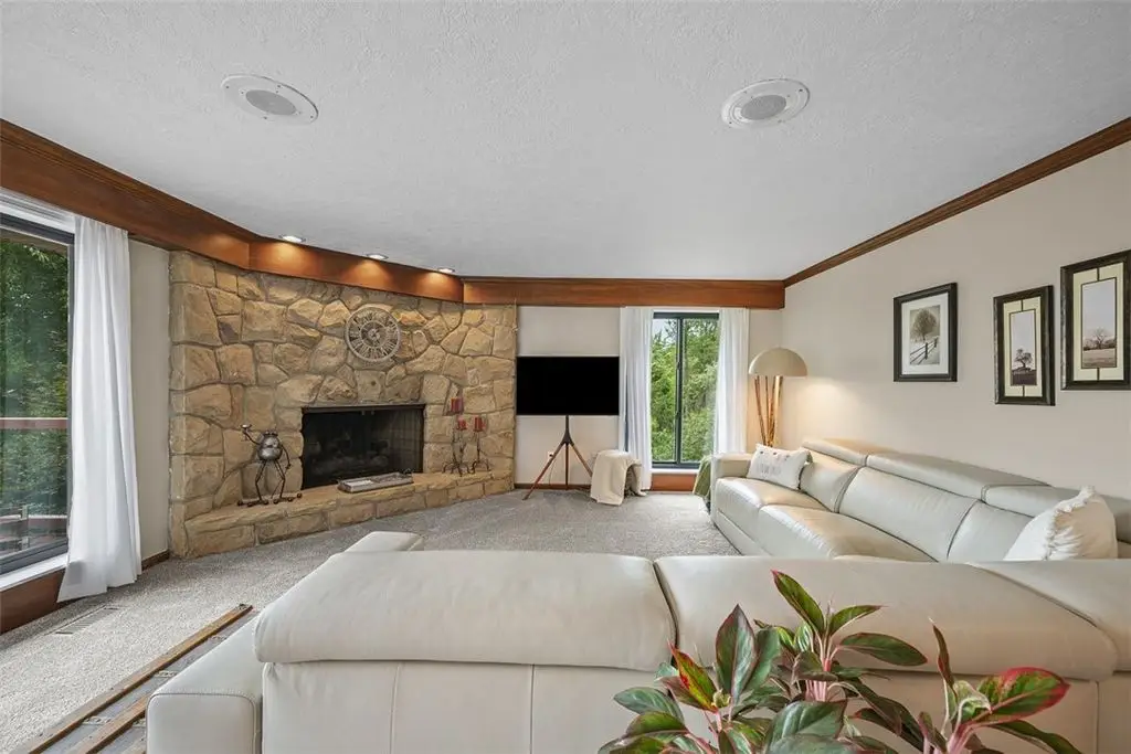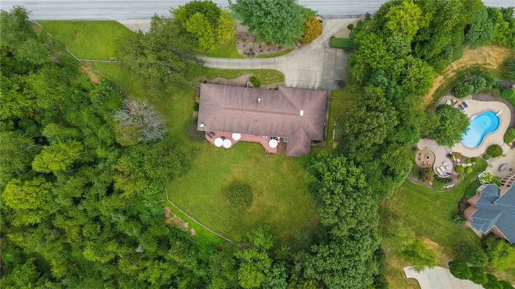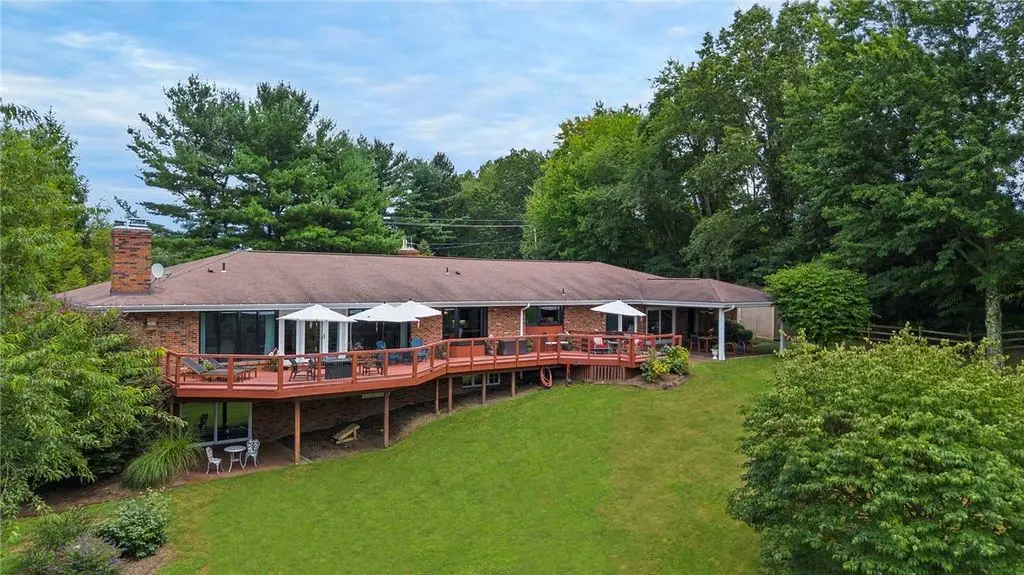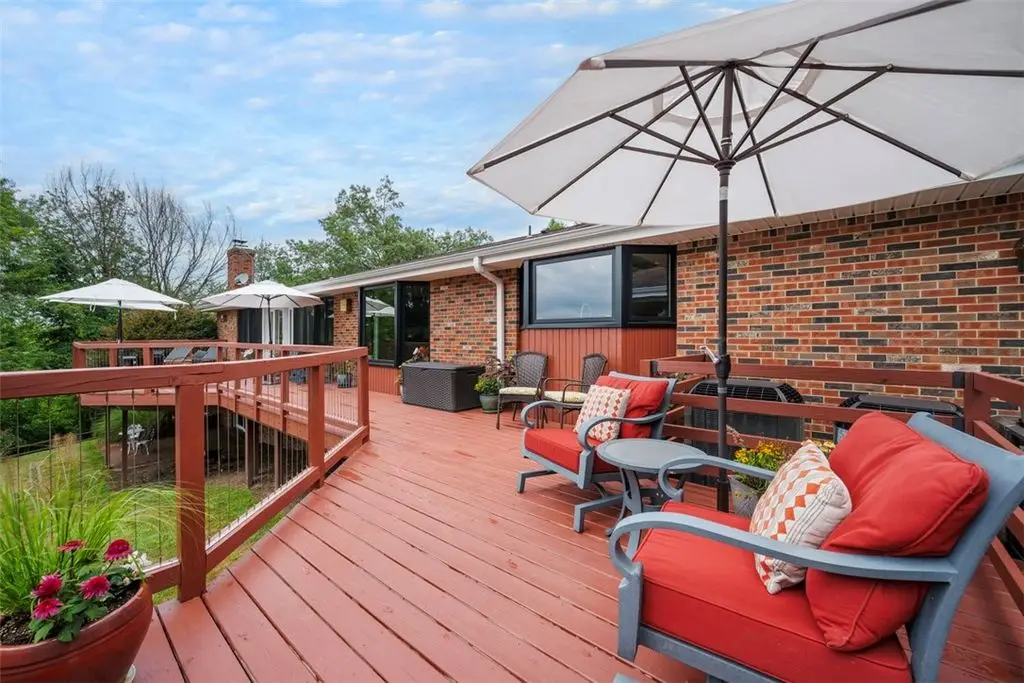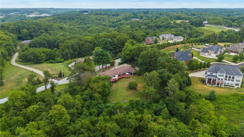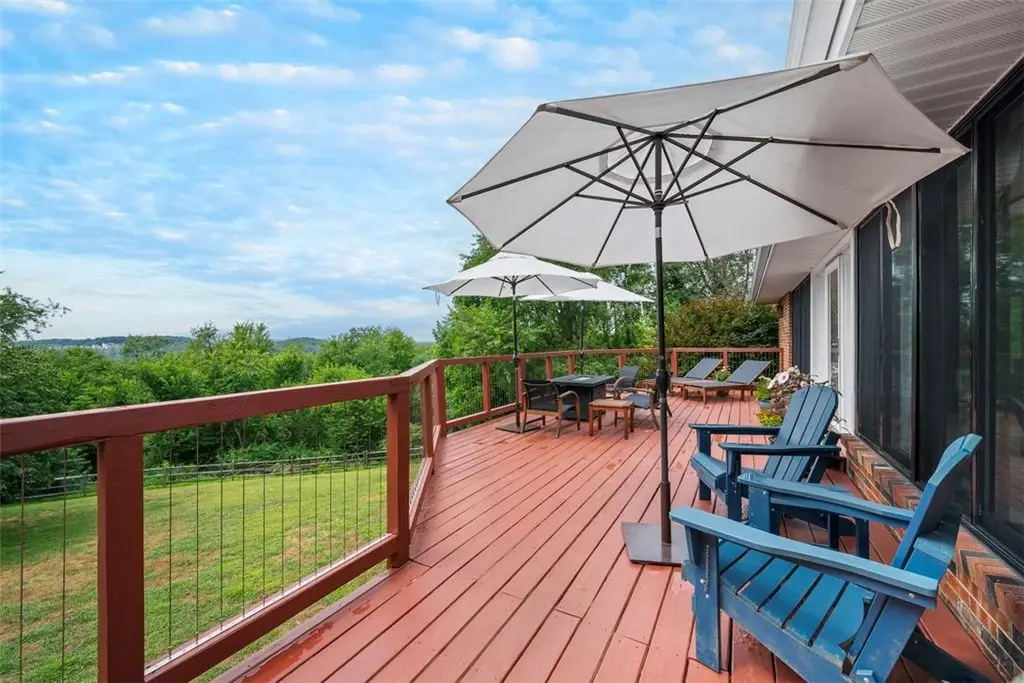 Nestled on 4.373 acres with breathtaking panoramic vistas, 1000 Pleasant Hill Road is a stunning 5-bed, 5-bath sprawling brick ranch offering over 5,000 sq ft of finished living space. Recently updated with new windows, quartz kitchen countertops, appliances, flooring, lighting, landscaping, and fencing, this home blends elegance and comfort. The grand foyer opens to a spacious dining room and a magnificent kitchen with abundant cabinetry, walk-in pantry, desk, and eat-in area. The expansive living room features a stone fireplace, wet bar, and deck access. A main-level sunroom and two powder rooms add convenience. The primary suite boasts a cozy fireplace, walk-in closet, and private bath. The lower level includes a large family room with pellet stove, storage, office nook, four bedrooms, and two full baths. Take a leisurely stroll on the path which leads to Knob Hill Park or enjoy the glorious sunsets from the covered patio overlooking the rolling countryside of Western Pennsylvania.