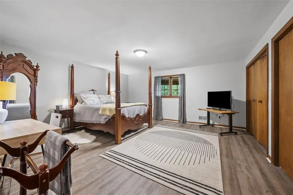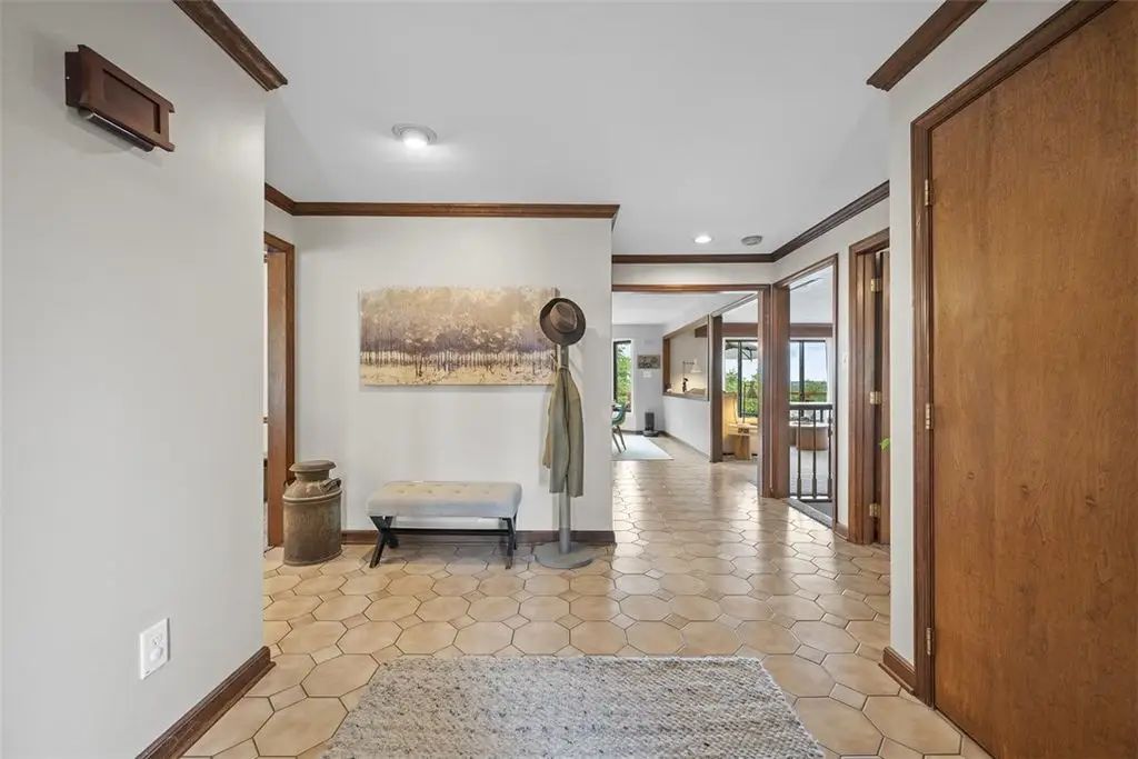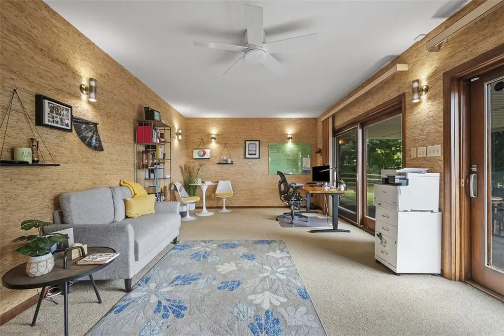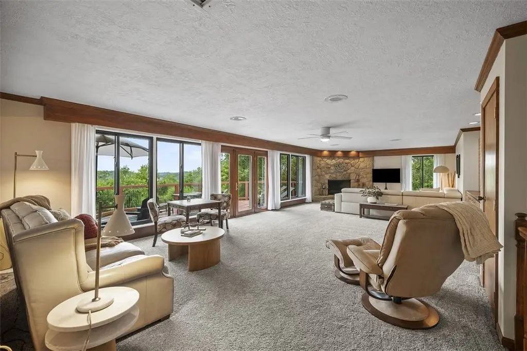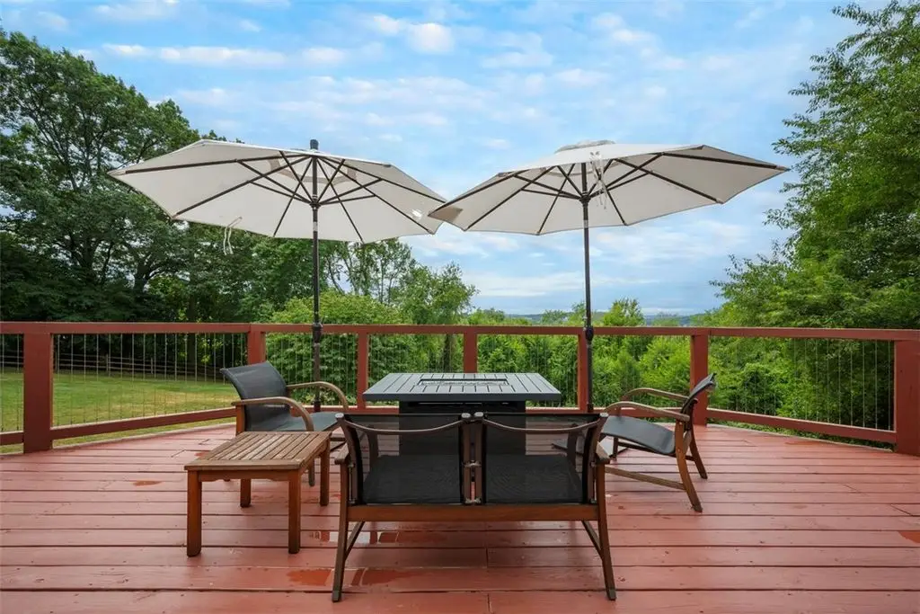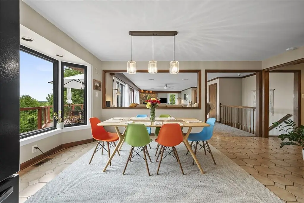 Nestled on 4.373 acres with breathtaking panoramic vistas, 1000 Pleasant Hill Road is a stunning 5-bed, 5-bath sprawling brick ranch offering over 5,000 sq ft of finished living space. Recently updated with new windows, quartz kitchen countertops, appliances, flooring, lighting, landscaping, and fencing, this home blends elegance and comfort. The grand foyer opens to a spacious dining room and a magnificent kitchen with abundant cabinetry, walk-in pantry, desk, and eat-in area. The expansive living room features a stone fireplace, wet bar, and deck access. A main-level sunroom and two powder rooms add convenience. The primary suite boasts a cozy fireplace, walk-in closet, and private bath. The lower level includes a large family room with pellet stove, storage, office nook, four bedrooms, and two full baths. Take a leisurely stroll on the path which leads to Knob Hill Park or enjoy the glorious sunsets from the covered patio overlooking the rolling countryside of Western Pennsylvania.