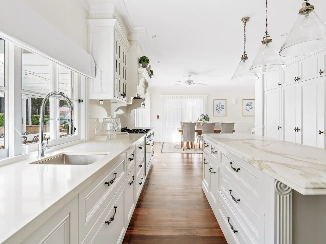 Set amid estate-like gardens and boasting the graceful lines of a heritage Queenslander, this has to be one of the most captivating homes to come to market this year; bathed in north sun, it's an exquisite fusion of sleek, contemporary finishes paired with the strength and beauty of classic architectural themes. Effortlessly bridging the divide between indoors and out, its deep, shady verandahs span the front of the residence; the luminous, open plan design flows to vast entertaining terraces, sparkling pool and child-friendly lawns in back. Beautifully designed and renovated in 2018, this gorgeous estate and its separate guest house are both stunning – it's a character-rich, storybook home created for the way we live now. • Exquisite design with open plan living, media room + study nook • Sparkling pool, sun drenched terraces, deep verandahs • High ornate ceilings, wood fireplace, French doors, Blackbutt floors • Fully self-contained guest house and a separate home office with AC • Vogue award winning, designer kitchen features Carrera marble island • Master with luxurious ensuite; many bedrooms with private terraces • Pizza oven, heated floors, R/C air, boatshed, garage w/int access • North aspect; 3,041sqm parcel, glorious, well-manicured gardens This property will be sold via online auction if not before, to register for the auction please copy and paste the link below into your browser: https://widget.auctionslive.com/widget/auctions/view/248926/PXq