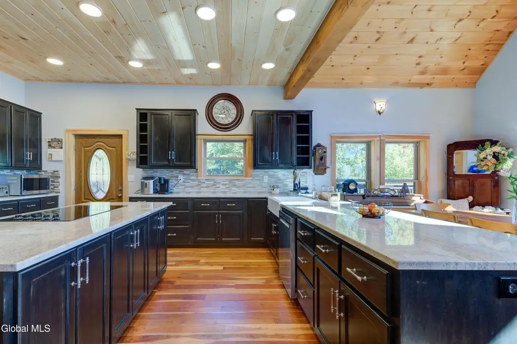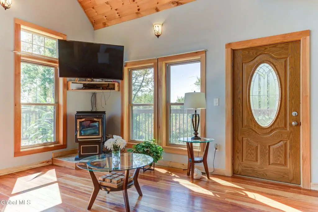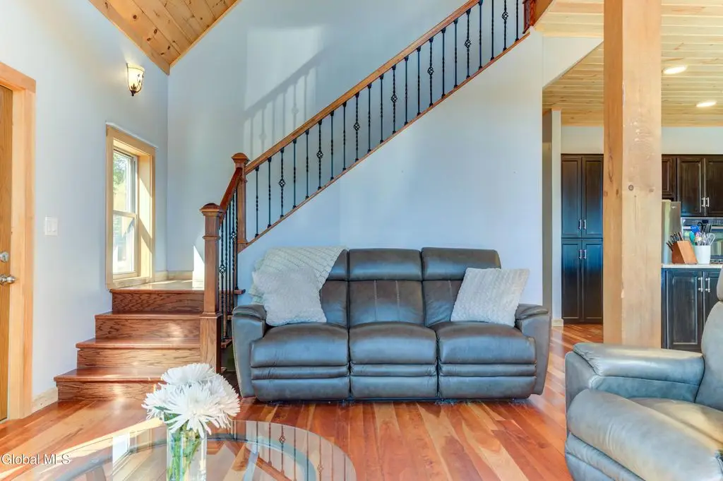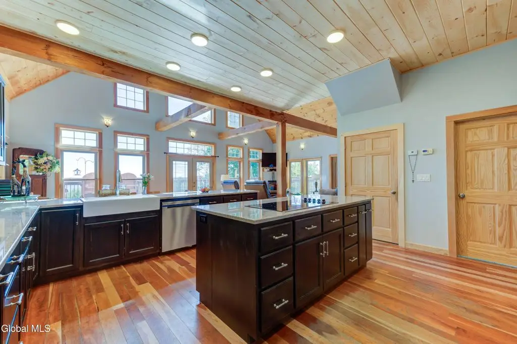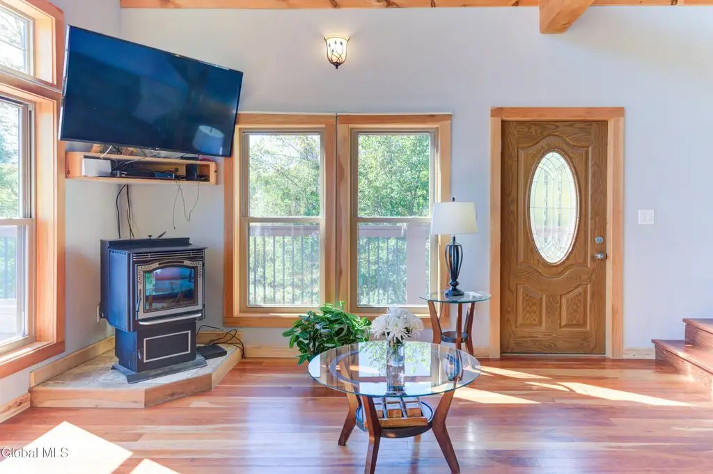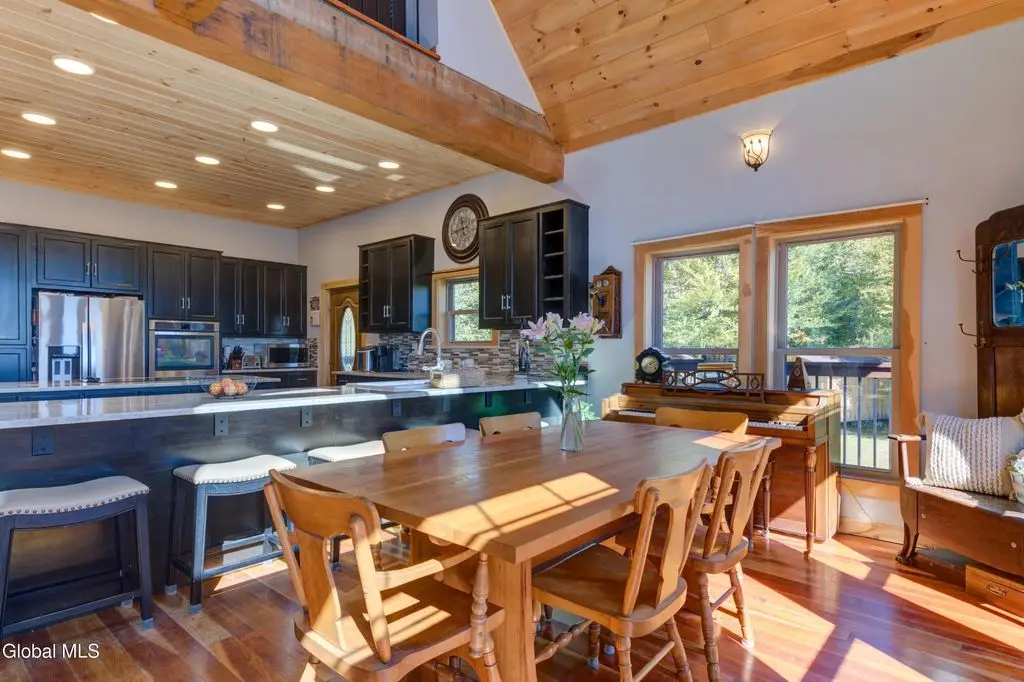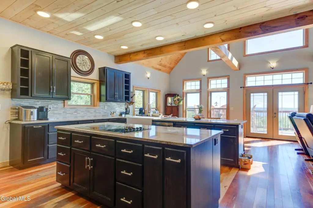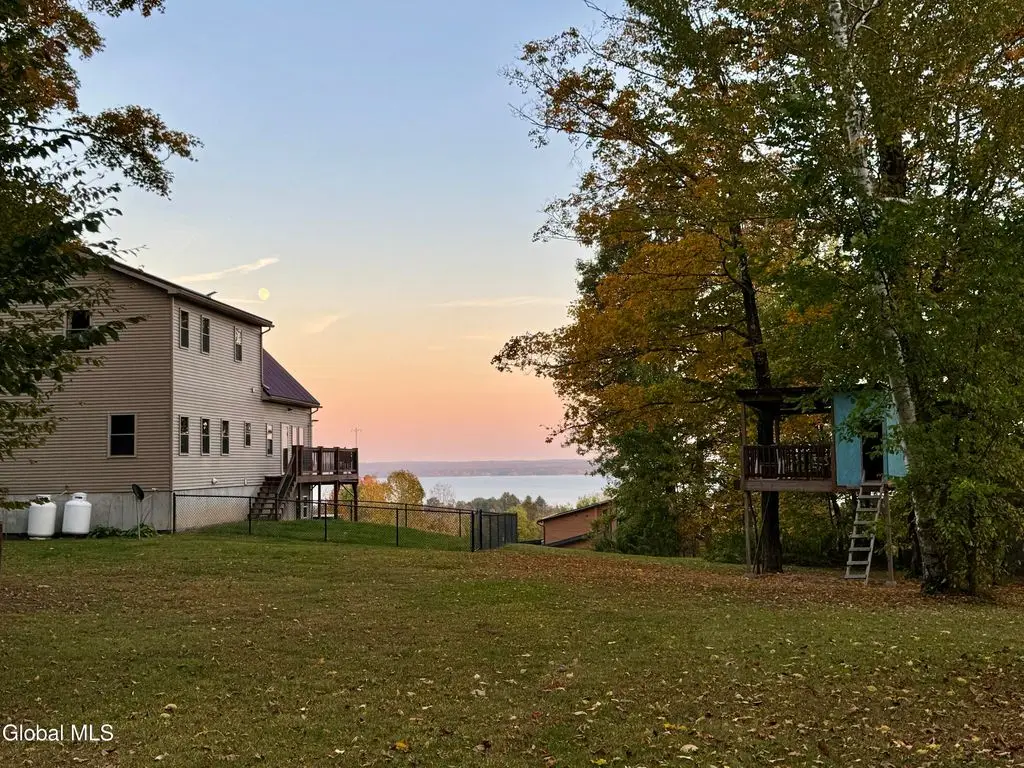 Stunning Lake & Mountain Views! Perched high on a ledge overlooking the Great Sacandaga Lake, this custom Chalet-style home sits on over 10 acres with a 10' beach permit a short drive away for lake access. Tucked away on a private dead-end road in the Mayfield School District, this 4-bedroom, 3-bath home offers the perfect blend of seclusion and convenience.Inside, the soaring vaulted ceilings and wall of windows in the Great Room showcase breathtaking lake and mountain views. The gourmet kitchen features custom hand-crafted cabinetry, granite countertops, and a spacious breakfast bar - a perfect gathering place for family and friends. A full walkout lower level provides additional living space potential, ready for your finishing touches. Step outside to the expansive wraparound deck, the ideal place to entertain or simply relax surrounded by nature. Unwind on the covered patio in the newer hot tub - perfect for soaking in the peaceful setting after a long day. A true Adirondack retreat with endless possibilities!