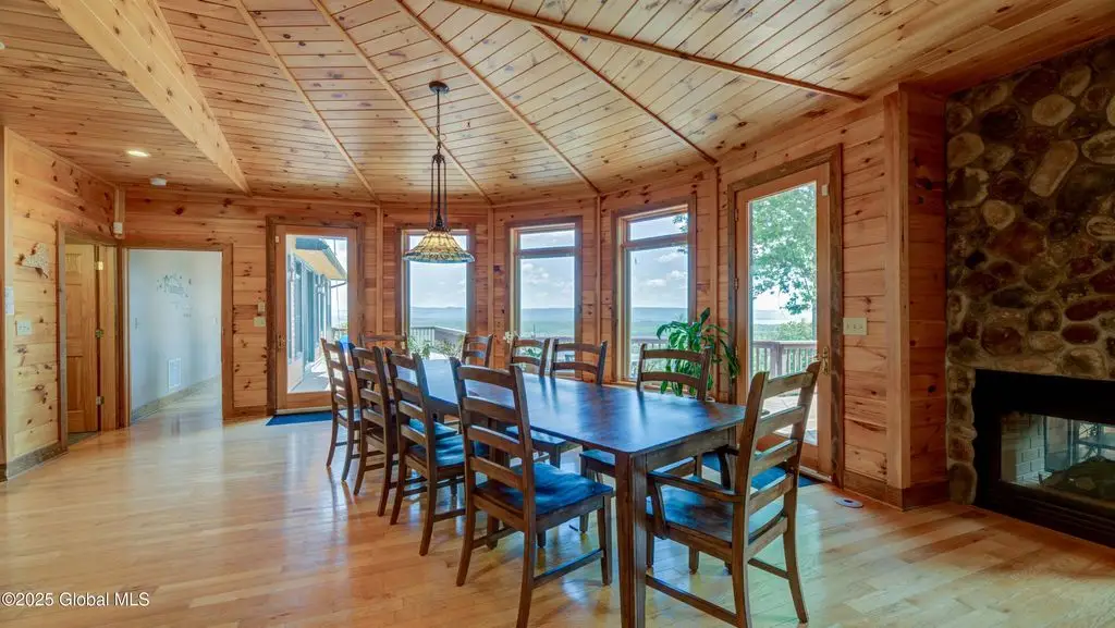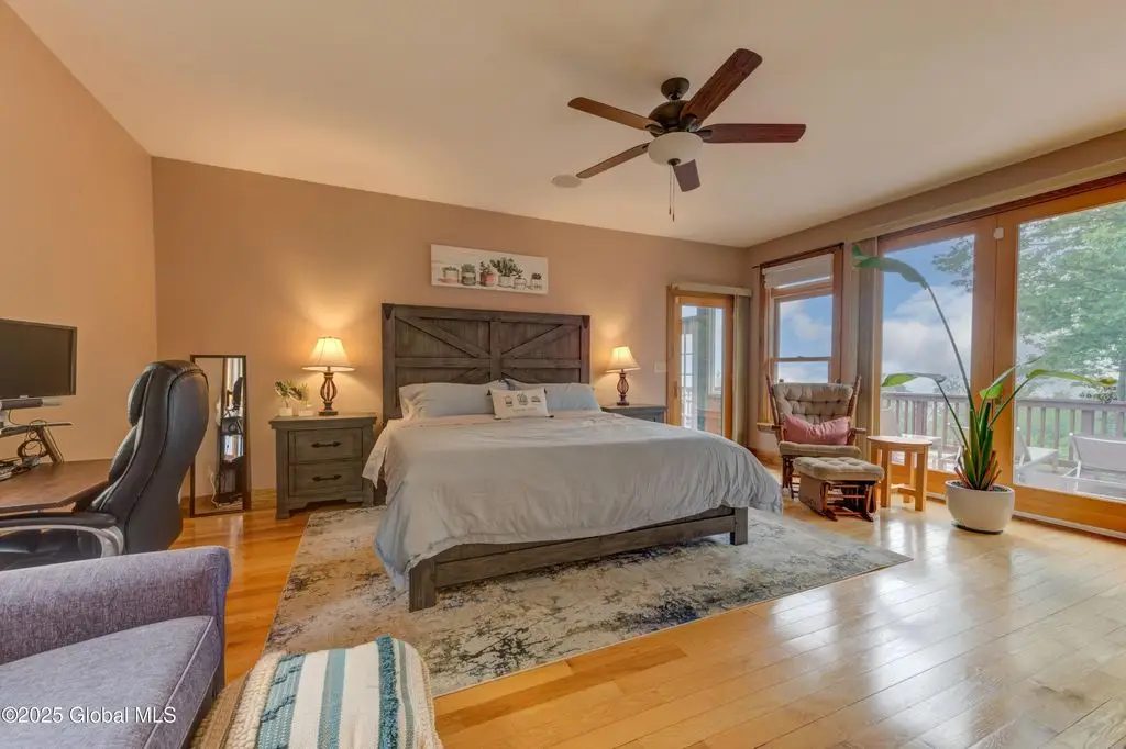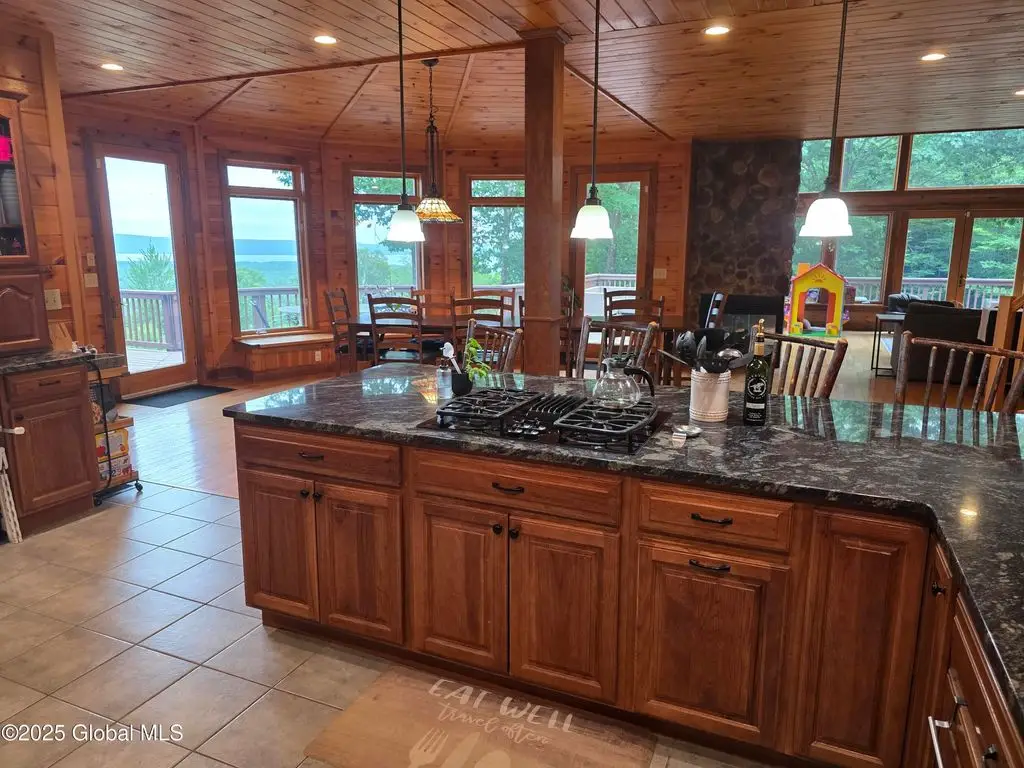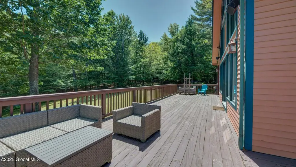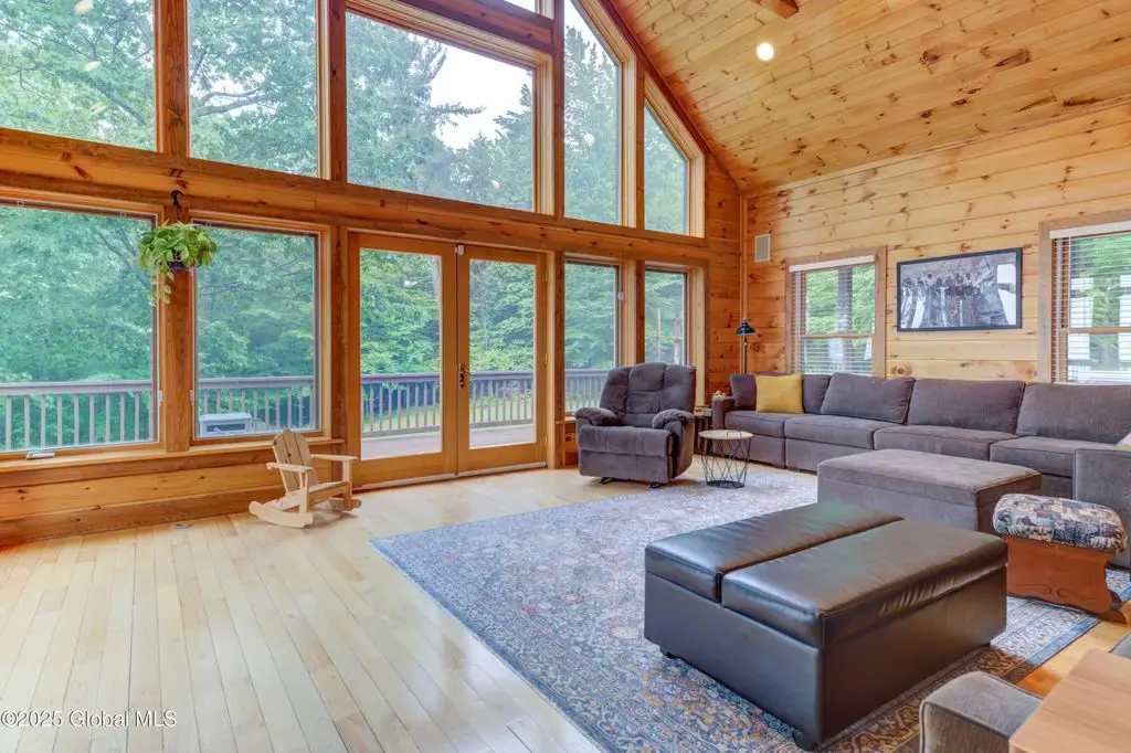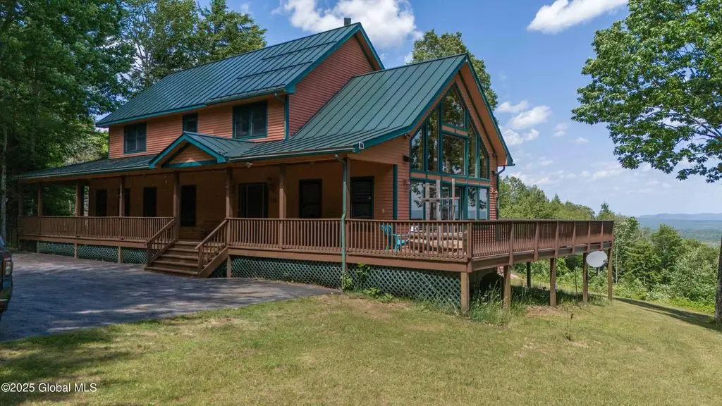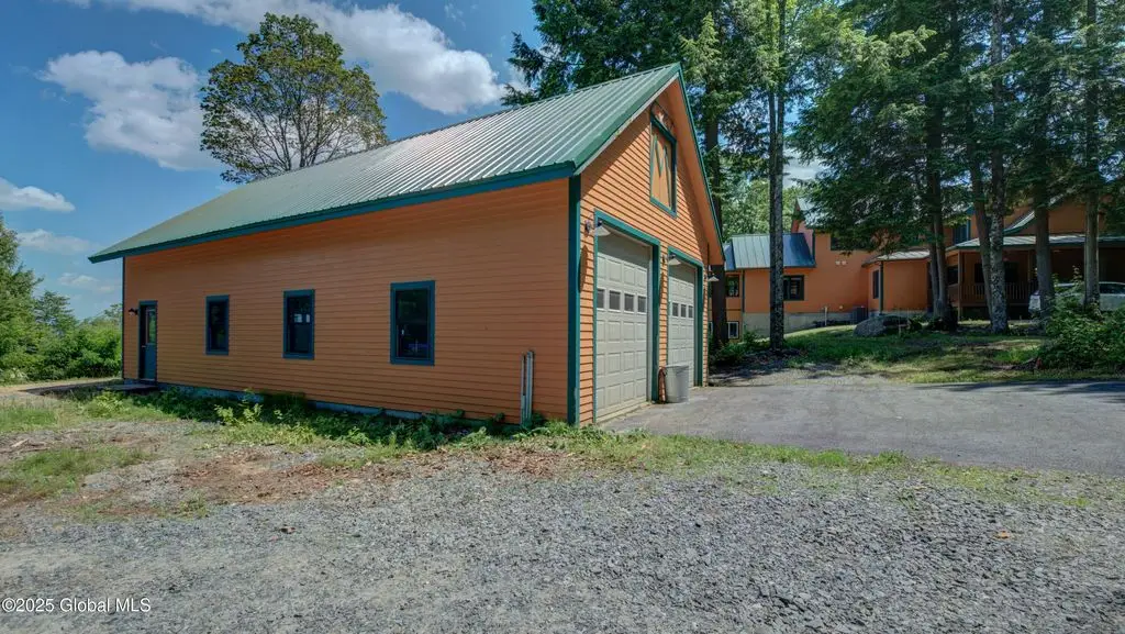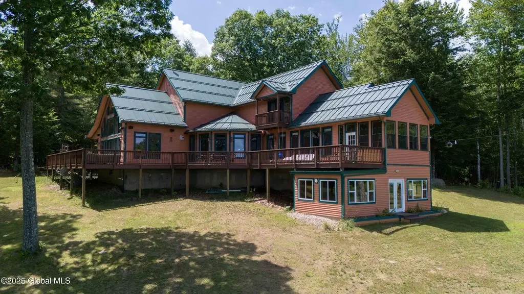 Discover the pinnacle of ADK living in this 6 bedroom 4.5 bath custom-built residence, set atop 43 secluded mountain acres w/ sweeping views of Great Sacandaga Lake. This home has been crafted for both luxury & comfort. Great room w/ vaulted ceilings, a stone fireplace, & custom woodwork. Gourmet kitchen features stone countertops & a large peninsula for casual eat-in dining, plus large dining space w/spectacular views. Two spacious primary suites, each with walk-in closets & en-suite baths; one w/private access to a sunroom / artist's studio; the other w/ a private balcony. Inviting, large front porch & expansive decks. Walk out basement w/ gym & dedicated hot tub room for ultimate relaxation. Detached heated garage currently functioning as a woodshop, plus newer metal barn.