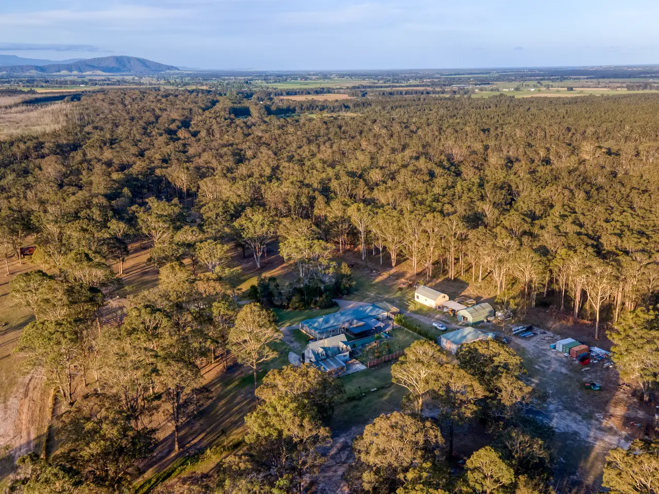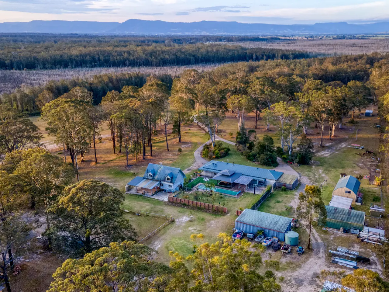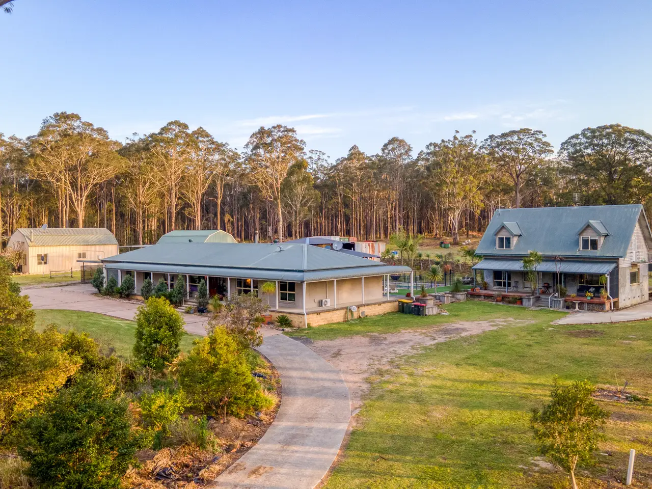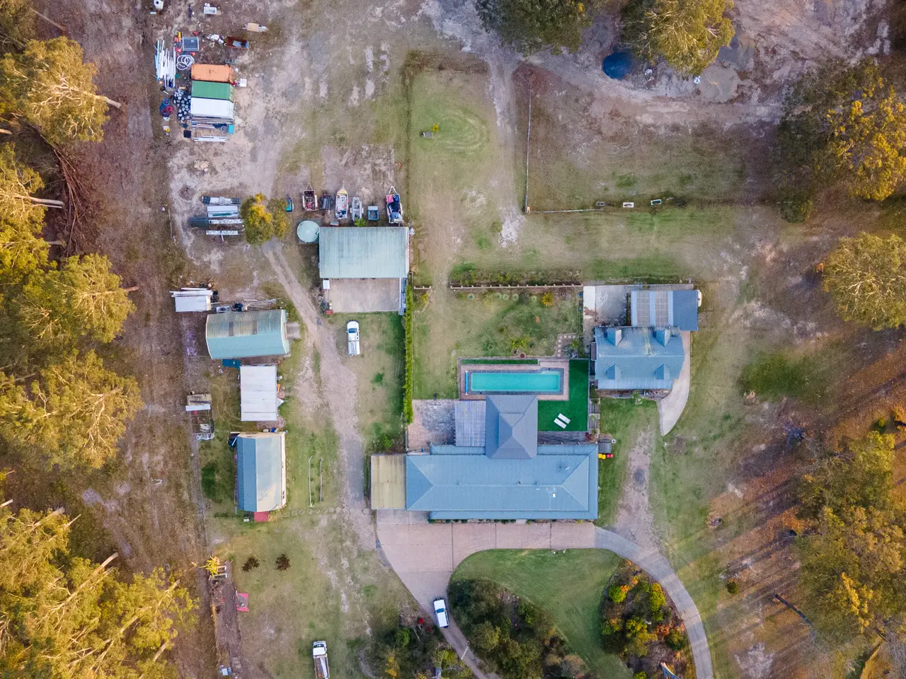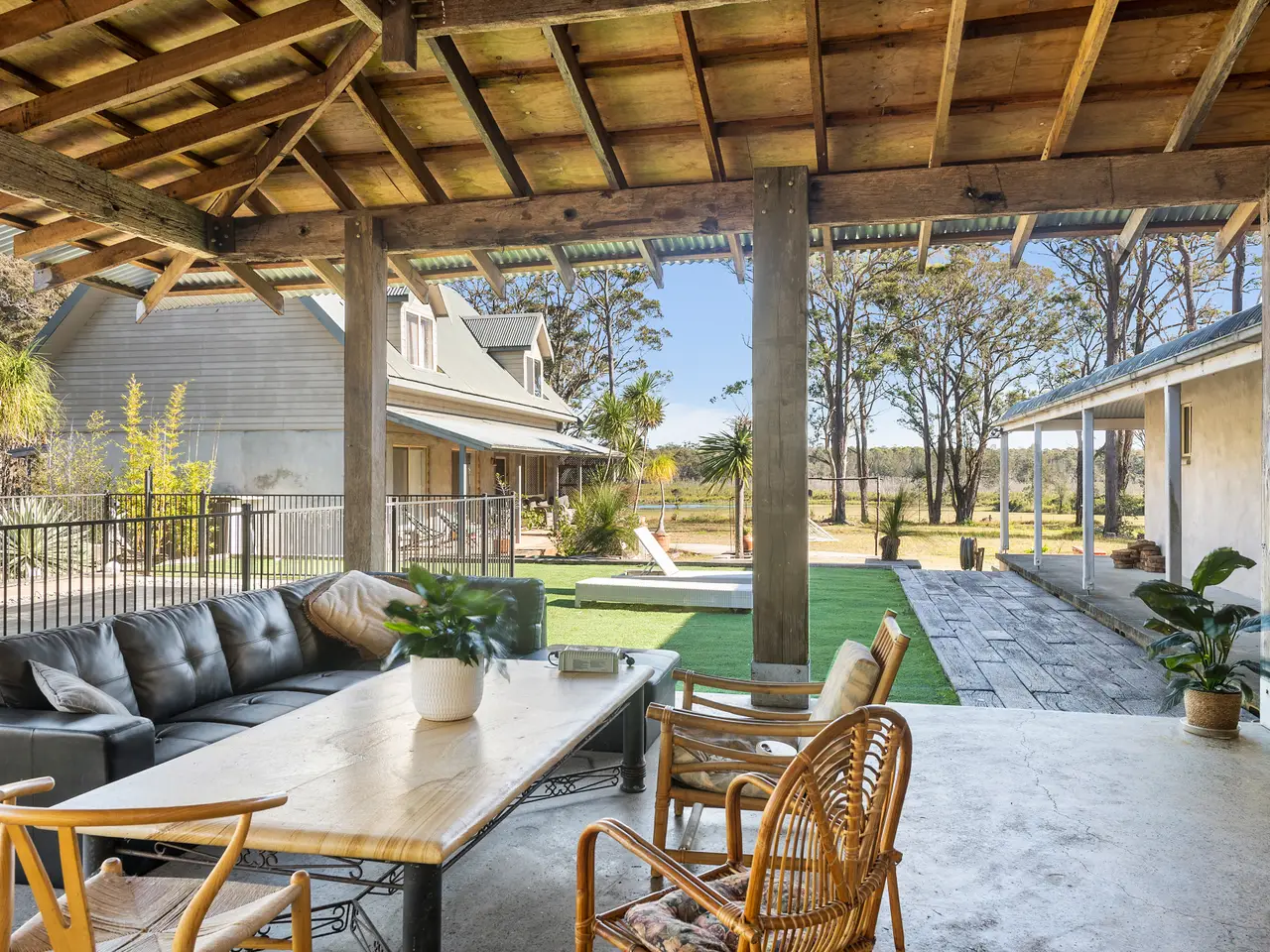 Commanding a classic country silhouette with its wide wraparound verandah and timeless charm, the remarkable estate of 'Snowood' offers an enviable lifestyle across over 45 hectares (113 acres). The five-bedroom main residence features a privately positioned master with walk-in robe and ensuite, along with a newly renovated three-way bathroom. Soaring vaulted ceilings, timber floors and a warm timber bench kitchen enhance the home's country appeal, flowing through to a rustic-style alfresco area that overlooks a serene swimming pool, perfect for entertaining. Additional accommodation includes a fully self-contained home with kitchen, bathroom, covered patio and an attic retreat or second bedroom, as well as a separate two-bedroom cottage with a lofty open-plan living area with fireplace. Each would be ideal for multi-generational living or short-term stays. Practical inclusions, such as a boat shed, large storage shed, and concrete driveways, complete the offering. Just 15 minutes from Nowra CBD and the surf at Culburra Beach, this property pairs rural seclusion with exceptional coastal and town convenience. • Expansive 45-hectare (113-acre) lifestyle estate with ultimate privacy • Five-bedroom homestead with wraparound verandah • Master suite with walk-in and ensuite, plus updated three-way bathroom • Vaulted ceilings, timber floors, and a timber benchtop kitchen • Large rustic alfresco area overlooking a swimming pool • Self-contained cottage with attic loft and rear patio • Separate two-bedroom dwelling with spacious living and fireplace • Ideal for guest stays, extended family or multi-gen living • Boat shed, large storage shed, concrete driveway, and ample parking • Only 15 minutes to Nowra CBD and Culburra Beach • Ultimate privacy with no through traffic
