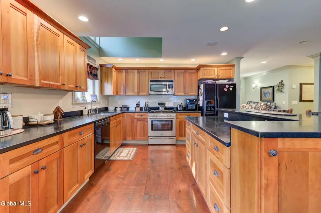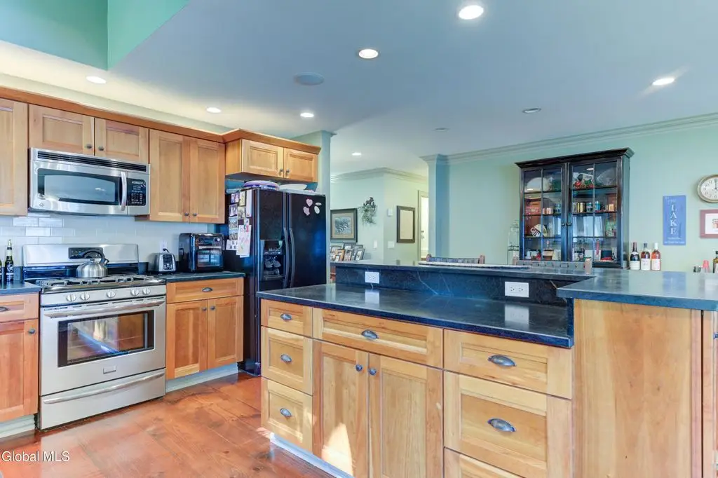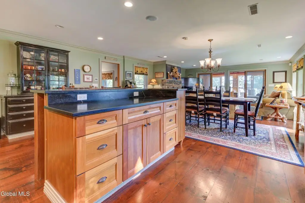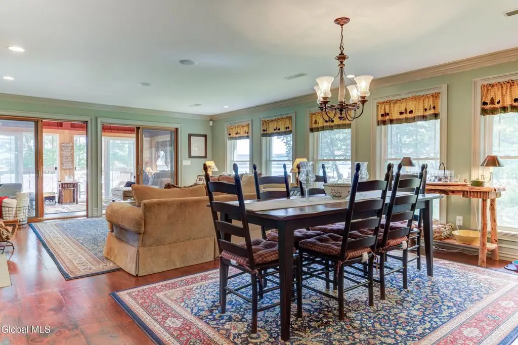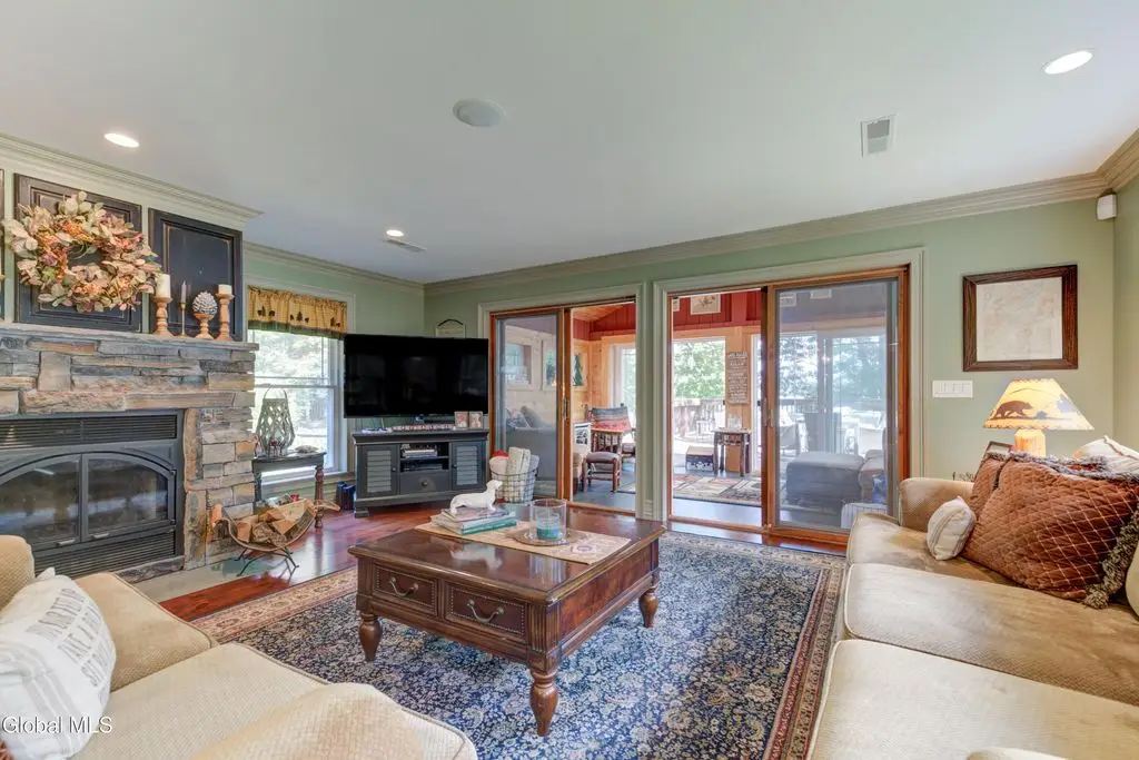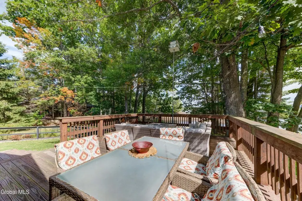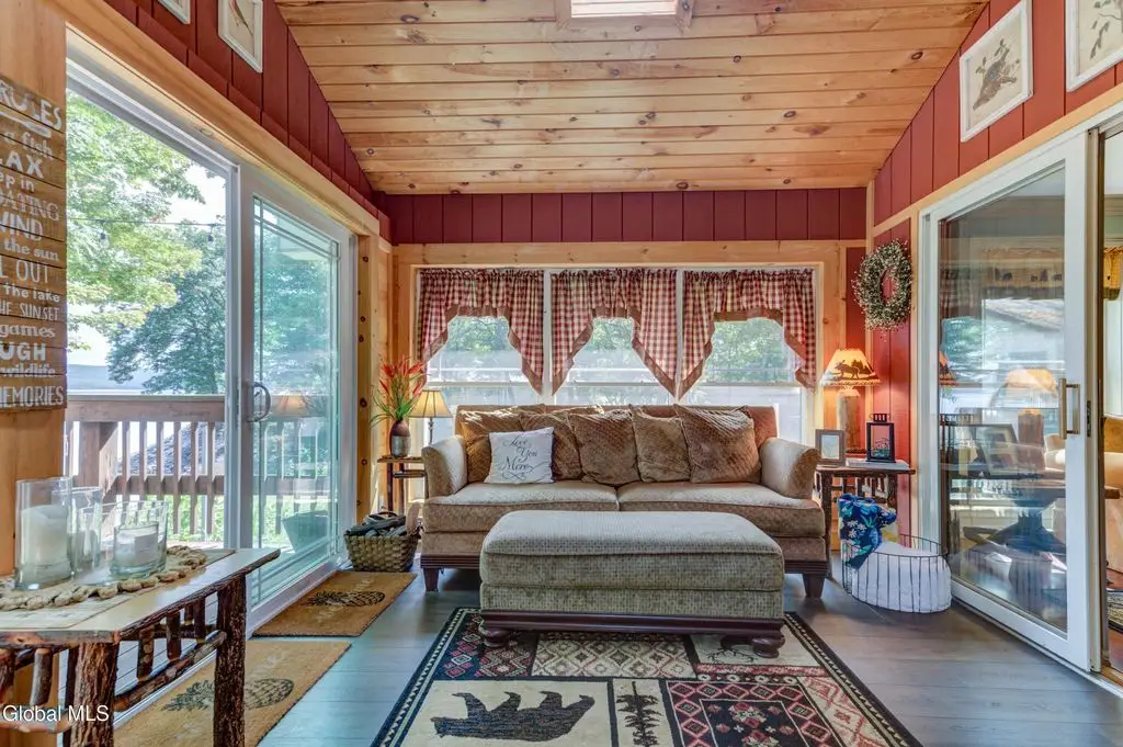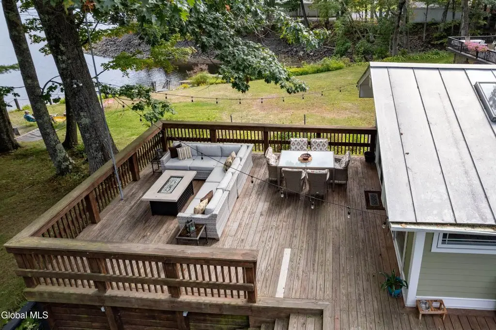 Enjoy year round lakeside living with 112' of HRBRRD lake permit on Great Sacandaga Lake with deep water for boating. This home was fully gutted and redone recently with tasteful updates throughout. It offers 2 spacious bedrooms, one facing the lake. The family room could easily be changed into a 3rd bedroom with a fireplace by adding two sets of doors. The kitchen shines with cherry cabinetry and soapstone countertops, adding warmth and ambiance to the great room. The living room, dining area, main bedroom, and enclosed porch all overlook the lake. The wide plank pine floors add to the warmth of the house and cozying up to the fireplaces or propane stove is perfect for taking the chill out. Step outside on the open deck for gorgeous views of the lake and mountains. This beautifully finished lake house is move-in ready. Just pack a bag and start enjoying the spacious yard and deck which are perfect for entertaining. Hop on a snowmobile or ice fish and enjoy the GSL year round.