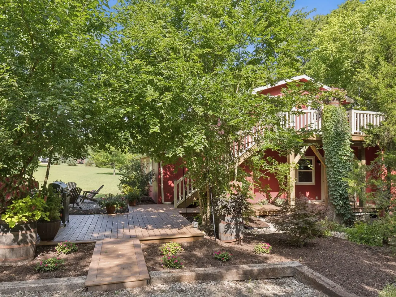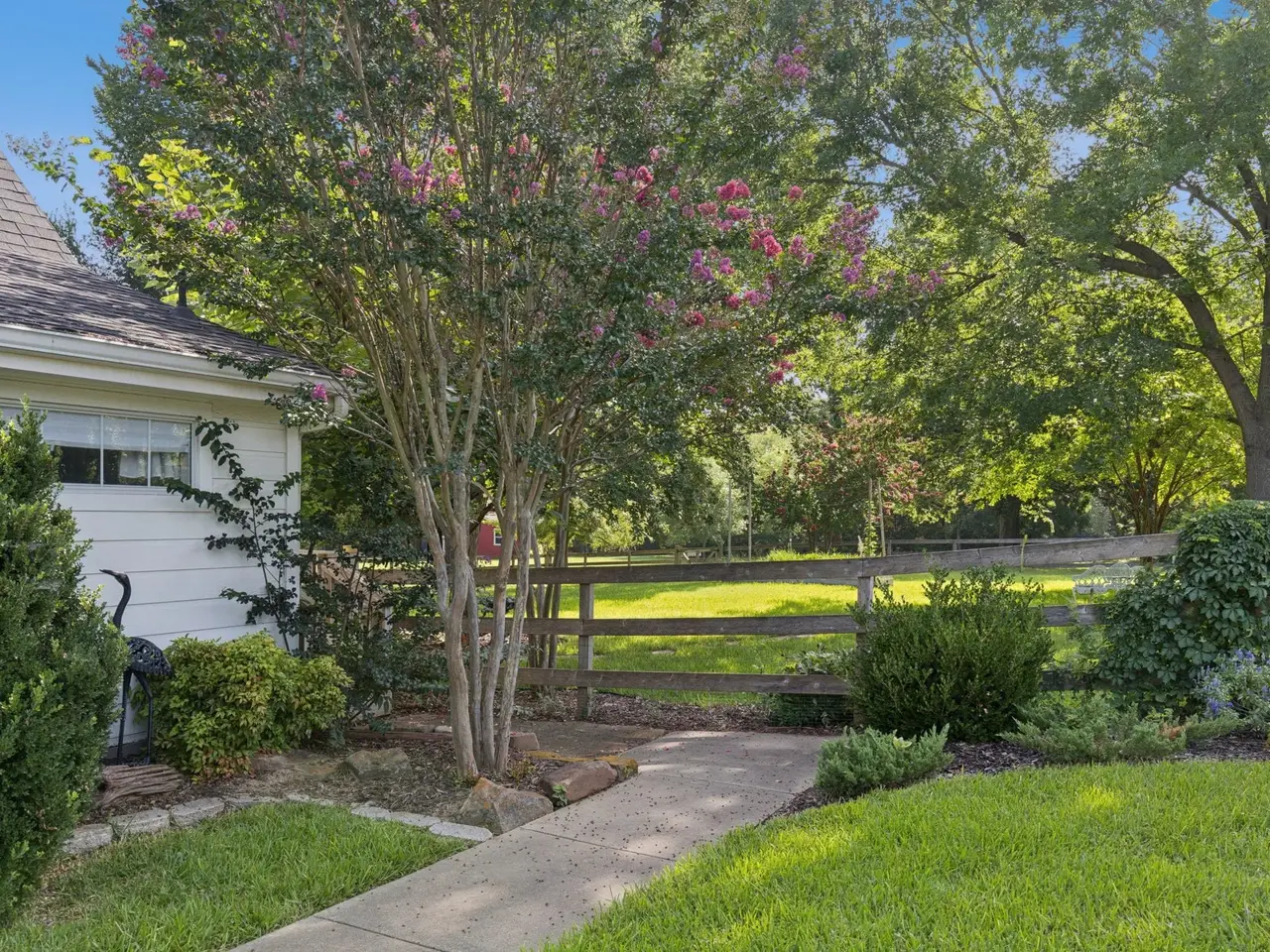 Welcome to Honey Creek Farm, a hidden gem with two homes nestled on 10+ unrestricted acres near historic downtown McKinney, the new HEB and Signature Kroger. This ag exempt, immaculate estate is home to award-winning honeybees who won first place at the State Fair of TX in 22 and 24. (New owners will be provided options for keeping the exemption.) A magical retreat with towering pecan and oak trees, a year-round creek, wooden bridge, and stone seating area perfect for peaceful strolls and quiet reflection. Rich with history and truly unique in Collin County, it includes meandering trails that wind through the woods beside the creek, a perfect escape. The main house is meticulously maintained with two bedrooms, two living areas, a full bath, 2-car garage, RV hookup, quaint garden shed, large deck and patio, new roof, plus brand new flooring and fresh paint throughout, filled with natural light and charming character. The new red barn with AC has tons of storage, covered RV space, and a carefully curated English cottage above-a storybook retreat perfect as guest quarters, mother-in-law suite, or short-term rental. Its beautifully landscaped with a fire pit creating a cozy spot for family and friends. The scenic build site is ready for your dream home or boutique venue, with a winding driveway, water, electric, new septic and extra parking for guests already in place. The property is partially fenced and suited for horses or other farm friends. A rare opportunity to own this pristine countryside in desirable McKinney-the possibilities are endless!